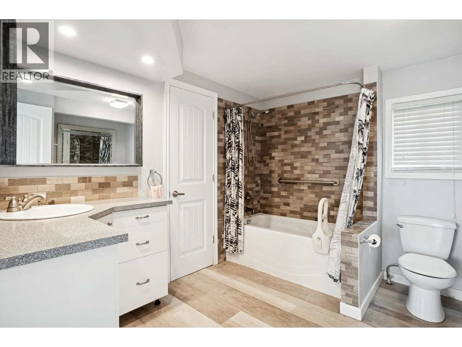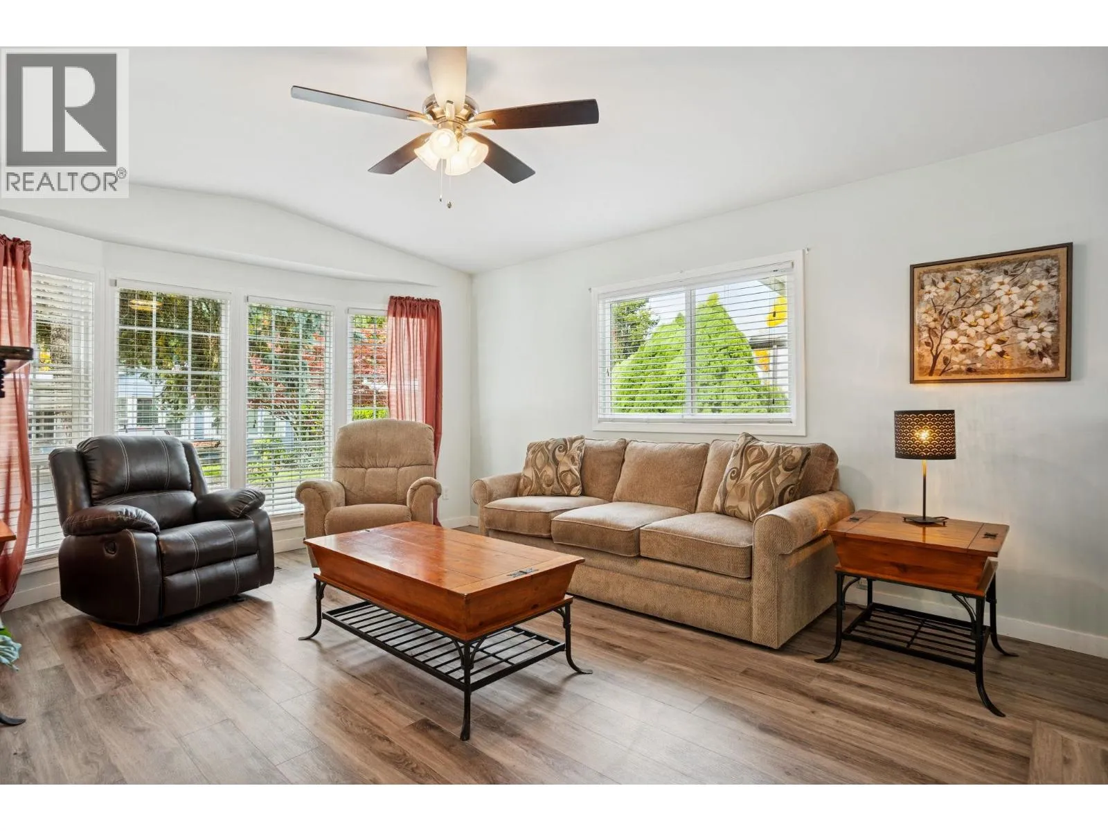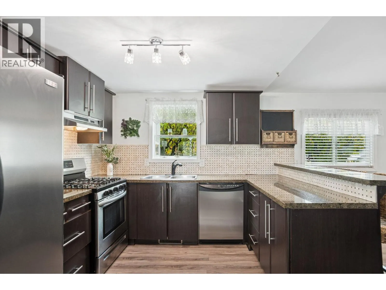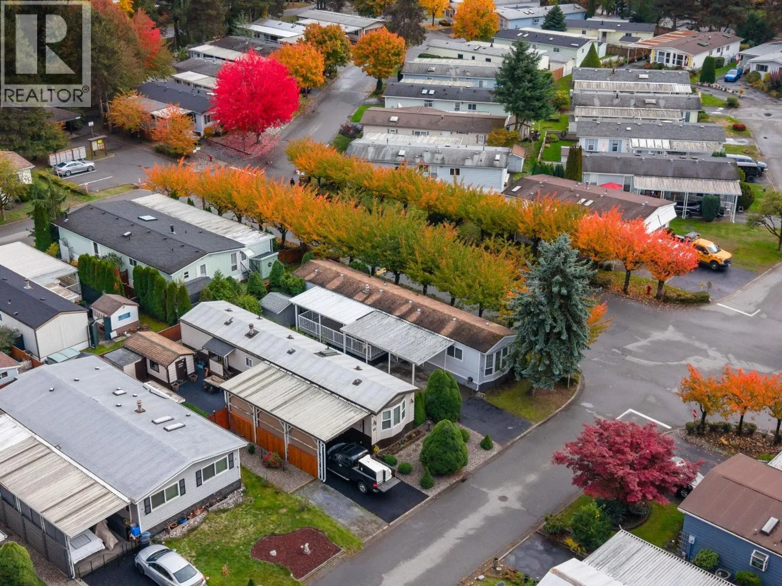 Welcome home to Mill Creek Village! This updated 2 bedroom, 1 bathroom manufactured home is perfectly situated on a desirable corner lot in one of the area´s most sought-after communities. Inside, you´ll find an inviting open layout featuring a bright living room with large windows, a cozy fireplace, and stylish updated flooring throughout. The modern kitchen offers stainless steel appliances, ample counter space, and a breakfast bar for casual dining. Enjoy the convenience of a cheater ensuite, covered parking, and a private outdoor area surrounded by mature trees. A great opportunity to own a move-in-ready home in a well-kept park close to shopping, transit, and all amenities. (id:27476)