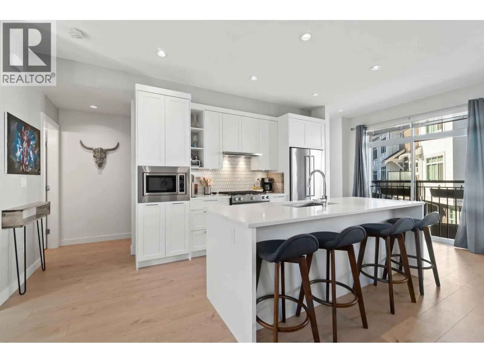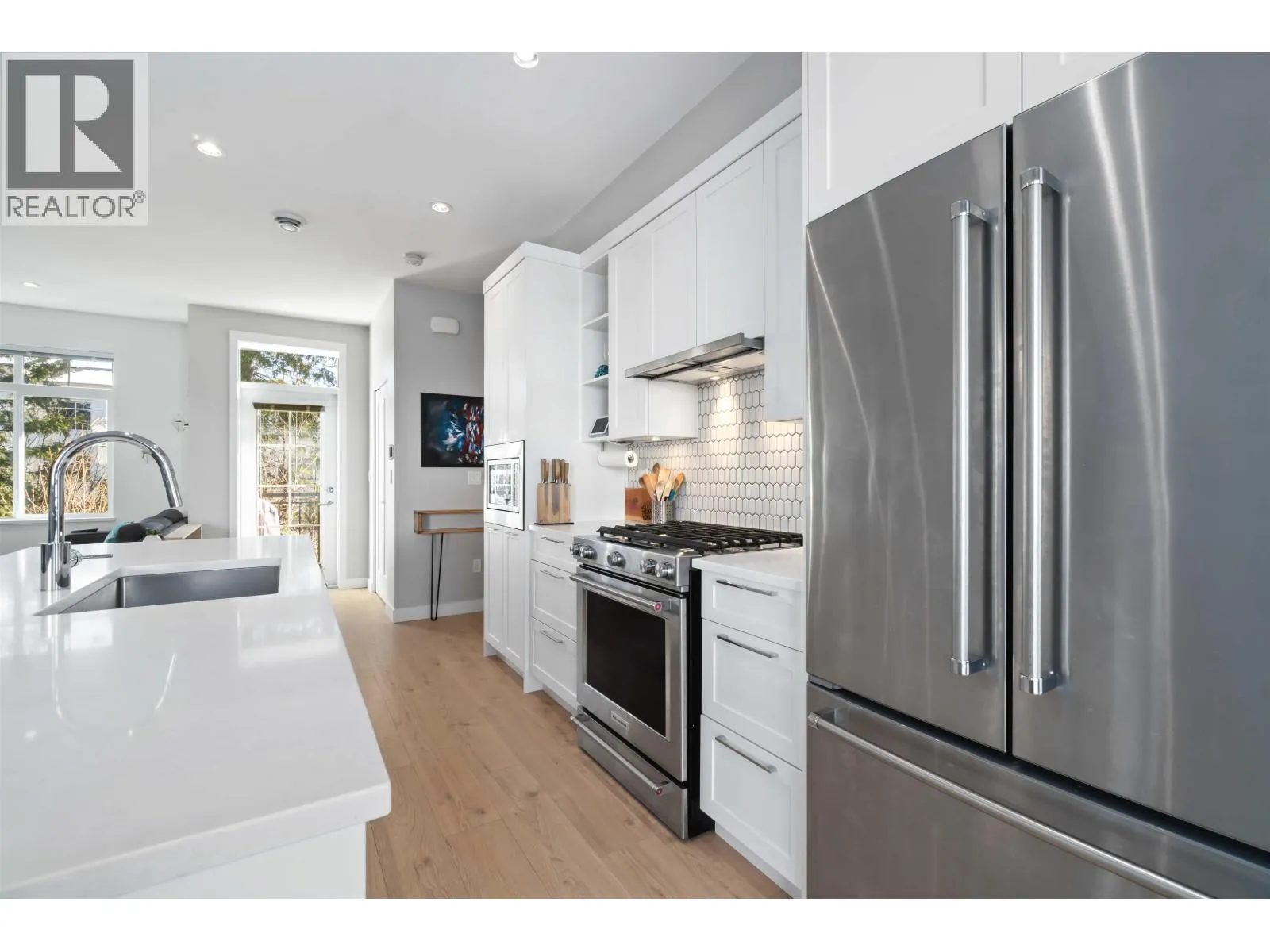 Stylish 4-year-old home with 1,415 sq. ft. open-concept living, 9-ft ceilings, and large windows for natural light. The chef´s kitchen boasts quartz counters, a gas range, and custom storage. Enjoy a sunny, fenced backyard backing onto a greenbelt; perfect for peaceful mornings or BBQs. Upstairs are 3 bedrooms, including a vaulted primary suite with walk-in closet and spa-like ensuite. The two other bedrooms are versatile for guests, kids, or a home office. The 530 sq. ft. double garage features Polyaspartic floors, Husky slat organization, EV charging readiness, gas BBQ hookup, and smart upgrades. Set in a quiet, family-friendly community near parks, trails, top schools, and shopping - and still under new home warranty. This home blends modern elegance with everyday convenience. (id:27476)