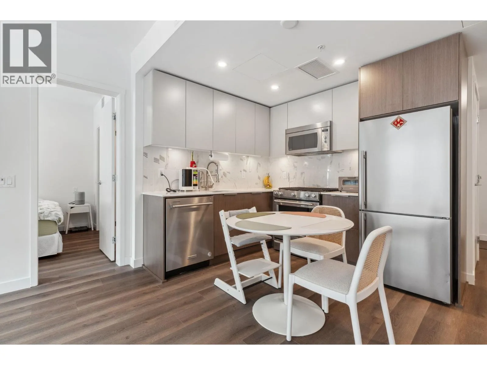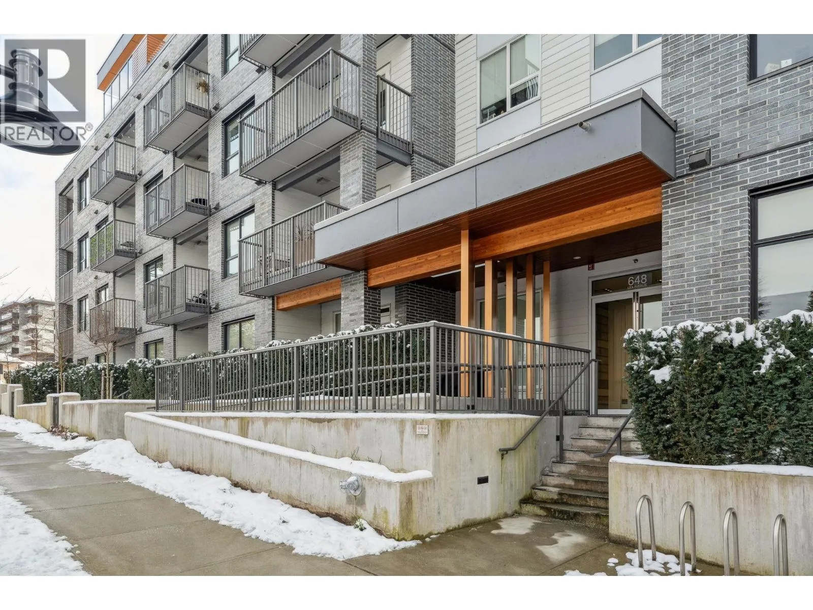 Welcome to Port & Mill, a premier residence nestled in the heart of Burquitlam. This meticulously designed 2-bed plus den offers 781 SF of elegant space. Step inside to 9-ft ceilings and expansive windows that flood your home with natural light. The open-concept layout features a contemporary kitchen with SS appliances. Enjoy the spacious covered deck, perfect for relaxing year-round. Amenities iclude a fitness room, a fully-equipped kitchen and lounge that opens to a courtyard with gardens, BBQ, and a children's play area. Additional conveniences include a bike room and a carwash. 1 Parking and 1 storage locker. Perfectly located steps from SkyTrain, Safeway, a new YMCA, and a plethora of restaurants and cafes. OPEN HOUSE Saturday November 15 2:00-4:00pm! (id:27476)