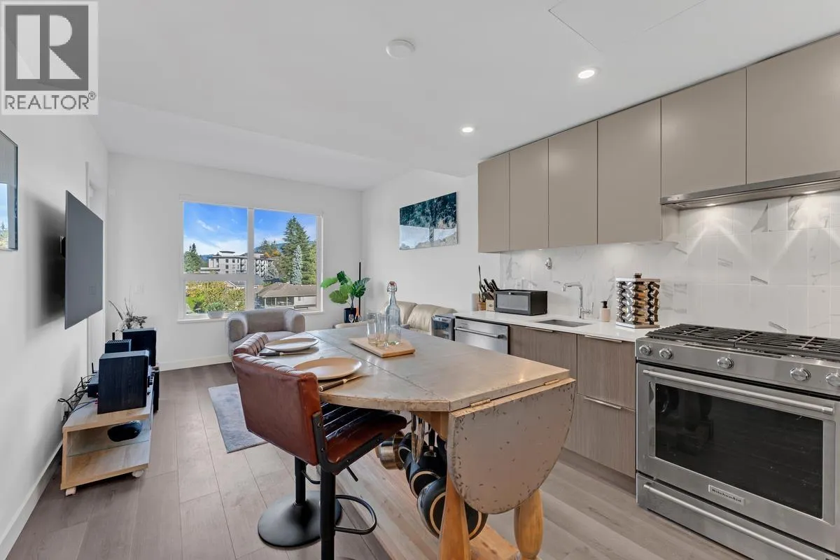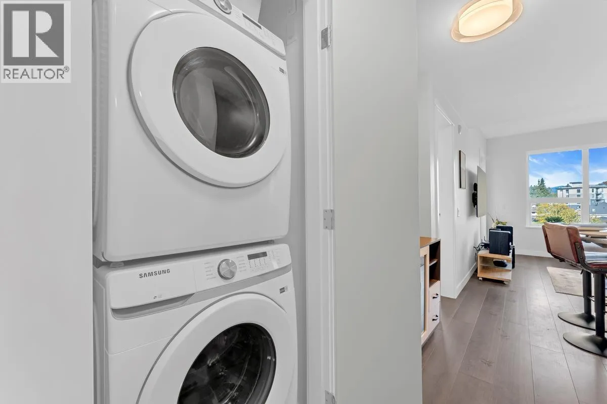 Welcome to Port & Mill by Streetside. This one bedroom + den offers north facing mountain views with plenty of room in den for office, second bed or storage. The large kitchen is completed with quartz counters, gas range and modern cabinets. Primary bedroom connects to the bathroom for convenience and ease. It is situated in the perfect location for all amenities including skytrain and groceries. This suite provides in suite laundry, one parking and one storage unit. The strata is complete with a gym, playground, outdoor BBQ and amenity room with full kitchen. Unit 409 is waiting for you to call it home - explore the possibilities with this wonderfully bright space! (id:27476)