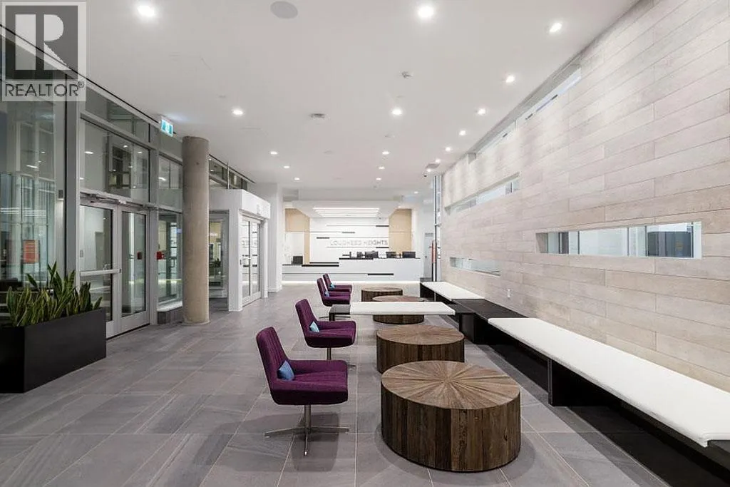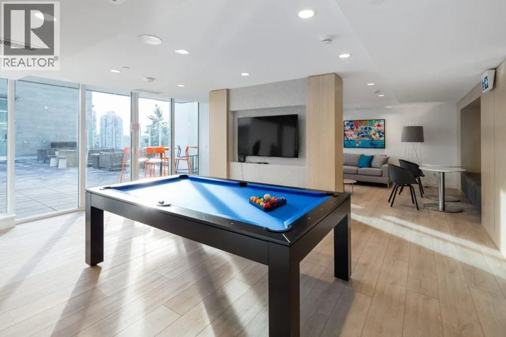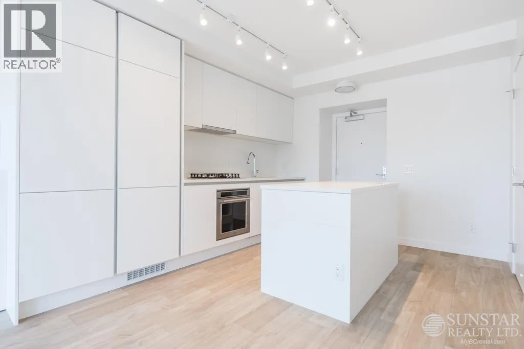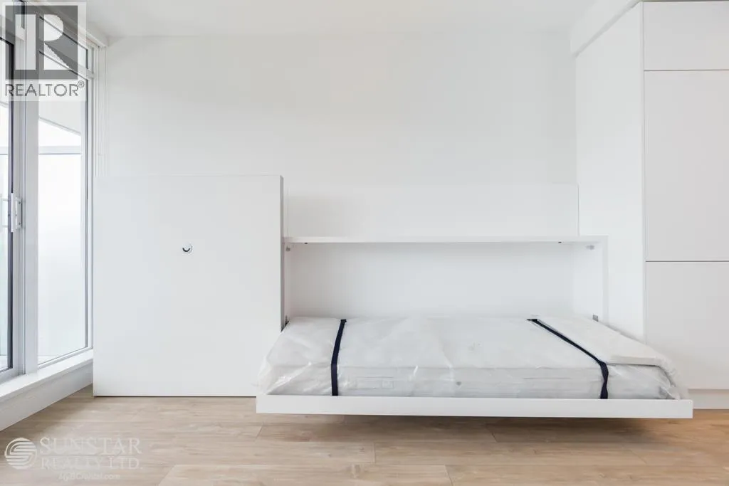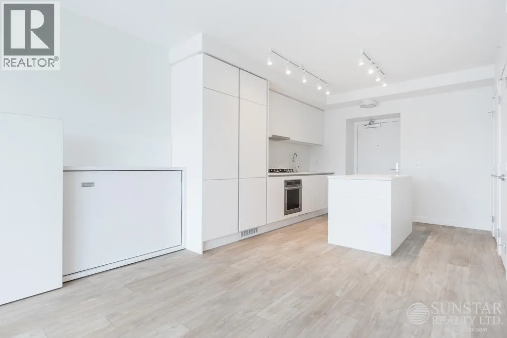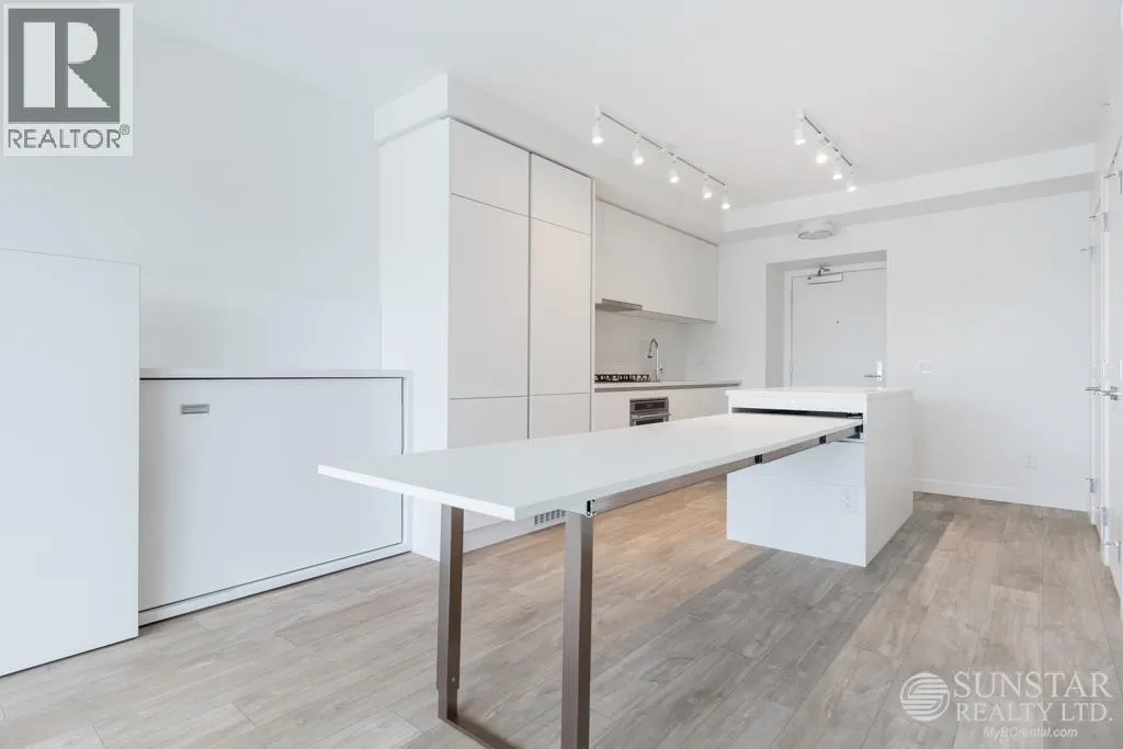 This is a 525sf north-facing luxurious one-bedroom unit with a huge 142sf balcony which spans the width of the condo. The foyer opens up directly into the kitchen and dining area. Gallery kitchen comes with stainless steel appliances including a gas cooktop, integrated fridge, track lights and under-cabinet lights. The innovative kitchen island features an extendable tabletop to become your dining room table. The living room features a TV panel wall that slides out to reveal a built-in murphy bed. The bedroom has two built-in bedside floor-to-ceiling closets. The bathroom has stone countertop, undermount sink, tiled walls, soaker tub with shower and built-in mirrored cabinet. Rent includes 1 parking stall and 1 storage locker. (id:27476)