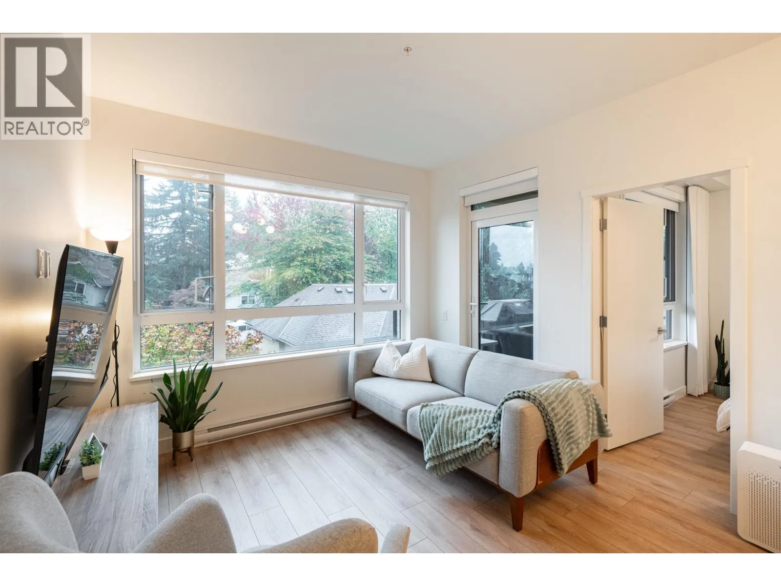 RARELY AVAILABLE! This QUIET 2 Bed + Flex at the highly coveted Willow Phase 3 @ The Oaks could be yours! Quality built by Strand + Ste Marie designed Interiors, 310 features a perfect layout + a sun drenched balcony where you can enjoy sunrise views of Seymour & Burke Mountain! Upgraded features include: laminate floors, primary bedroom closet organizers, flush mount dining light, blackout blinds in the primary, bug screens, & AC with custom fitted plexiglass. Amazing amenities you will use including: fitness centre, games room, co-working space, party room, movie theatre, & courtyard! Located a short 10 min walk to Burquitlam SkyTrain station, Safeway, YMCA & plethora of restaurants. Within a quick bus ride from SFU, hiking trails, & the Port Moody breweries! OH: Sun Oct 16 @ 2:30-4pm (id:27476)