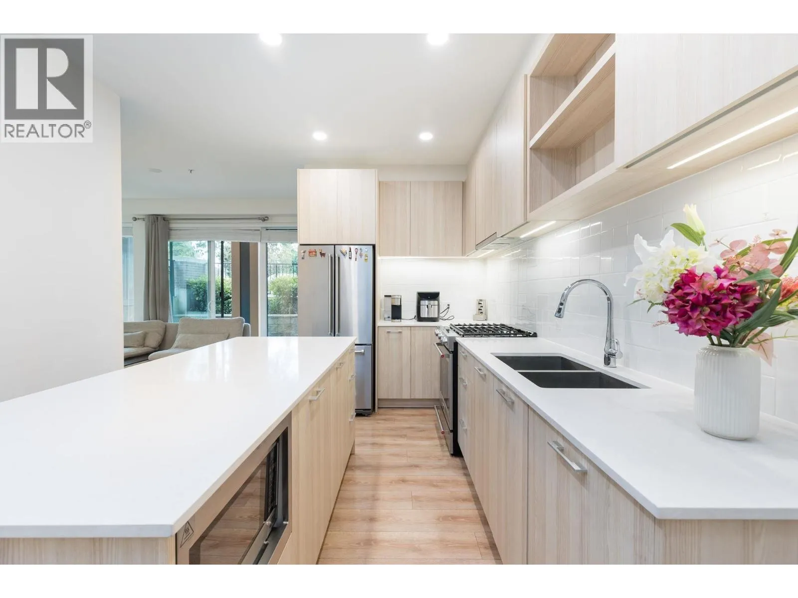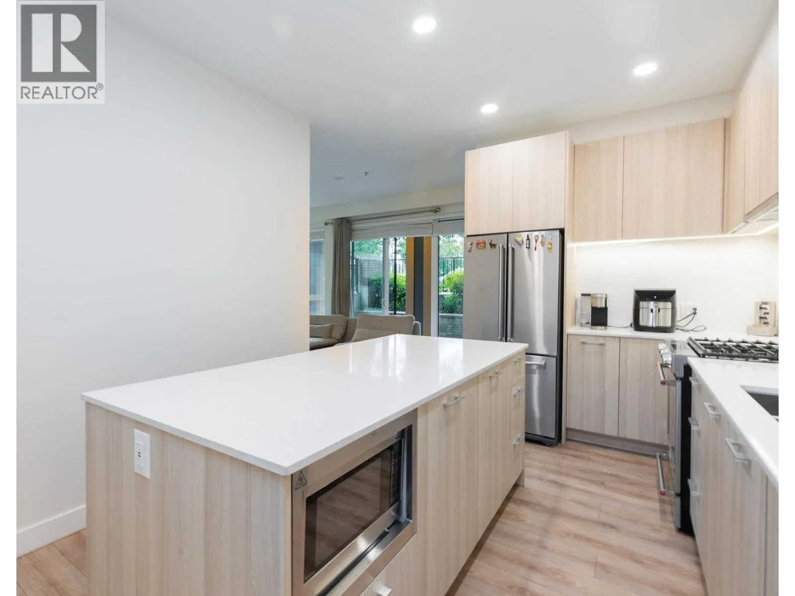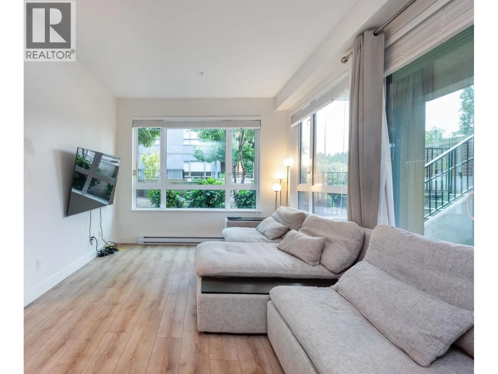 Coveted CORNER ground floor 3 BED, 2 BATH + DEN at The Oaks. Enjoy over 1,037 square ft of airy, open-concept living & a 230 square ft COVERED patio-perfect for morning coffee, summer dinners or kids/pets at play. Soaring 9´ ceilings, wide-plank laminate floors & oversized windows fill the space with natural light. Cook & chat with family in a stunning CHEF'S kitchen with sleek Euro cabinetry, quartz counters, 5-burner gas range, French door fridge & centre island for casual meals or entertaining. Spa-inspired baths offer true relaxation & oversized DEN is perfect for work at home. Nestled in 1/2 acre of parklike courtyards & amenities including gym, theatre, social lounge, BBQ area & more. 2 parking + 1 storage. Excellent Burquitlam location, walk to SkyTrain & close to Lougheed Town Centre, SFU & recreation. (id:27476)