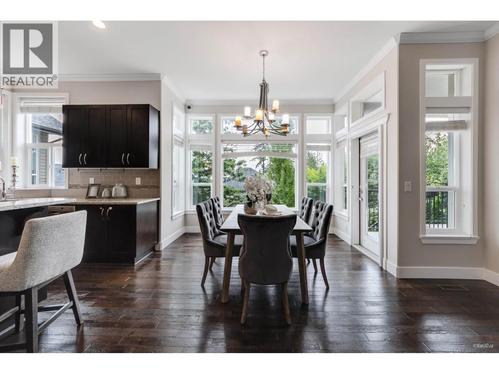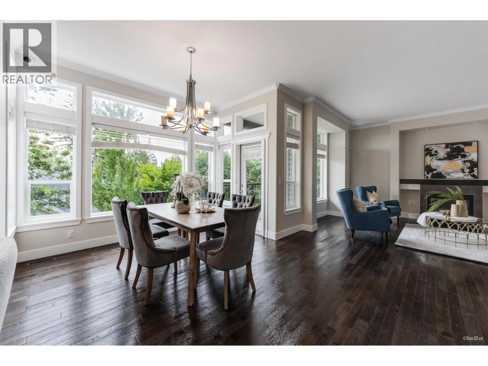 Nestled in Burke Mountain's serene landscape, this exquisite three-level Foxridge home combines luxury with functionality. Situated on a spacious corner lot adjacent to hiking trails, it boasts a thoughtful layout with upgraded hardwood floors, a gourmet kitchen featuring premium stainless steel appliances, and a cozy gas fireplace in the living area. South-facing terraces on multiple levels offer stunning views of Mount Baker and Fraser Valley. The upper level includes a master bedroom with an ensuite bathroom and three additional bedrooms. The walkout basement features a versatile space with a bedroom, full bath, and a home gym. Ideal for families, it is within walking distance to schools, daycare, and just minutes drive from Coquitlam Centre, T&T, Douglas College, and SkyTrain. (id:27476)