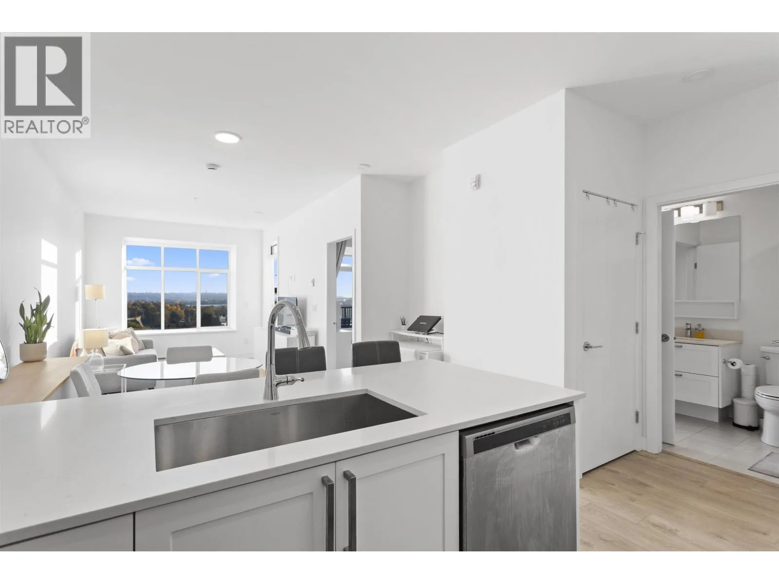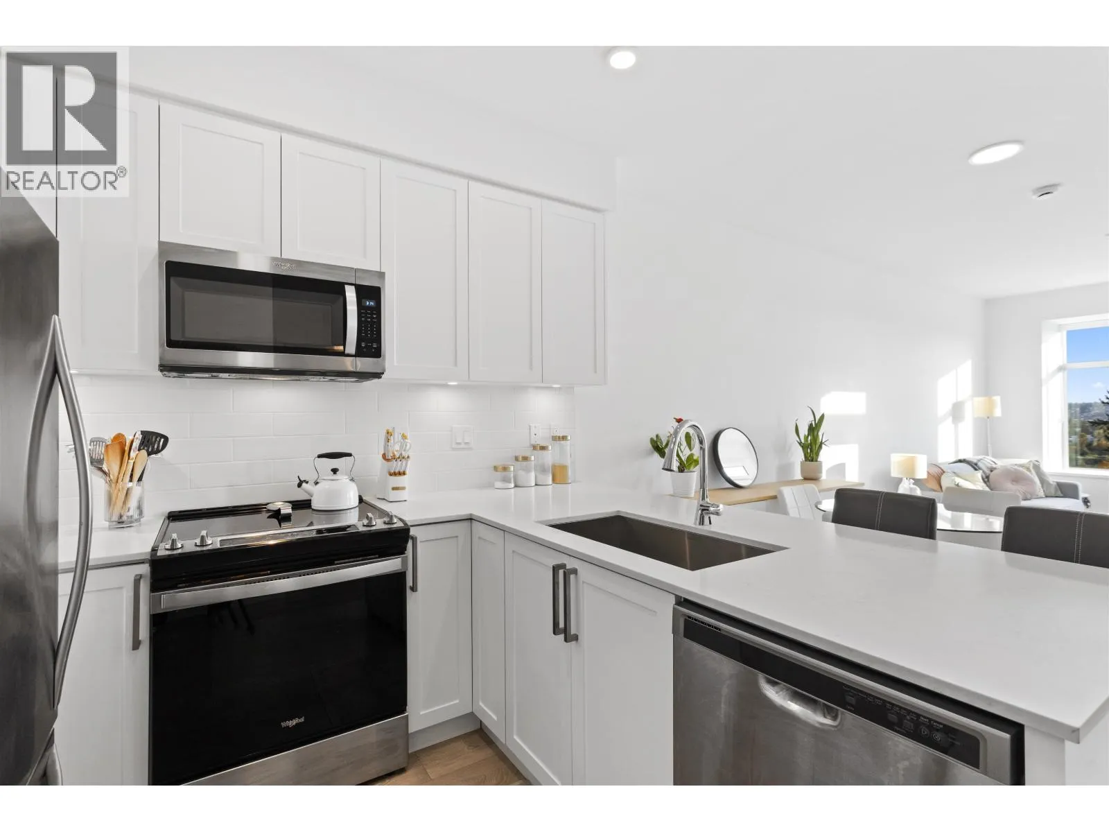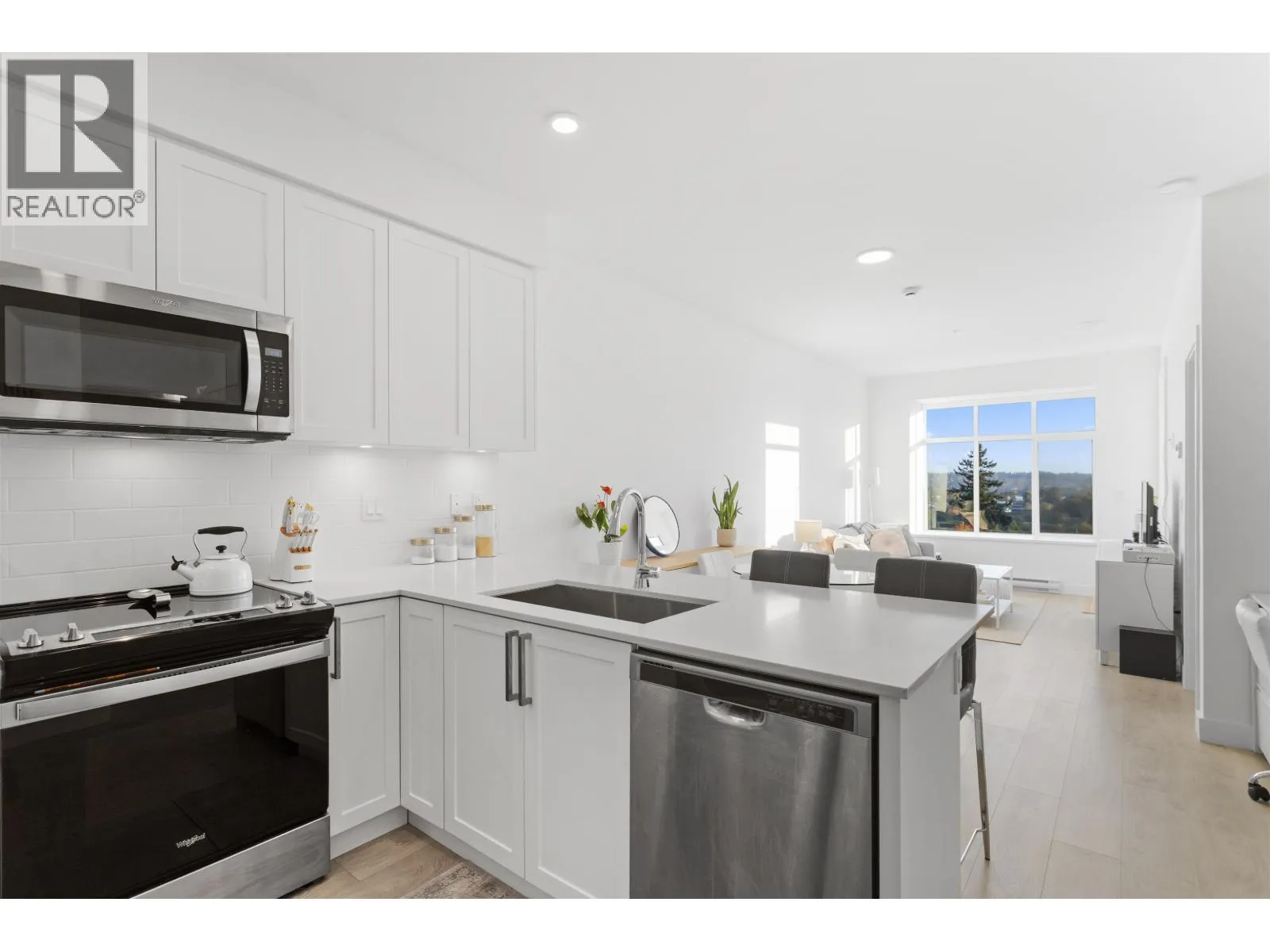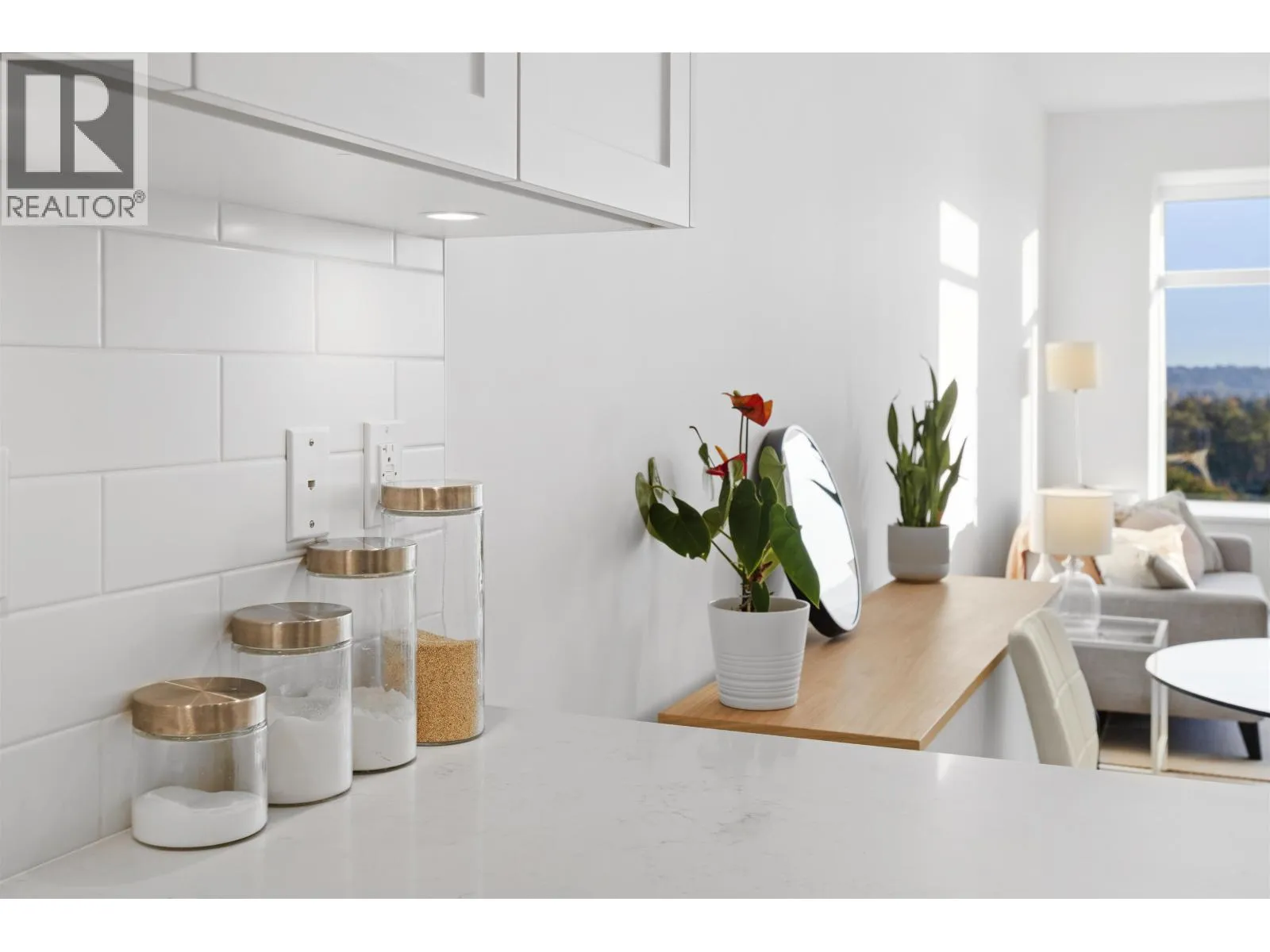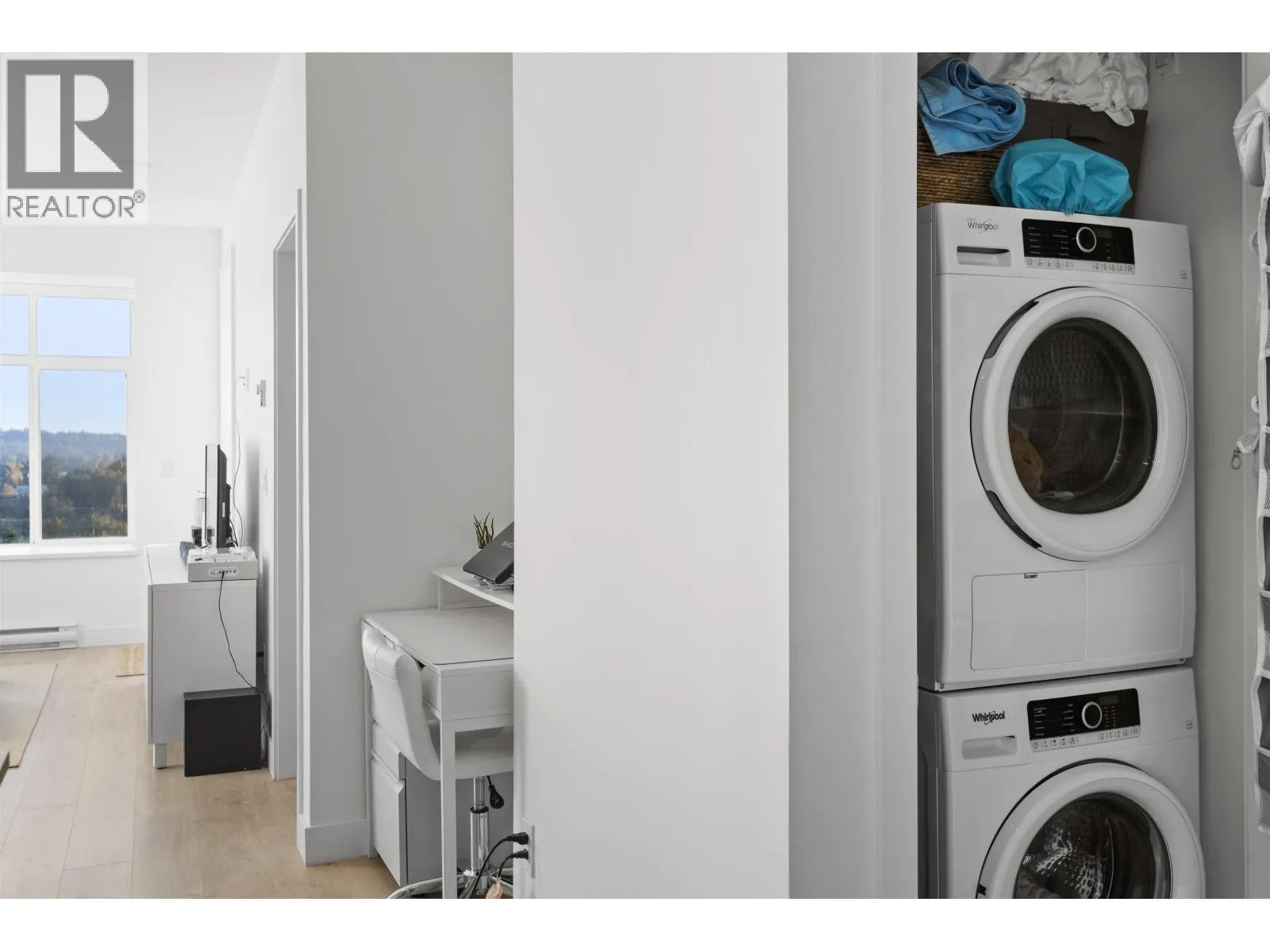 This beautiful 1 bedroom home with city + water views at the Otto could be yours! Developed by Dolomiti Homes & designed by Ciccozzi Architecture, Otto is located in central Coquitlam West. This home features laminate flooring throughout, high ceilings, an efficient layout & with south facing views, you'll have natural sunlight throughout the year. The kitchen is a modern U-shaped gourmet kitchen with Kitchen Aid stainless steel appliances, quartz countertop, timeless white backsplash and shaker style kitchen cabinets with amble pot lighting. Access your bathroom from both bedroom or living room. In-suite laundry with his / her closets. Location allows easy access to Highway 1, Braid Station, SFU, Lougheed Town Centre, and restaurants! (id:27476)