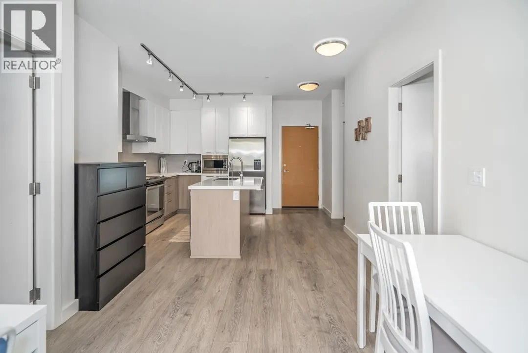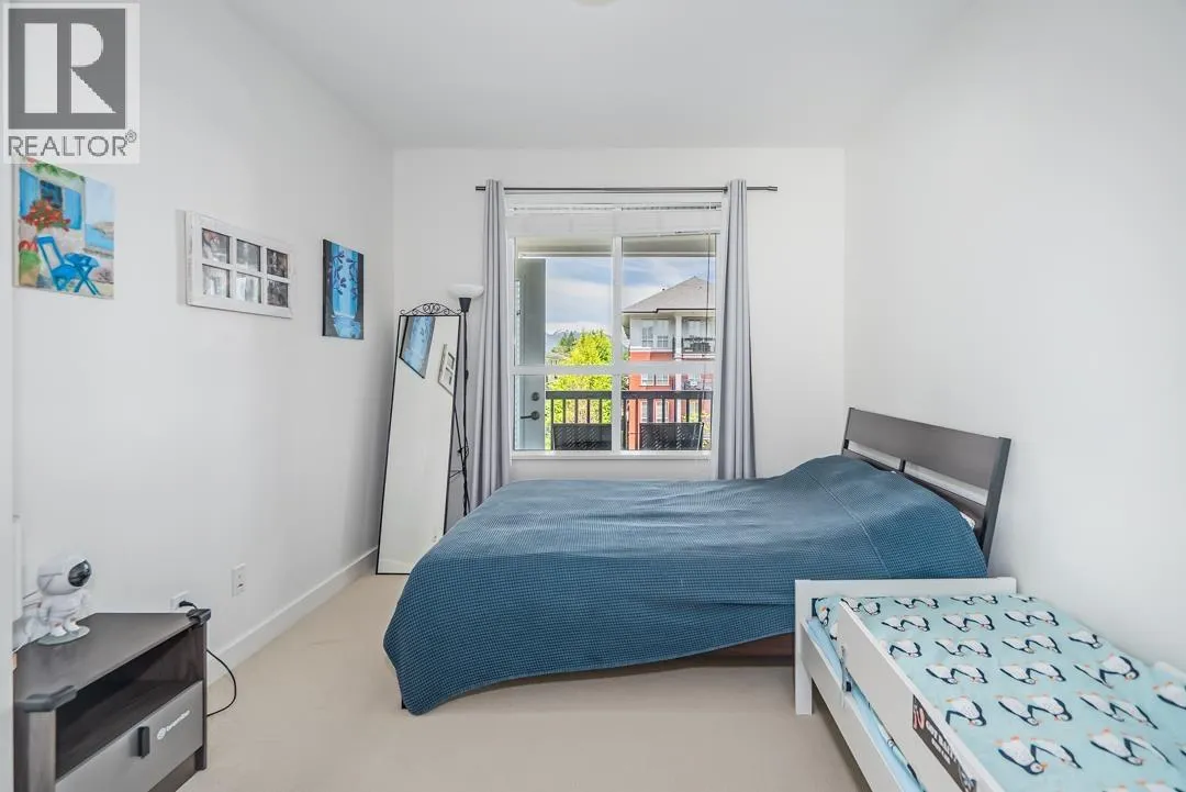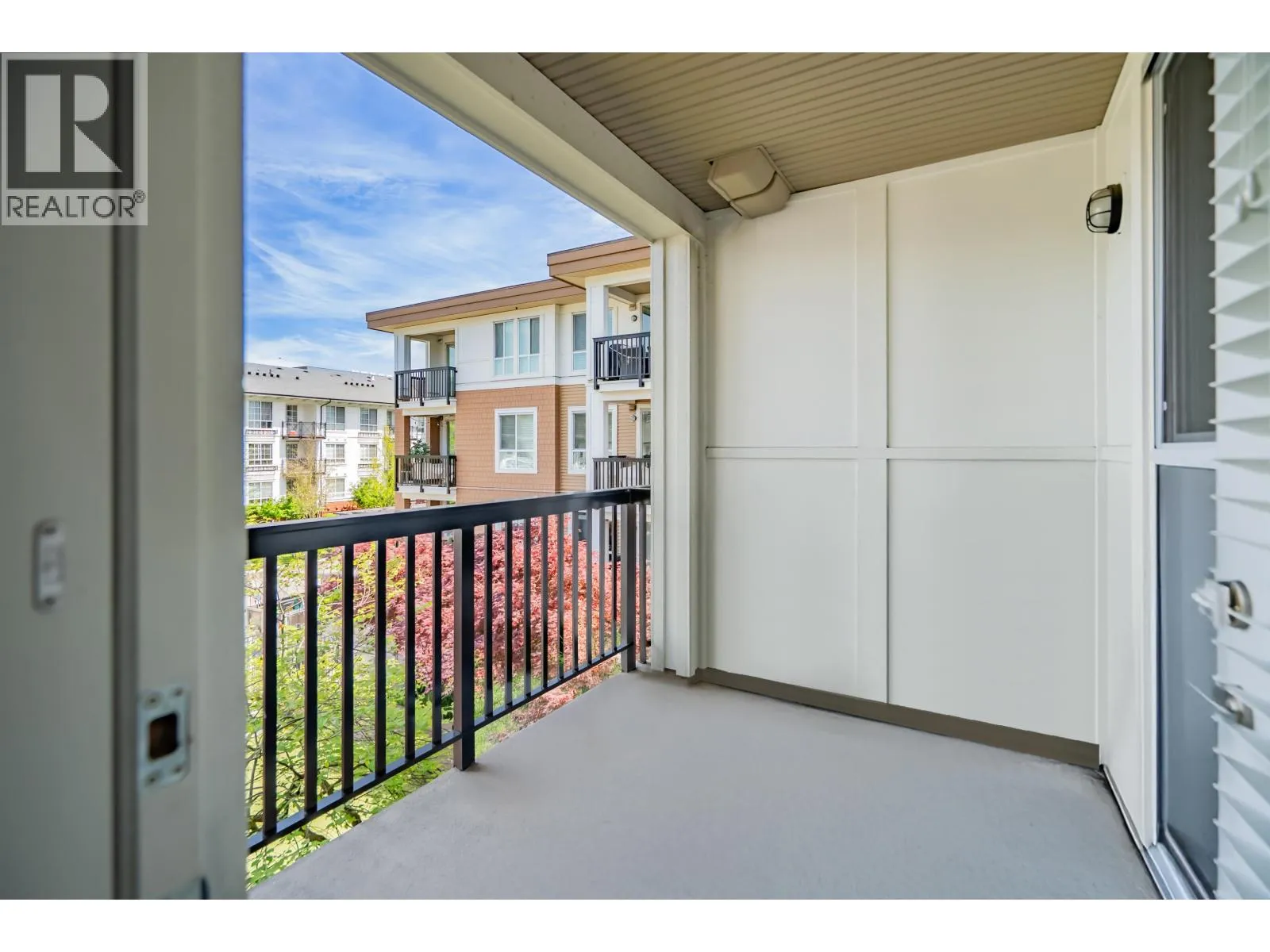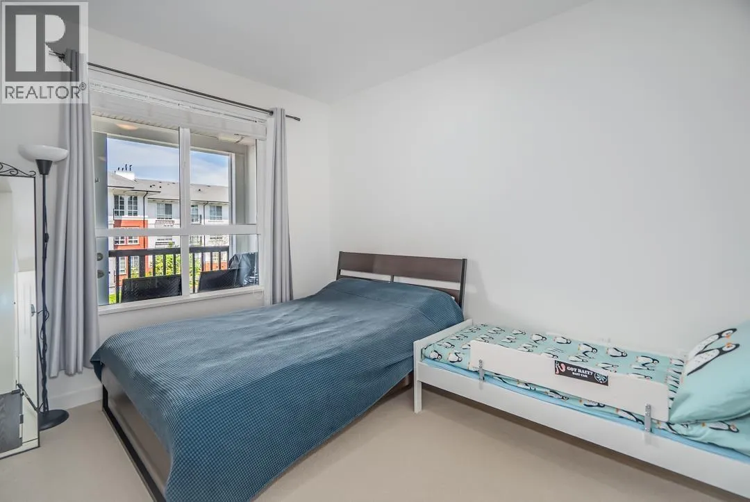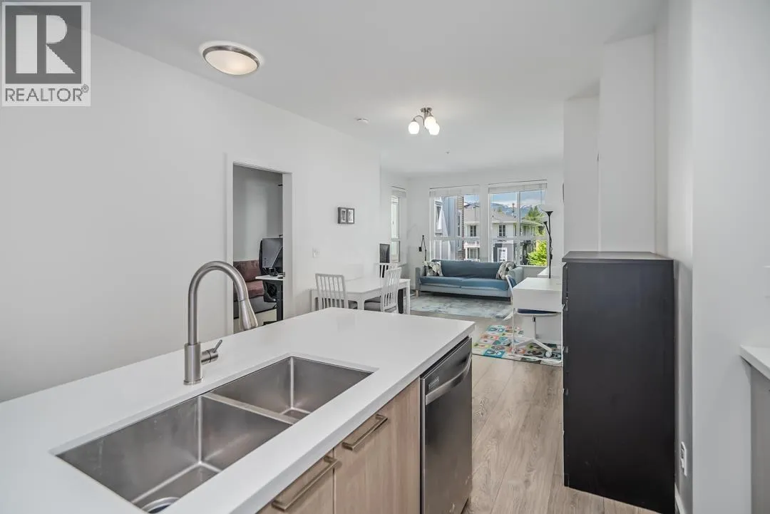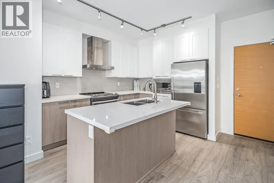 Welcome to Regan's Walk by Marcon. This spacious 875 sqft 2 bed, 2 bath home features an open-concept layout with split bedrooms and a cheater ensuite for the 2nd room, ideal for guests or roommates. With only 1 shared wall and a hallway on the other side, it offers extra privacy and quiet. Enjoy peaceful courtyard views from your balcony. The modern kitchen includes stainless steel appliances, a Fisher & Paykel fridge, and sleek finishes with plenty of storage. Only a 7-min walk (500m) to Burquitiam Plaza and SkyTrain. 6 min drive to SFU. Steps from the Bettie Allard YMCA, Safeway, cafes, and local shops. Perfect for buyers seeking smart design and strong value in a growing community. Incl: 1 parking + 1 locker. Some images virtually staged or edited. (id:27476)
