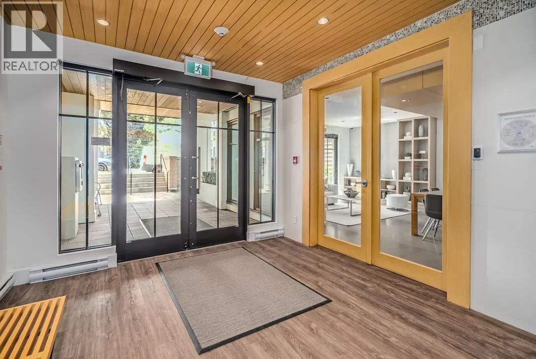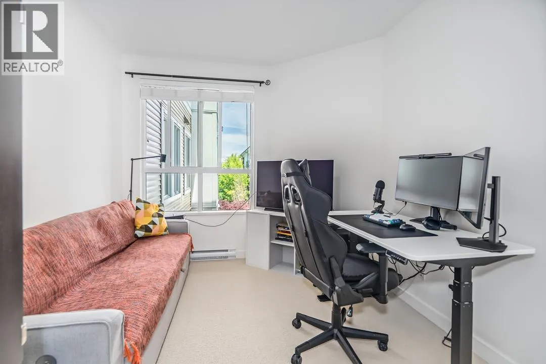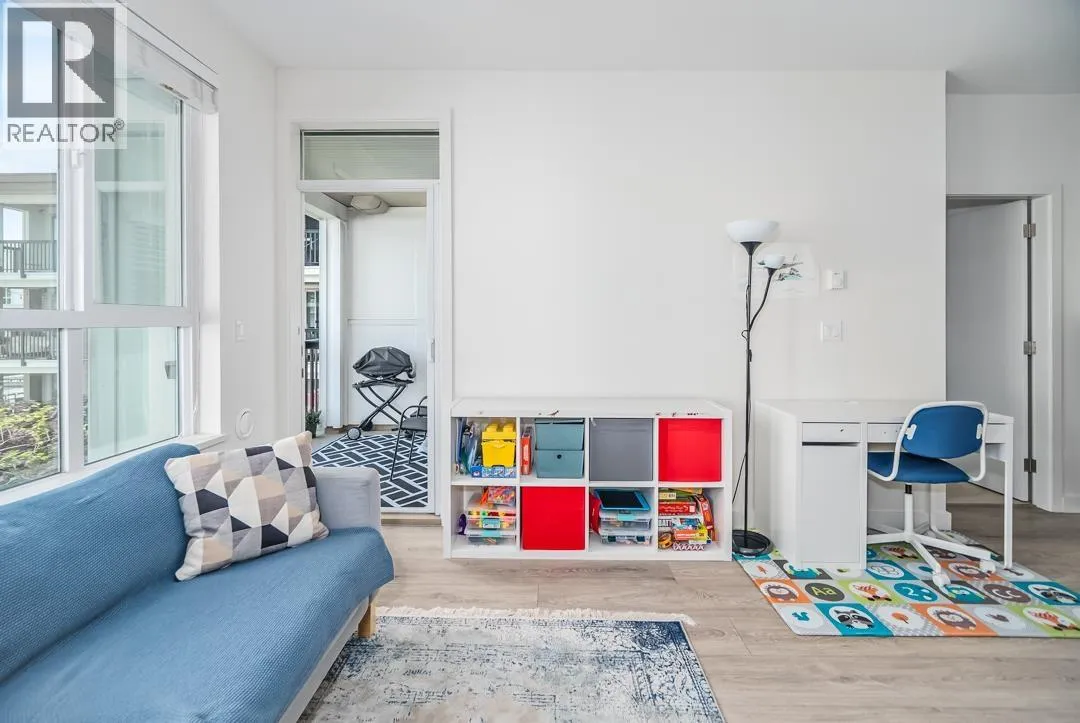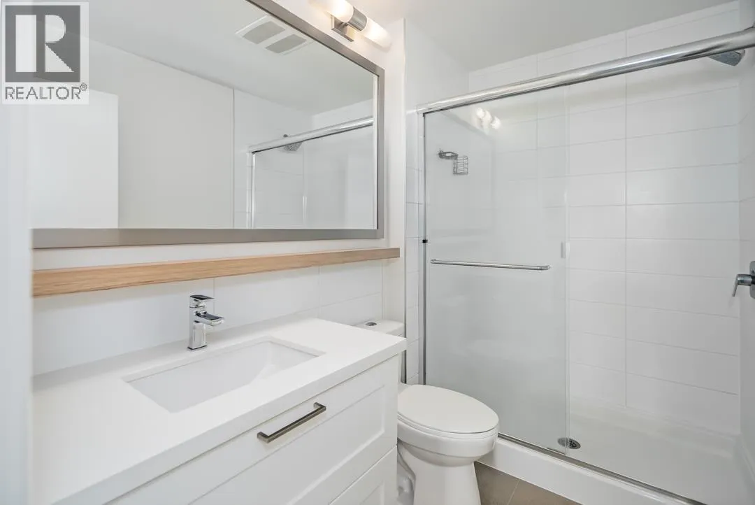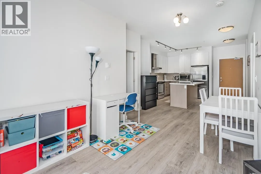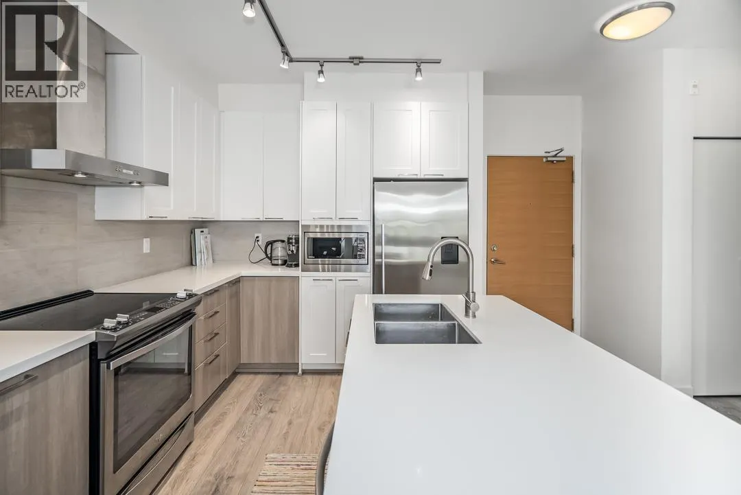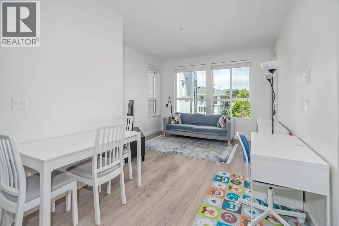 Welcome to Regan's Walk by Marcon. This spacious 875 sqft 2 bed, 2 bath home features an open-concept layout with split bedrooms and a cheater ensuite for the 2nd room, ideal for guests or roommates. With only 1 shared wall and a hallway on the other side, it offers extra privacy and quiet. Enjoy peaceful courtyard views from your balcony. The modern kitchen includes stainless steel appliances, a Fisher & Paykel fridge, and sleek finishes with plenty of storage. Only a 7-min walk (500m) to Burquitiam Plaza and SkyTrain. 6 min drive to SFU. Steps from the Bettie Allard YMCA, Safeway, cafes, and local shops. Perfect for buyers seeking smart design and strong value in a growing community. Incl: 1 parking + 1 locker. Some images virtually staged or edited. (id:27476)