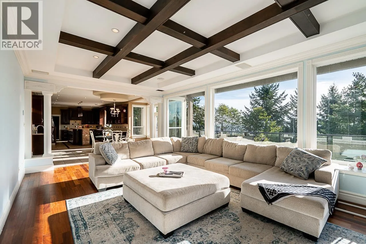 VIEWS, VIEWS, VIEWS! This stunning 9-bedroom, 7-bathroom, 8085sf sqft home in Westwood Plateau offers breathtaking city and mountain views. The main floor features soaring ceilings, an open kitchen with granite countertops, a spice kitchen, elegant finishes, a grand living and dining area, an office, and a bedroom with ensuite-perfect for guests or multigenerational living. Upstairs boasts 5 spacious bedrooms including an executive primary suite with a spa-inspired ensuite and private balcony. The basement includes a media room, wet bar, gym, recreation area, rough-in for a sauna, and a 2-bedroom + den legal suite for extra income or extended family. Enjoy the large back deck and panoramic views in one of Coquitlam´s most desirable neighbourhoods! OPEN HOUSE: NOV.15/16 ( 2-4PM ) (id:27476)