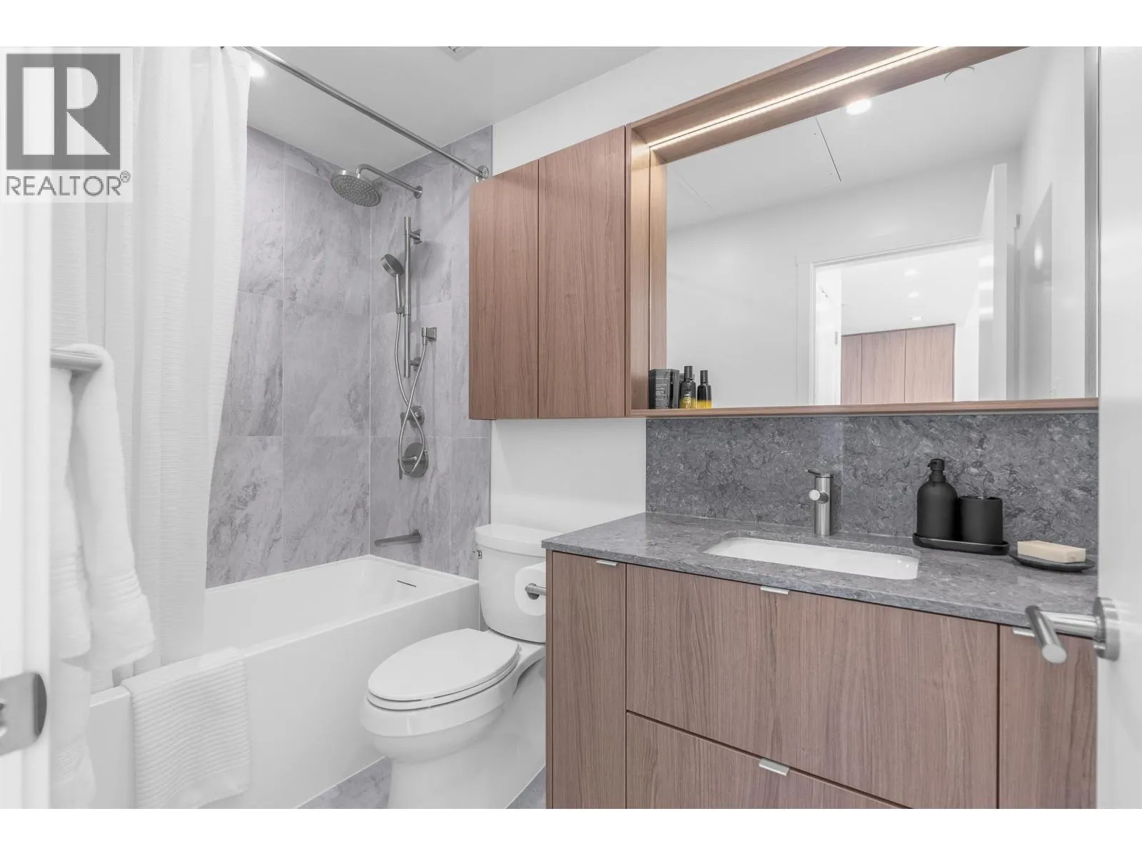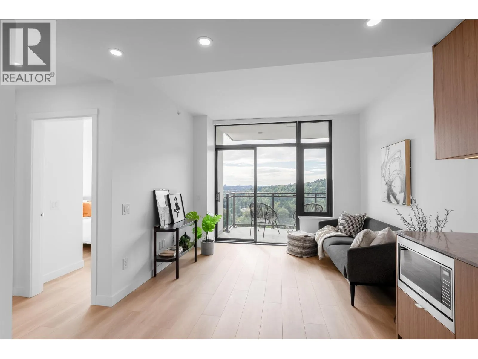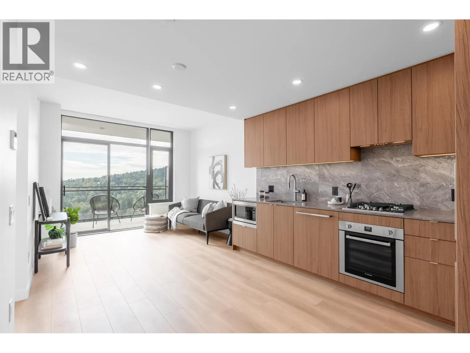 Soar above the city from the 22nd floor at Alina by Strand Developments! This brand new 1 bed + versatile den offers sweeping views, expansive windows, and an L-shaped chef´s kitchen with Bosch appliances, marble tile backsplash, and modern oak cabinetry. The open layout flows to a bright living area, perfect for relaxing or entertaining. Bedroom features a spacious closet and floor-to-ceiling windows, while the den is ideal as a home office or guest space. Enjoy exclusive access to the Penthouse Level 29 Rooftop Sky Spa with hot & cold plunge pools, outdoor lounge with firepit, yoga room, tea station, steam room, sauna & more. Prime Burquitlam location-steps to Burquitlam Station, Safeway & the YMCA. Includes 1 EV-ready parking stall & 1 bike locker. (id:27476)