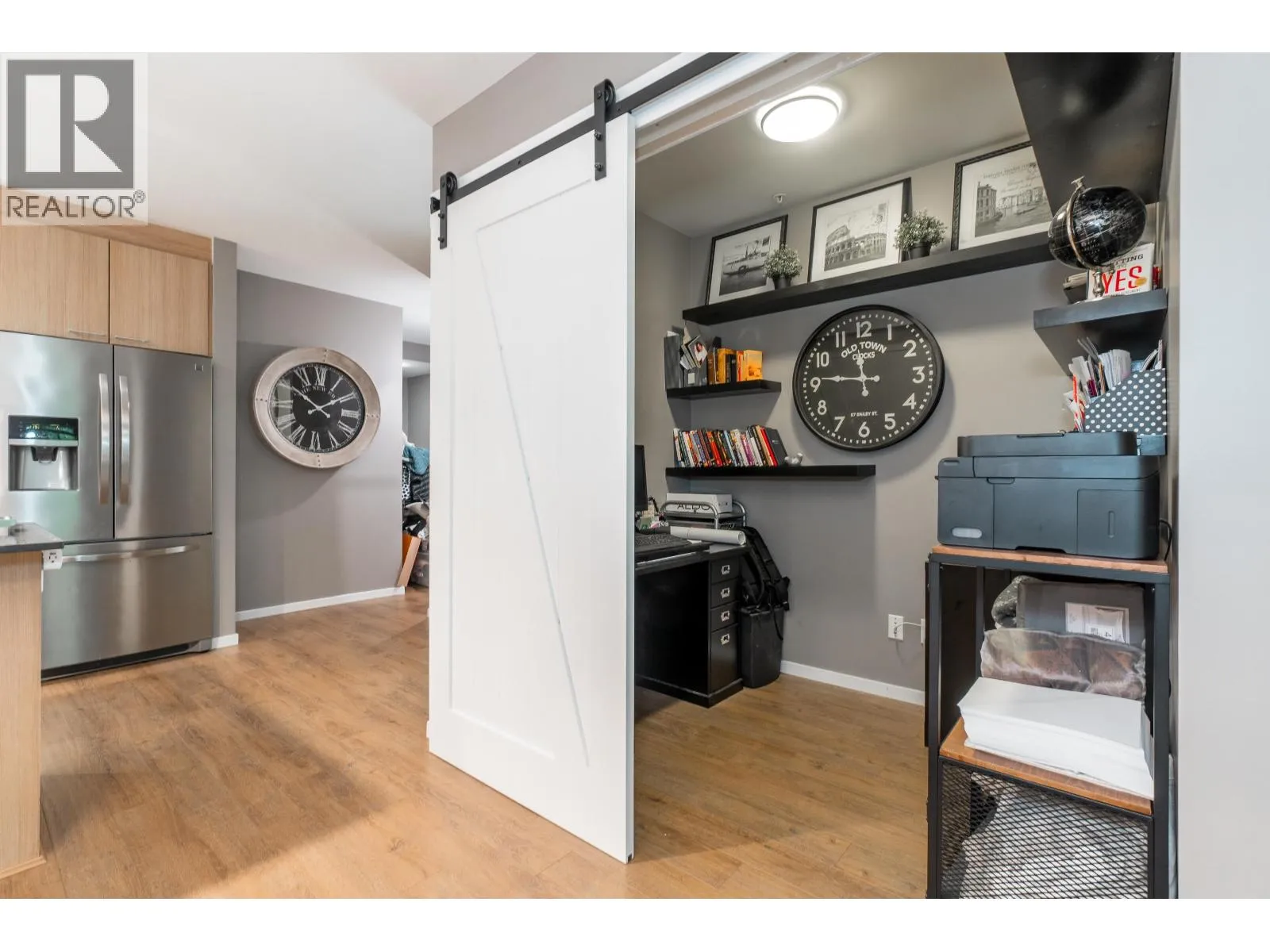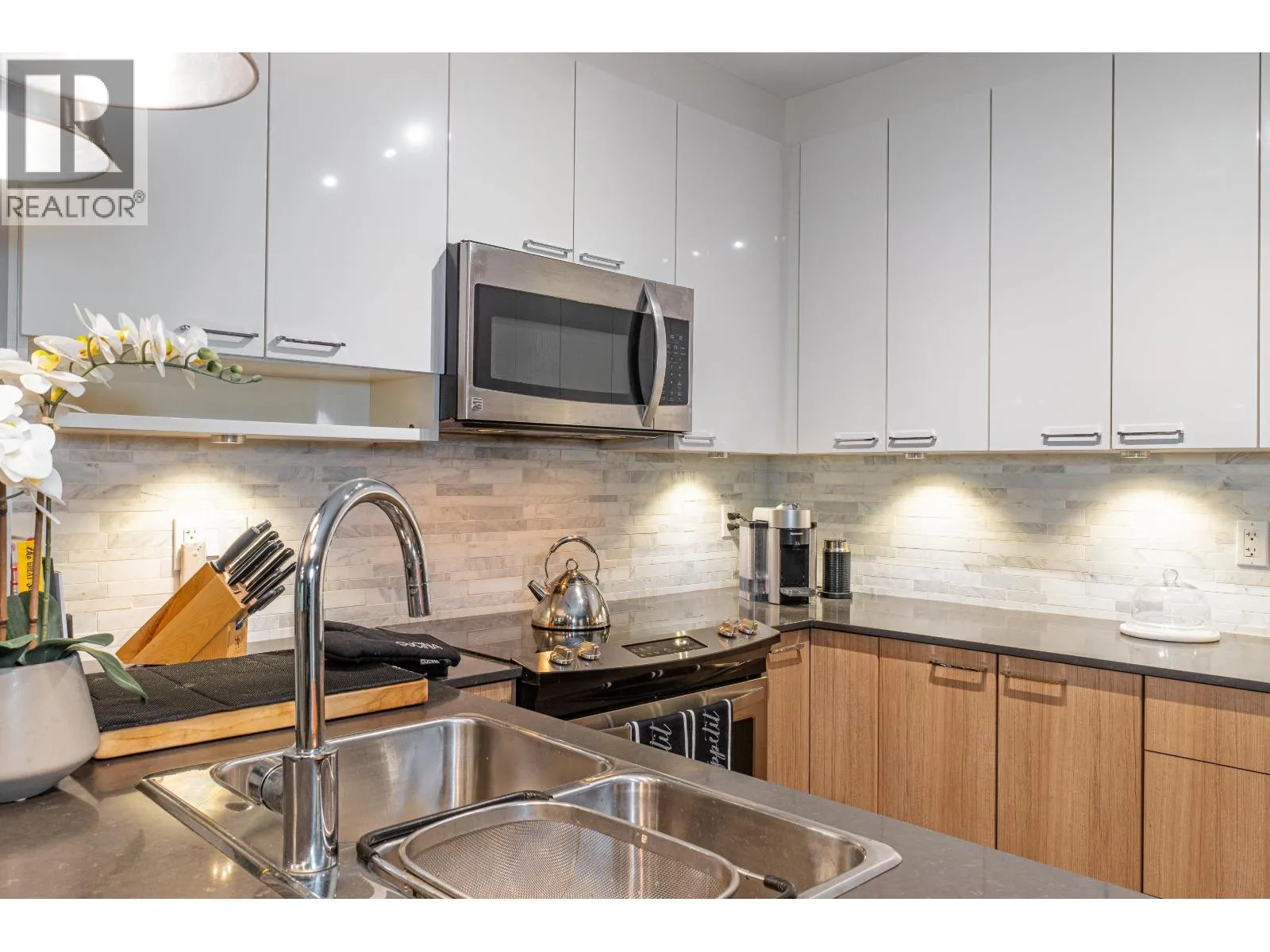 Over 800 Sqft spacious 1 bed + den sitting in a quiet side building facing the court yard with beautiful trees over outside windows. This open layout leads you to a bright kitchen, ss appliances, quartz counter, lots of cabinets space. The den can be used as office or open room, patio has privacy for looking over inside walkway. Close to T&T, IKEA, shops, schools and easy to have public transportation. Open House: Nov 22/23 Sat/Sun 2-4. (id:27476)