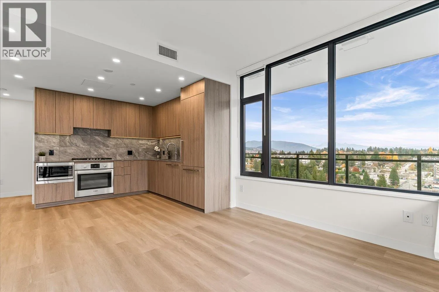 This 2-bedroom, 2-bathroom corner unit condo offers 734 sqft of bright, airy interior living space plus a 207 sqft wrap-around covered balcony-perfect for outdoor relaxation. The open-concept kitchen, living, and dining area features large windows and 9´ ceilings, filling the space with natural light. The primary bedroom includes a walk-in closet and ensuite, while the second bedroom is thoughtfully separated for added privacy. Additional features include a large front hall closet, stacked washer and dryer, storage locker, and an EV-ready parking stall. Ideally located just a 5-minute walk to shops, restaurants, the Burquitlam SkyTrain Station, trails, and more. Open House Sat, Nov 22nd 1-3pm. (id:27476)