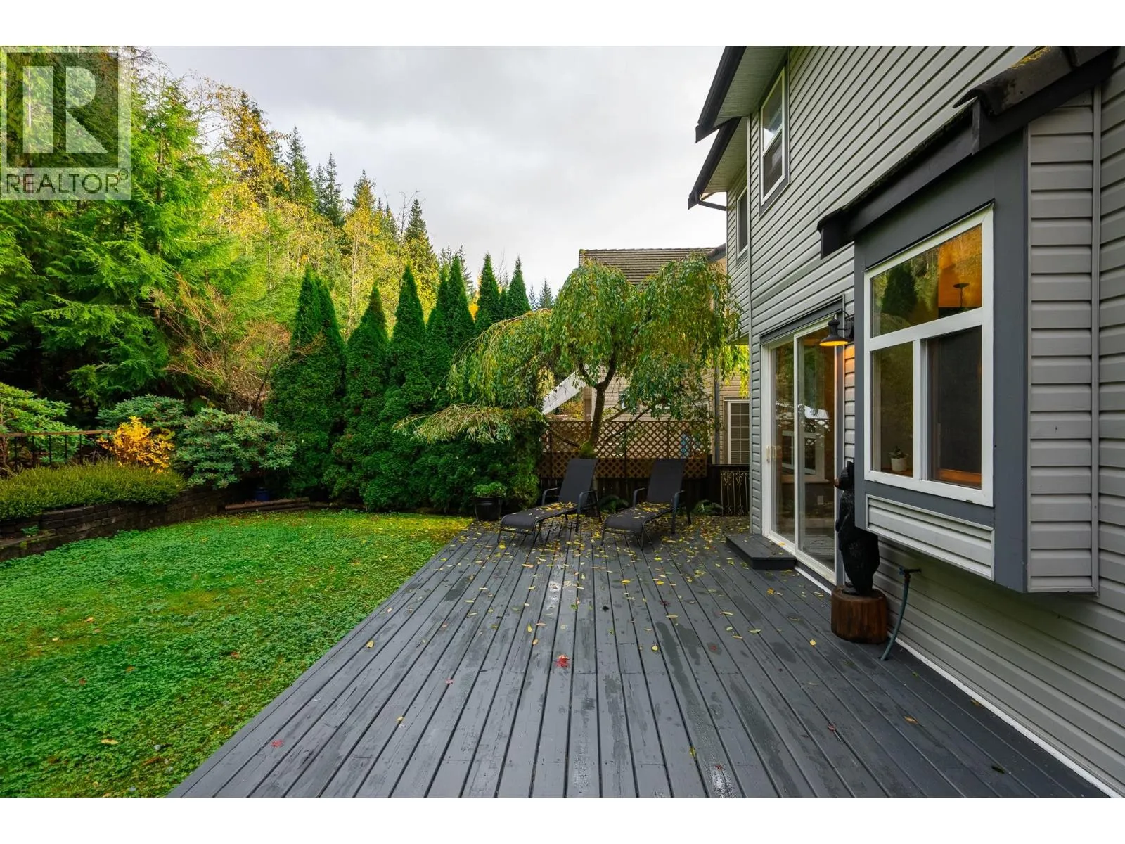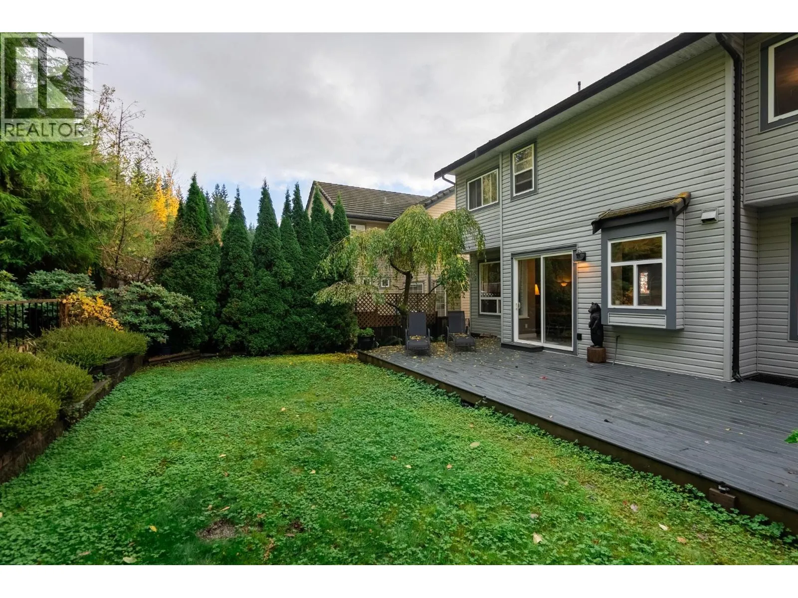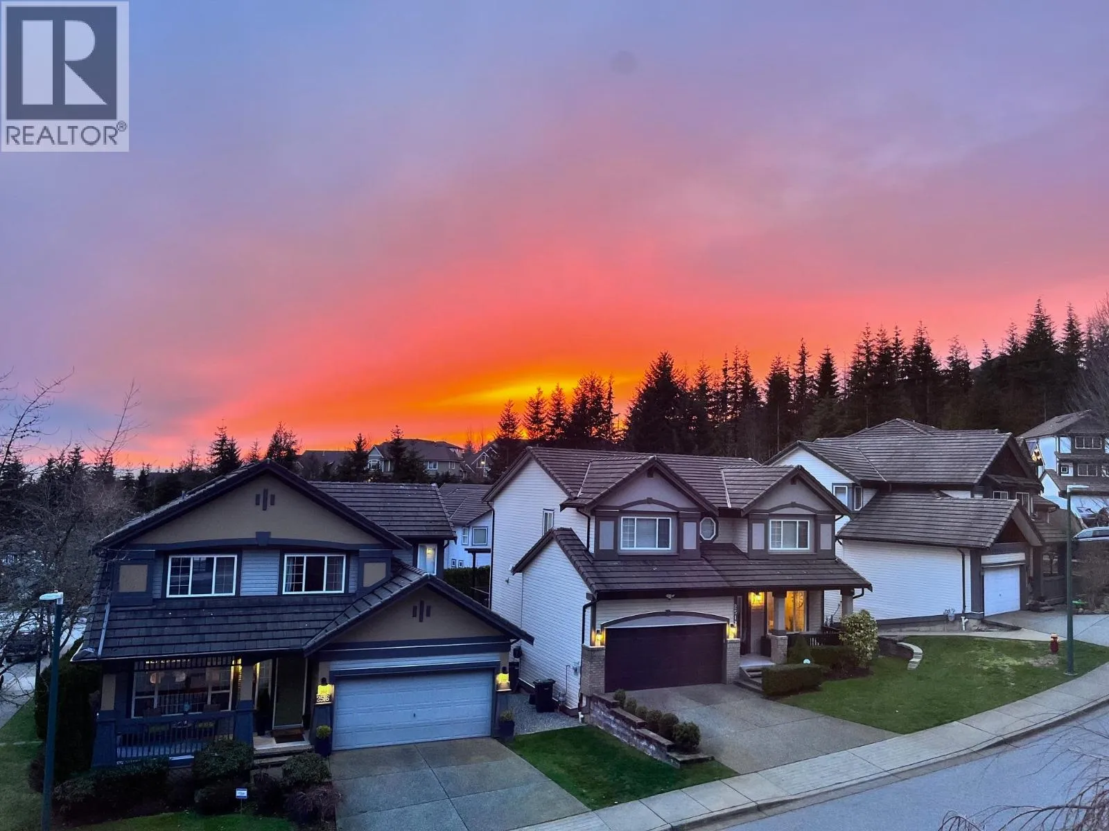 Nestled in sought-after Westwood Plateau, this beautifully maintained home backs onto a tranquil green space, offering privacy and stunning sunsets from your living room. Featuring 5 bedrooms and 4 bathrooms, the main level boasts a bright living room with 17-ft vaulted ceilings, a stylish kitchen with stainless steel appliances, marble backsplash, granite counters, and a cozy family room with gas fireplace. Upstairs offers 3 spacious bedrooms, while the basement features a large rec room, 2 bedrooms, and a full bath-perfect for guests, teens, or extended family. Complete with a 2-car garage, this home blends elegance, comfort, and natural beauty. (id:27476)