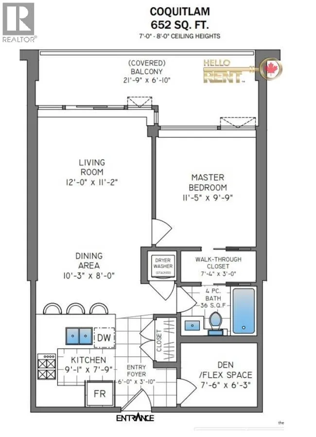 Avail Nov 15, 2025 Unfurnished Utilities Not Incl Pets Allowed With Owner Approval 1 Secured Parking Stall Incl Secured Storage Incl Professionally Managed by Hello Rent Modern 1-bed+den condo on the 27th floor offering bright, contemporary living with an open layout, stylish finishes, and floor-to-ceiling windows with stunning city views. The gourmet kitchen includes stainless-steel appliances, granite counters, and tile floors. Enjoy relaxing on your private balcony overlooking Coquitlam´s skyline. Amenities include a fitness studio, theatre, lounge, party room, outdoor pool, hot tub, rooftop garden, kids´ play area, and more. Near Coquitlam Centre, SkyTrain, Lafarge Lake, restaurants, cafés, and shops. Tenant Insurance required at move-in. Move-In Fee $300 Paid to Strata. (id:27476)
