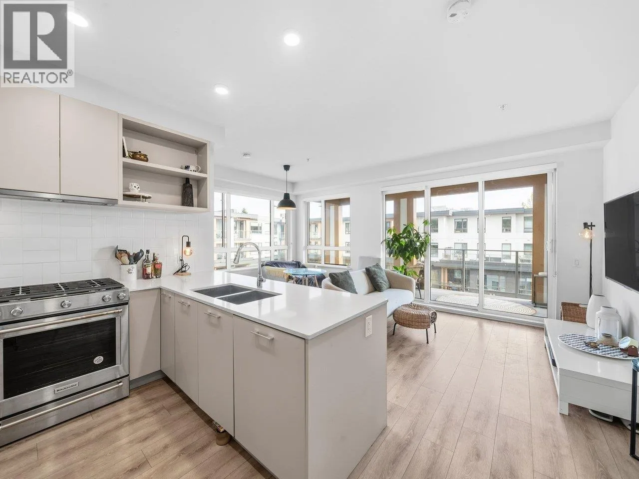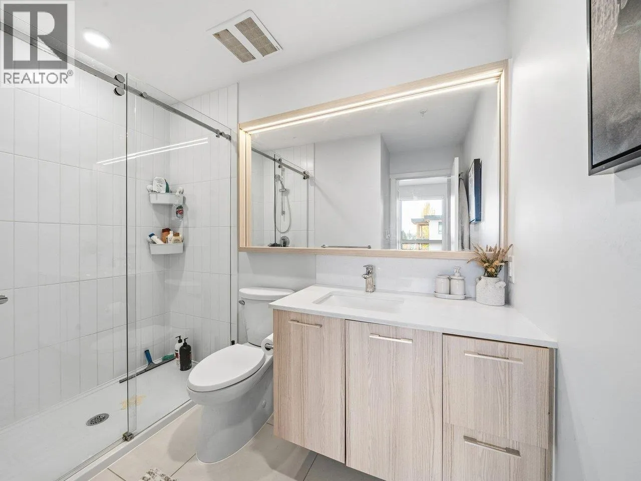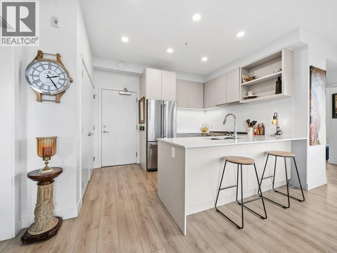 Penthouse living with style. Welcome to your private sanctuary in the sky! This stunning 2 bedroom 2 bath penthouse condo boasts 774 square feet of thoughtfully designed living space, soaring high ceilings, and an abundance of natural light that pours in through expansive windows. Perched on the top floor, this home offers a bright and airy open-concept layout, perfect for both relaxing and entertaining. The spacious living and dining area seamlessly connects to a sleek, modern kitchen,creating a natural flow throughout. Tall ceilings amplify the sense of space, while stylish finishes provide a contemporary yet comfortable ambiance. The primary suite features ample closet space and a private ensuite, while the second bedroom offers flexibility. EV charging accessible, close to skytrain. (id:27476)