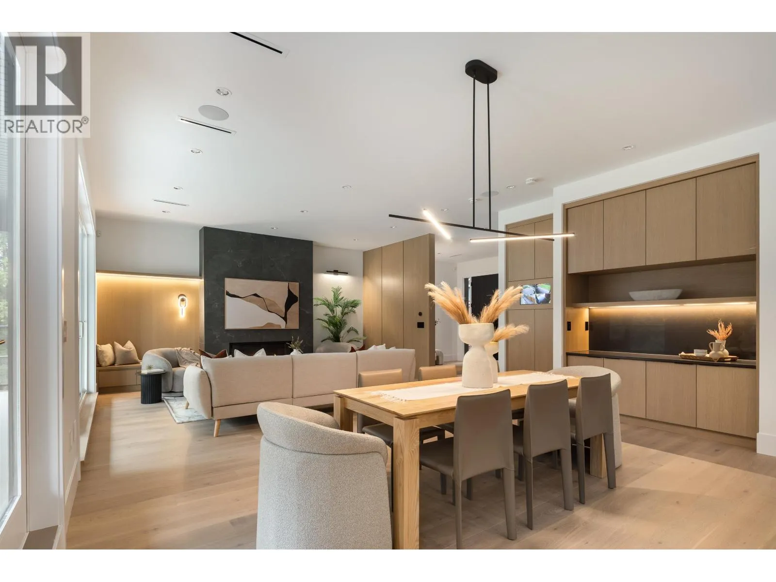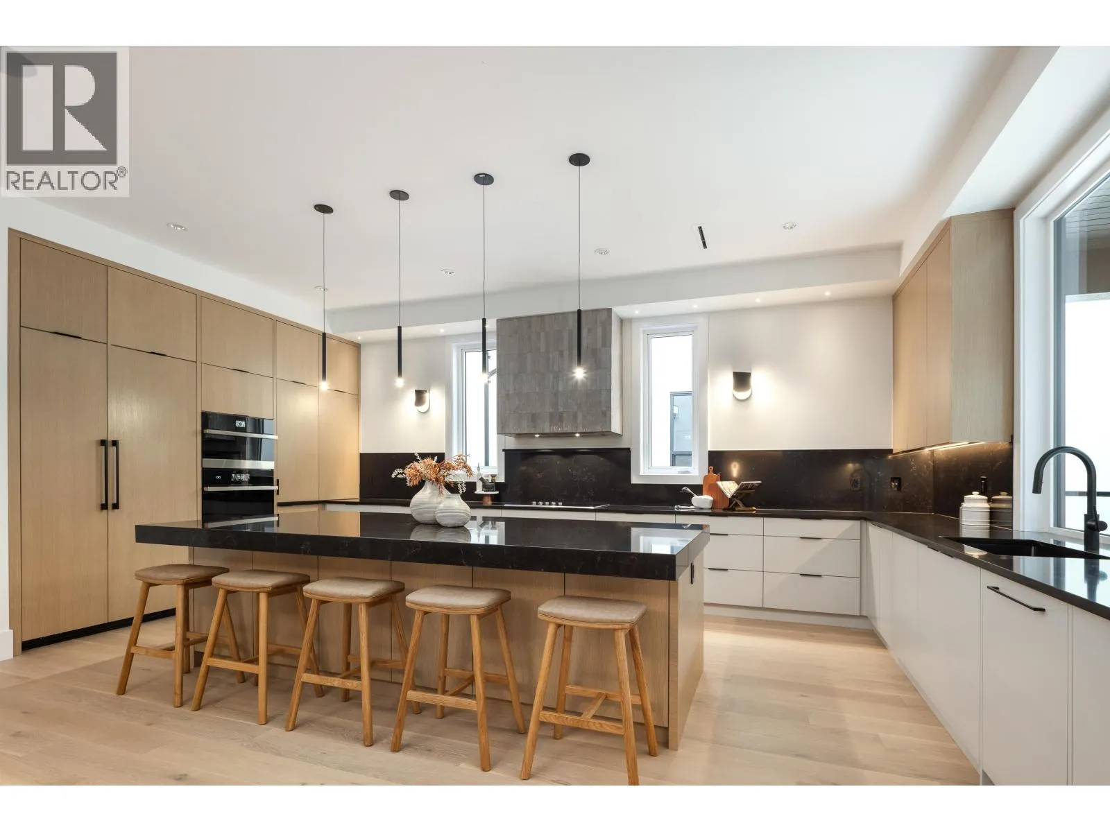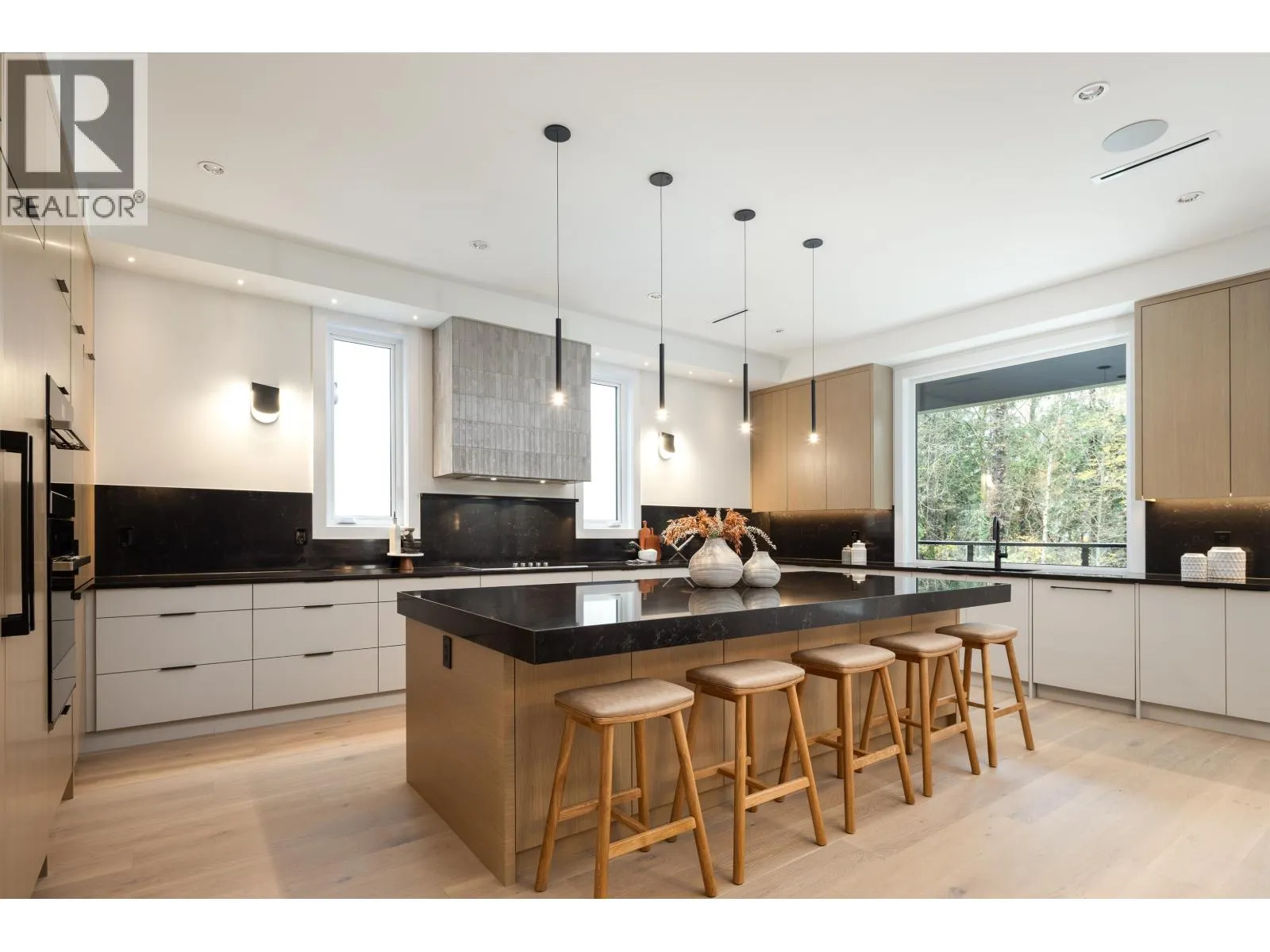 AMBROSIA II by Quantus Homes- where contemporary design meets luxury living. This stunning Westcoast home offers 5,086 sqft of thoughtfully designed living space on an expansive lot backing onto serene greenspace. Inside, this 7 bed, 7.5 bath home showcases premium designer finishes incl. radiant in-floor heating, AC & a host of luxury features. Enjoy entertaining in your chefs kitchen with premium appliances, large waterfall island & wok kitchen with gas range. The dining area opens up to the spacious living room with sliding doors that lead to your 406 sqft balcony. Upstairs, the Primary retreat offers a spa-like ensuite & 2 WICLO + 3 additional bdrms & a loft- ideal for a home office. The bsmt includes a large rec room & 2 bed legal suite. BONUS: Main floor bdrm + ensuite, great for guests! (id:27476)