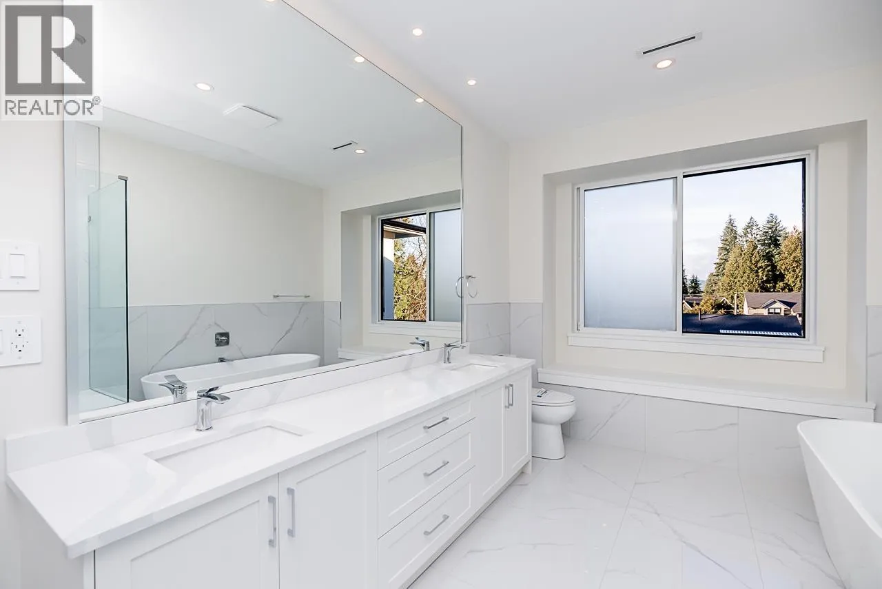 Elegant and luxurious living in West Coquitlam. This extraordinary home with outstanding curb appeal is situated in one of Coquitlam's most desirable neighbourhoods, offering 5,700+ sq/ft of living space and located on a massive 10,220 sq/ft lot. Bright, spacious and open layout, featuring 8 beds, 8.5 baths, including a guest room on the main with full ensuite and the primary retreat upstairs, with WIC + spa-inspired ensuite. Additional 3 beds upstairs, all with ensuites. 2-bed legal suite on lower level (MORTGAGE HELPER), plus 1 bedroom guest area with separate entry. A/C, radiant heat, triple-car garage + prime location - close to Vancouver Golf Club, Como Lake Park, Blue Mountain Park, The City of Lougheed Shopping Centre, schools & transit. Some photos virtually staged. (id:27476)