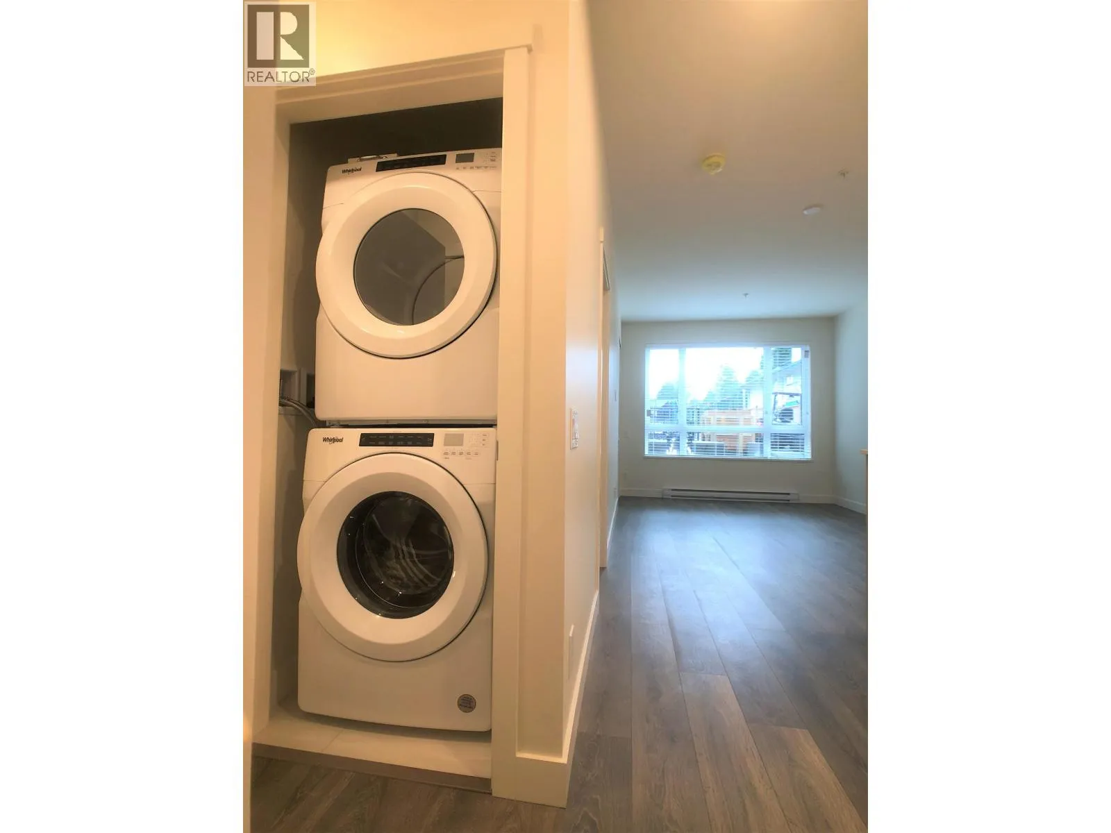 Available for long term tenancy. Well laid out floor plan with separate bedrooms and wood flooring throughout. Garden suite with patio access. Stainless steel appliances including a French door fridge, gas stove, microwave and dishwasher. Full size Whirlpool laundry center. Rent includes gas, hot water, city utilities, a parking stall and locker. Residents can use building amenities such as games room, fitness room and party room. Easy access to Burquitlam SkyTrain station, Safeway, Korean Town and SFU. Pets considered. (id:27476)