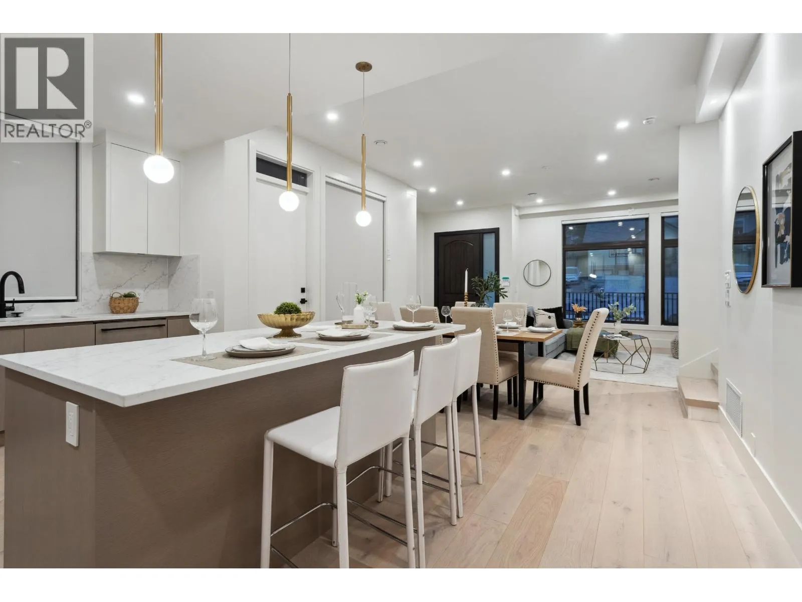 Welcome to The Quad in Maillardville, a luxury fourplex offering nearly 1,500 square ft of modern living. Each unit showcases unique design, featuring an open-concept main floor with large windows for natural light, three bedrooms upstairs, and 2.5 stylish washrooms. Premium features include AC with heat pump, quartz counters and matching backsplash, Oversized kitchen island with seating for casual dining or entertaining, Fisher & Paykel appliances, Trek board patio decking, iFlow HVAC, tankless hot water, Google Nest thermostat, plaster-finished wall, soundproofed bedroom walls, 10 ft ceilings on the main floor Built by Majacks Development with a focus on energy efficiency and long-term quality. Contact us for the full feature sheet or visit @majacksdevelopments on Instagram. (id:27476)