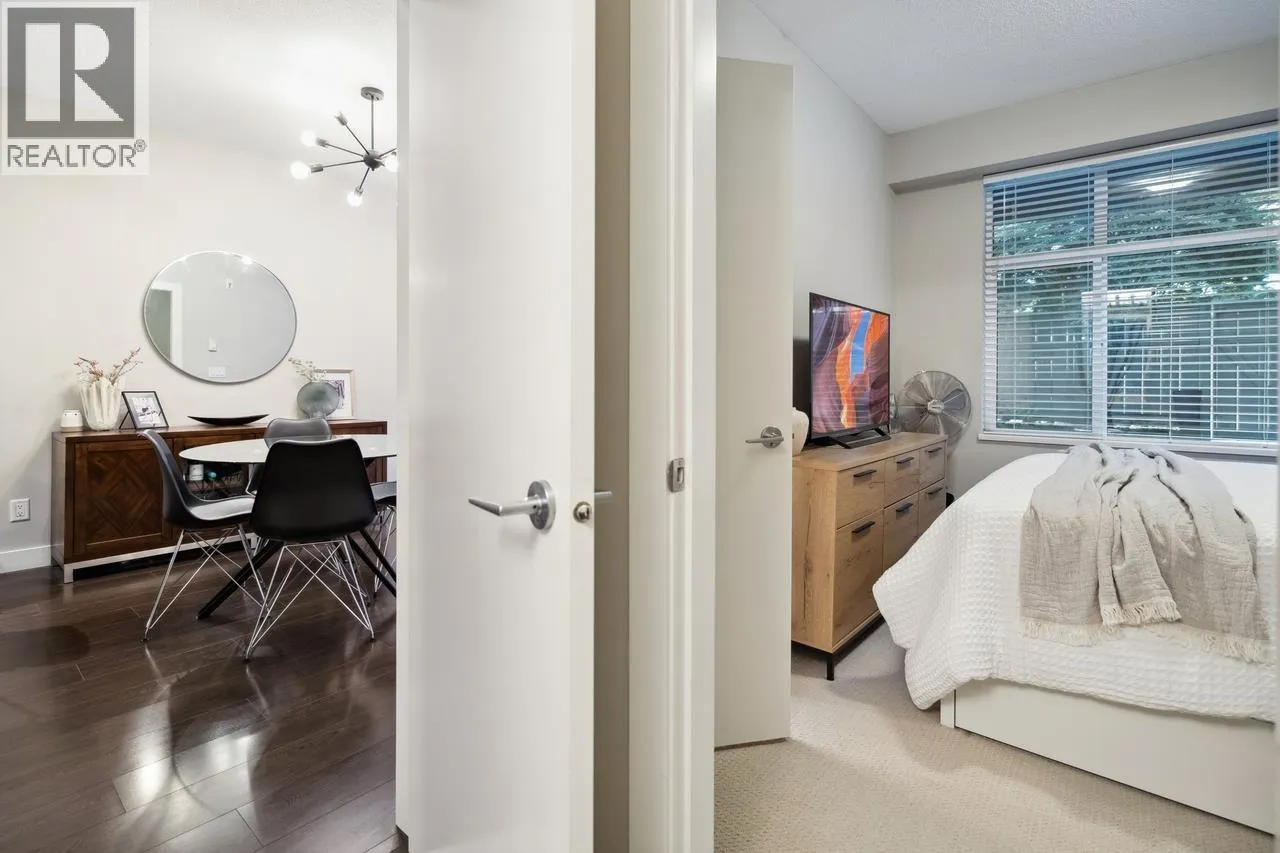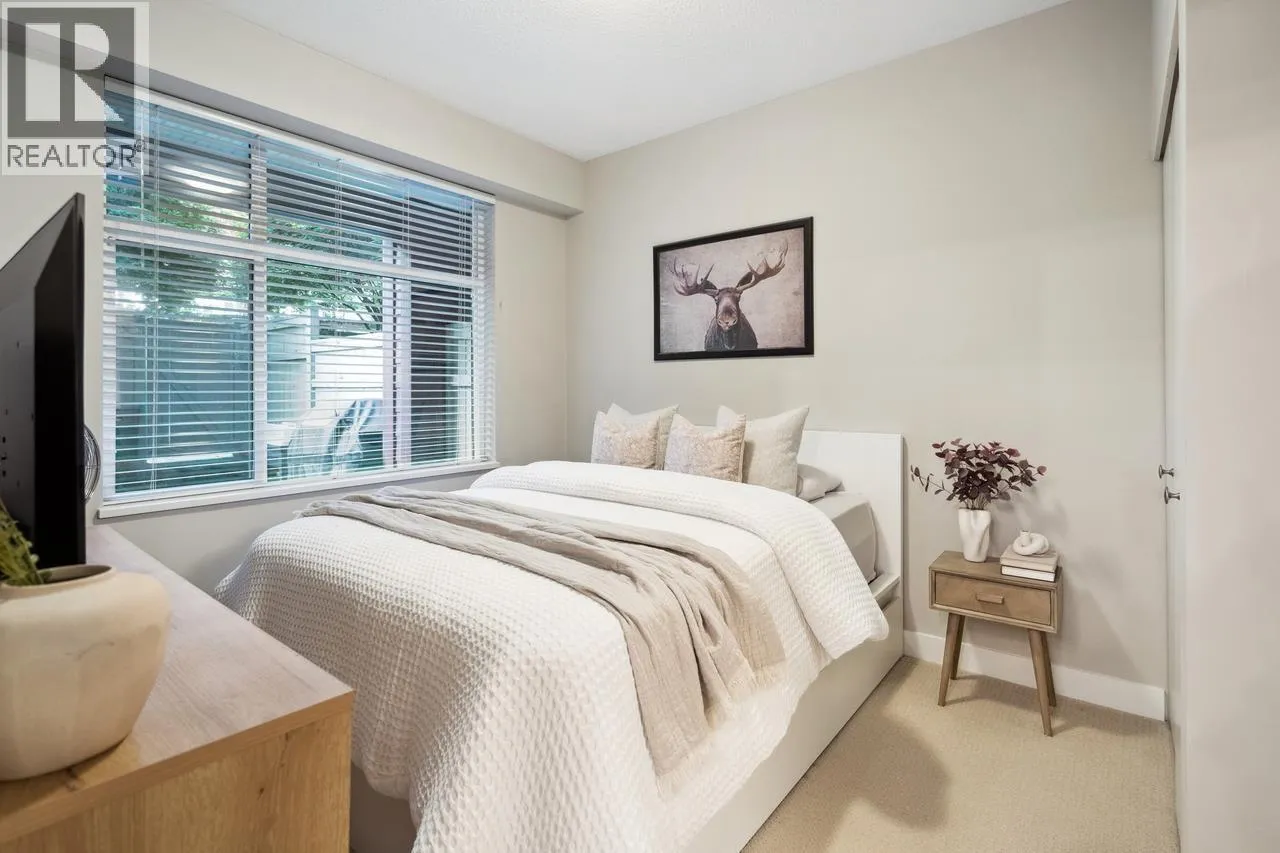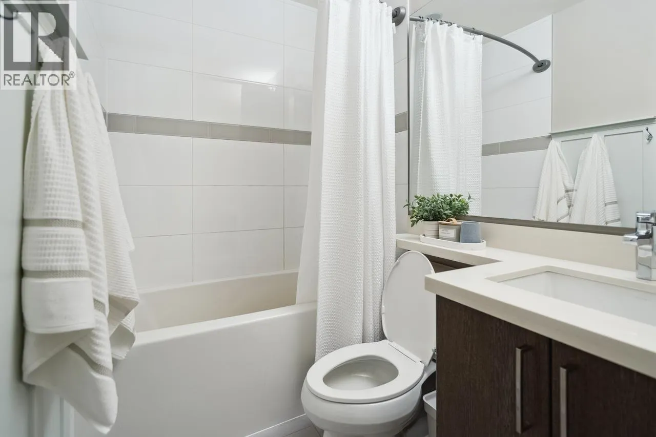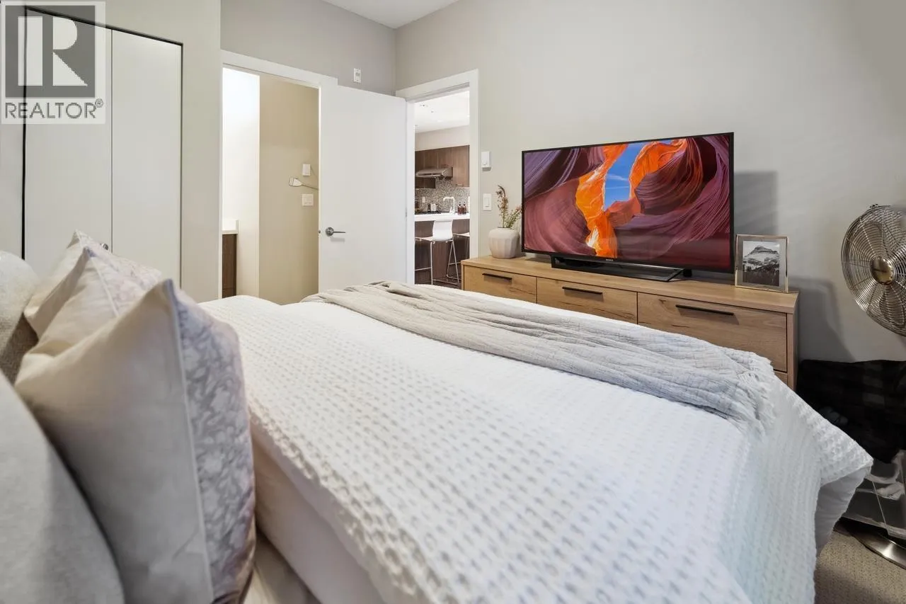 "CHARLAND" by LEDINGHAM MCALLISTER! This is the one you've been waiting for! A stunning 1-bedroom + den/home office with a spacious 232sf private entertaining patio-perfect for summer BBQs, relaxing evenings, or hosting guests. With direct lane access for extra parking, convenience is at your doorstep. This bright and airy home boasts an open-concept layout with a generous living/dining space, laminate floor throughout, in-suite laundry, and high-end finishes, including stainless steel appliances, quartz countertops, tile backsplash, and soft-close cabinetry. Amenities include secured underground parking, a storage locker, an exercise room, bike & kayak storage, and a common rooftop terrace with breathtaking views. Located in the heart of Austin Heights, you're just steps from transit, shopping, dining, Blue Mountain Park, and the Vancouver Golf Club. Pet and rental friendly, this is a fantastic opportunity for homeowners and investors! Immediate possession! (id:27476)