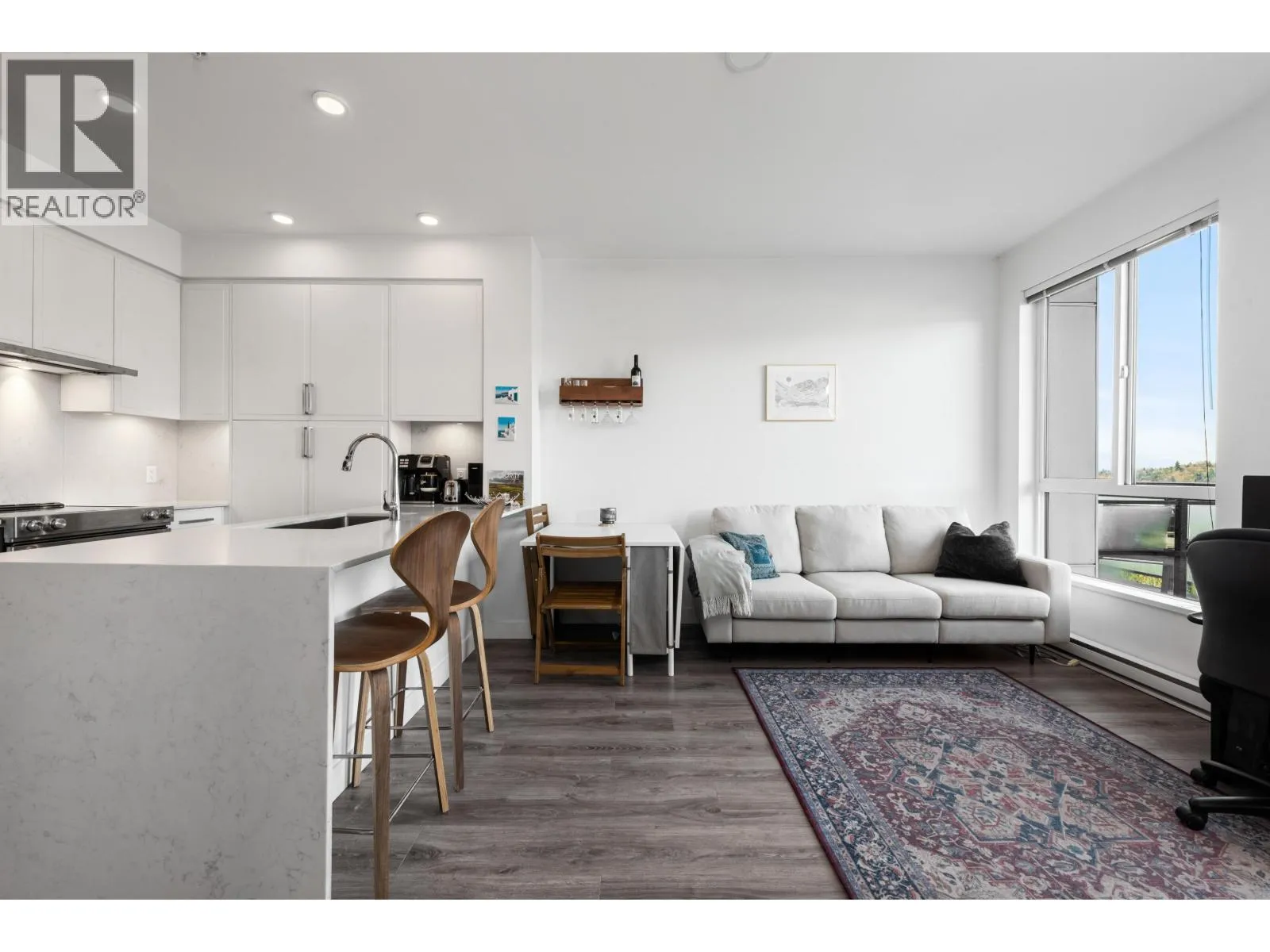 TOP-FLOOR 1-bed with mountain views in a modern building! This bright home features high ceilings, an efficient open layout, full-size stainless appliances, in-suite laundry, and a private balcony for sunset evenings. The bedroom fits a queen-size bed with nightstands on both sides, plus smart closet space. Parking and storage included. Vista is a boutique 76-unit building with a stunning rooftop deck, gym, and family-friendly amenities. All of this just an 8-minute walk to Burquitlam SkyTrain, Safeway, YMCA, cafés, restaurants, and daily essentials - perfect for first-time buyers or investors seeking strong long-term rental demand. Short drive to SFU and Port Moody's brewery row. (id:27476)