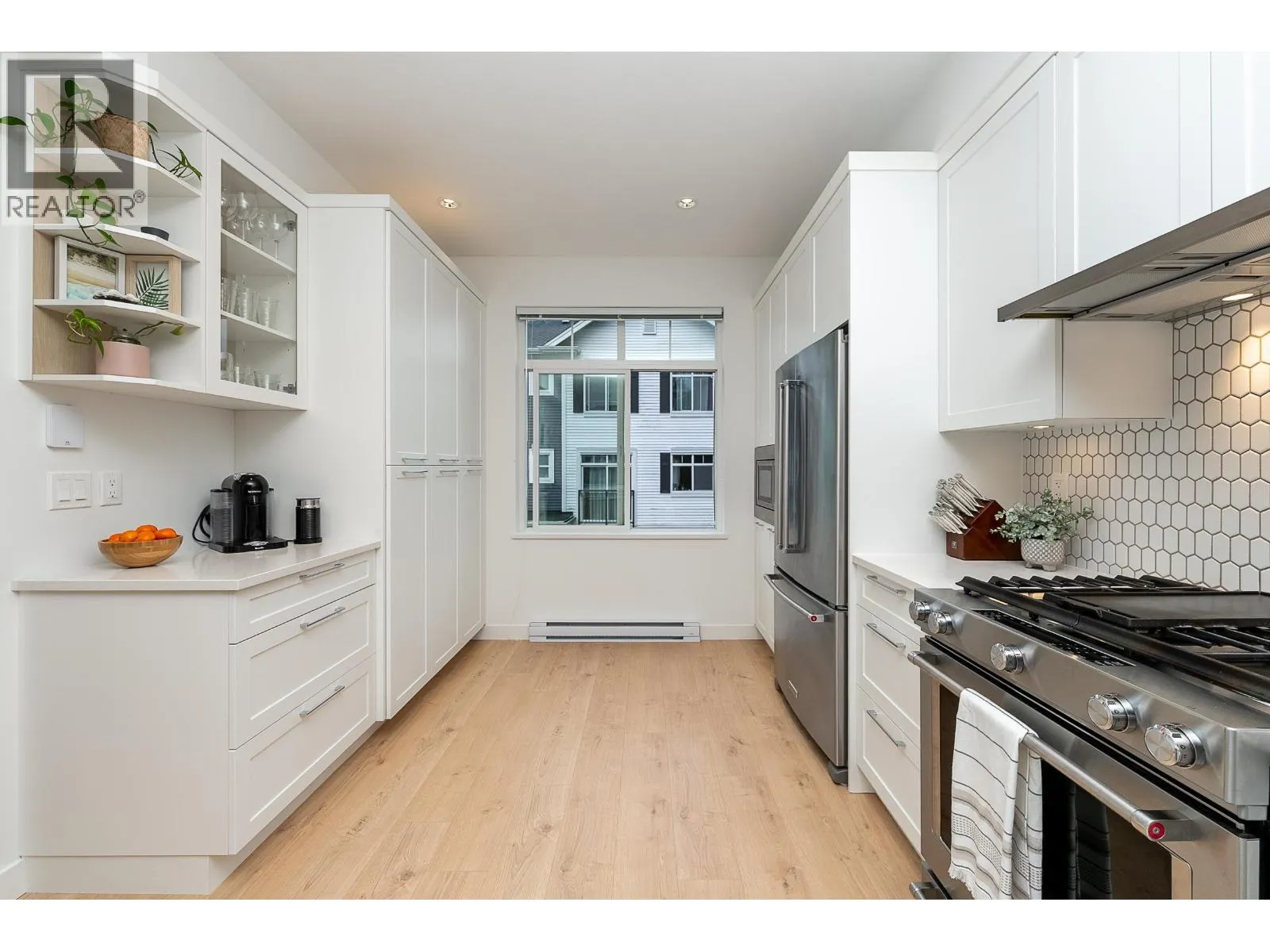 Welcome to Rocklin on the Creek! Beautiful end unit townhome backing onto a serene greenbelt! Offering 3 beds, 3 baths and 1,341 square ft of living space w/picturesque views from all rooms! On the main enjoy 9 ft ceilings and oversized windows that stream in natural light. Thoughtfully designed kitchen w/quartz counters, gas cooktop + custom built-in cabinetry w/prep space. Dining and generous living seamlessly connect and step out to a private, fenced backyard with patio and gas BBQ hookup. Up are 3 beds including a vaulted-ceiling primary w/dbl closets and ensuite, plus laundry for convenience. Fully finished garage w/storage solutions, smart thermostats, blackout blinds for bedrooms. Surrounded by nature and trails, while being a short distance from schools, shopping, parks + recreation. (id:27476)