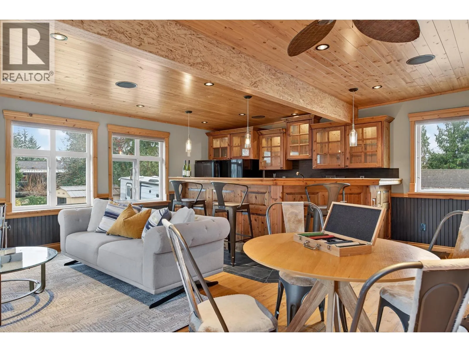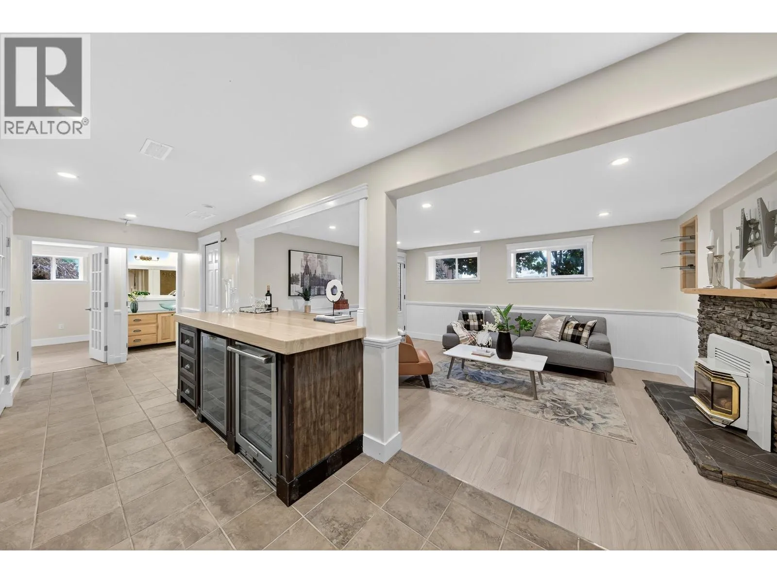 Beautifully updated 5-bedroom home on a rare 9,800+ sqft lot in a prime central location! The main level offers 3 bright bedrooms and a bathroom, while the lower level features a fully self-contained 2-bedroom suite - perfect for extended family or rental income. A major highlight is the impressive media room with a custom bar, keg fridge, ice maker, dining area, and its own bathroom. Enjoy the new oversized deck overlooking the private, landscaped yard. Additional features include a double attached garage, extra storage, custom concrete driveway, Hardie board siding, and metal roof. There is also a third laundry rough-in and a fourth bathroom rough-in already in place, offering great potential for future customization. Truly a one-of-a-kind property that must be seen! (id:27476)