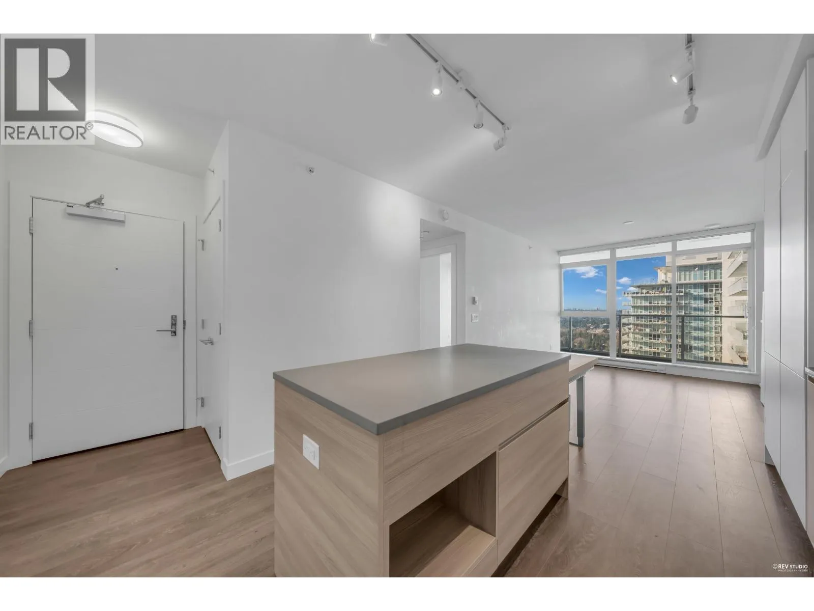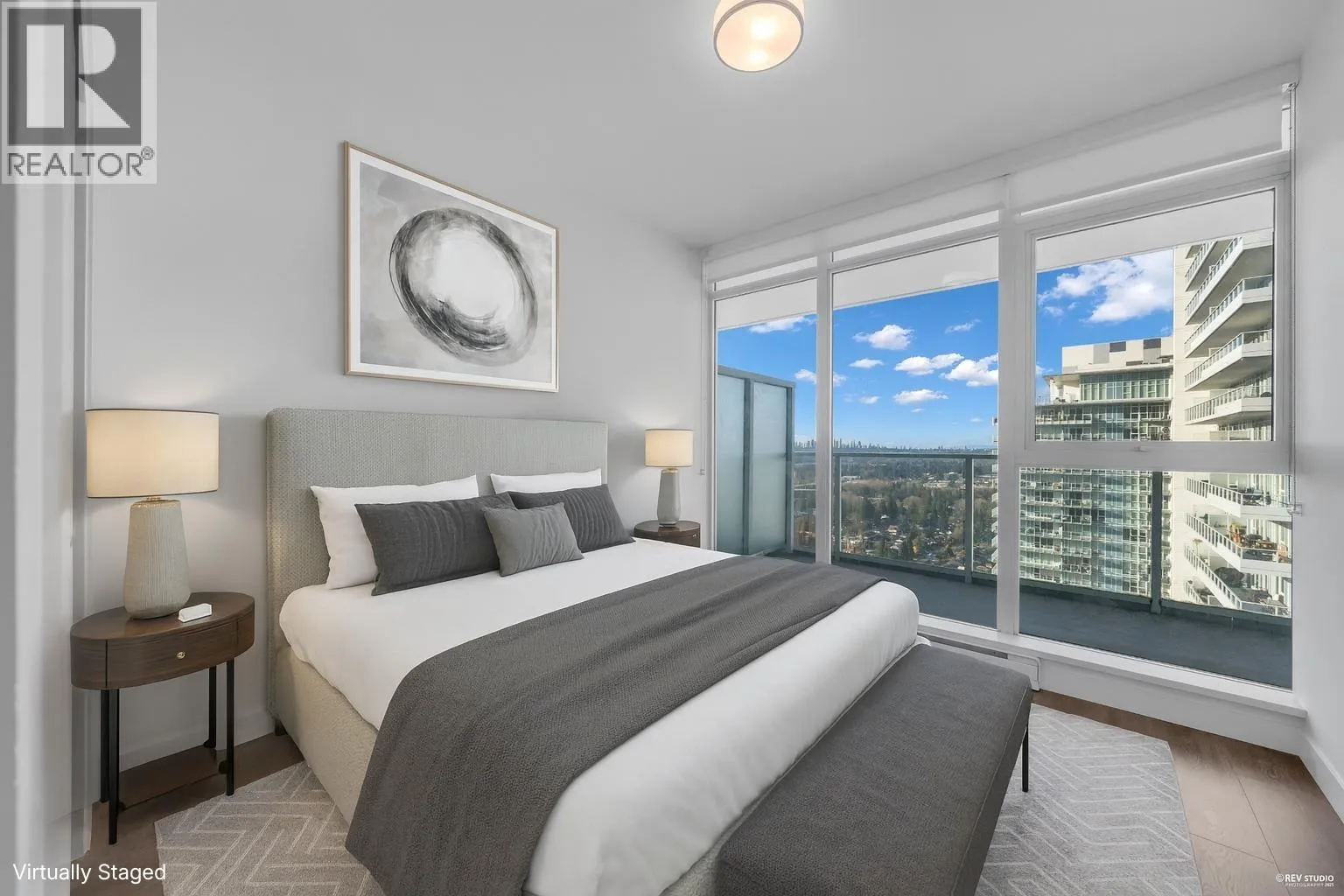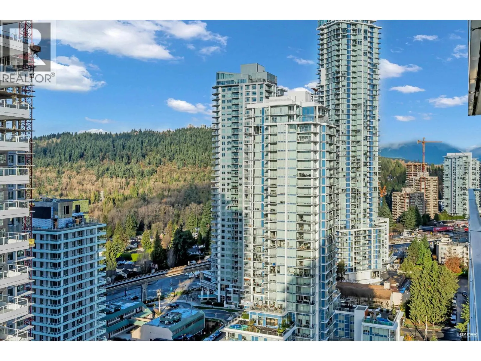 WELCOME TO LOUGHEED HEIGHTS II Built by Bosa. This unique floor plan has no wasted space: a beautifully contemporary kitchen w/extended dining table (sits up to 8), built-in fold bed in the living room for extra guest. Beautiful kitchen equipped w/Euro-inspired designer composite stone countertops, contemporary cabinets, premium SS appliances. Bathroom features luxurious soaker tub with integral shower. Wide plank flooring & stylish roller shades throughout. 144 SF of balcony space with great view of city, mountain and Burnaby lake. Over 17,000SF of private amenity space, including: Indoor basketball court, gym, yoga room, steam & sauna, outdoor pool, library, theatre, dog park & more.Mins walk to shopping and skytrain. 1 parking1locker.For marketing purposes, unit has been virtually staged. (id:27476)