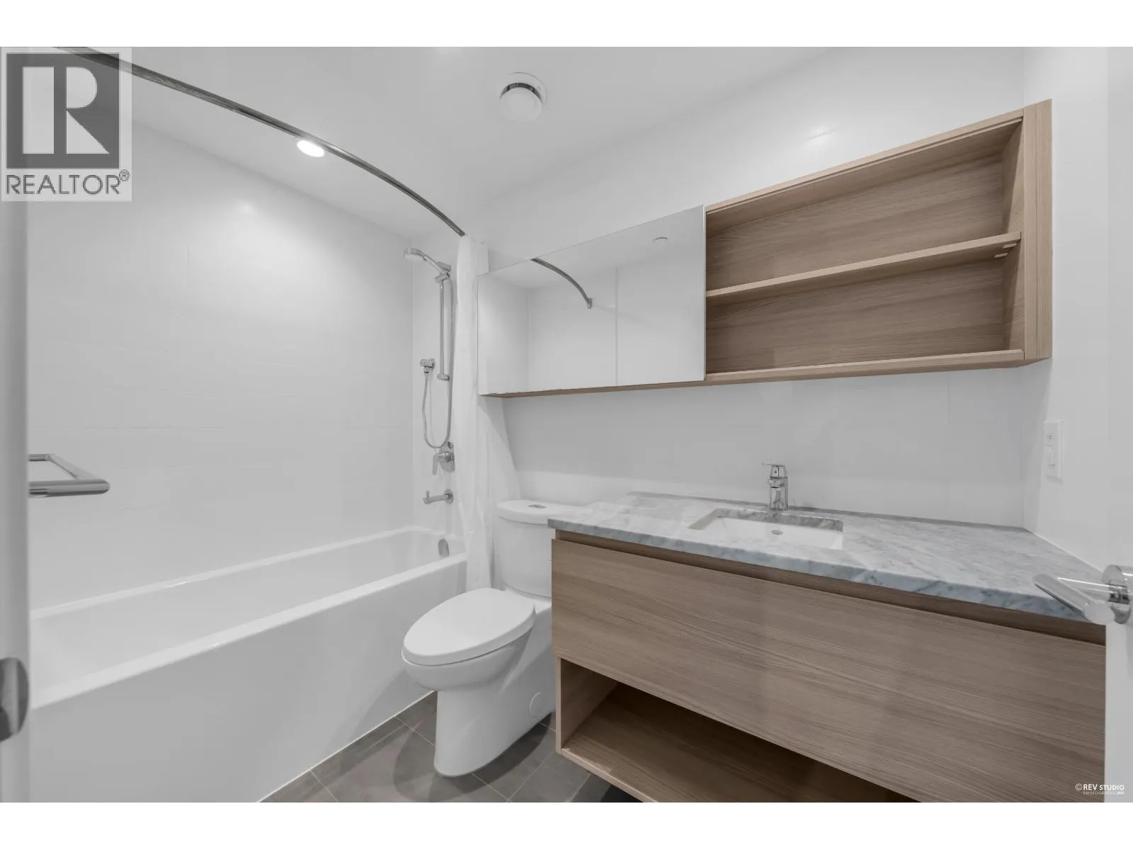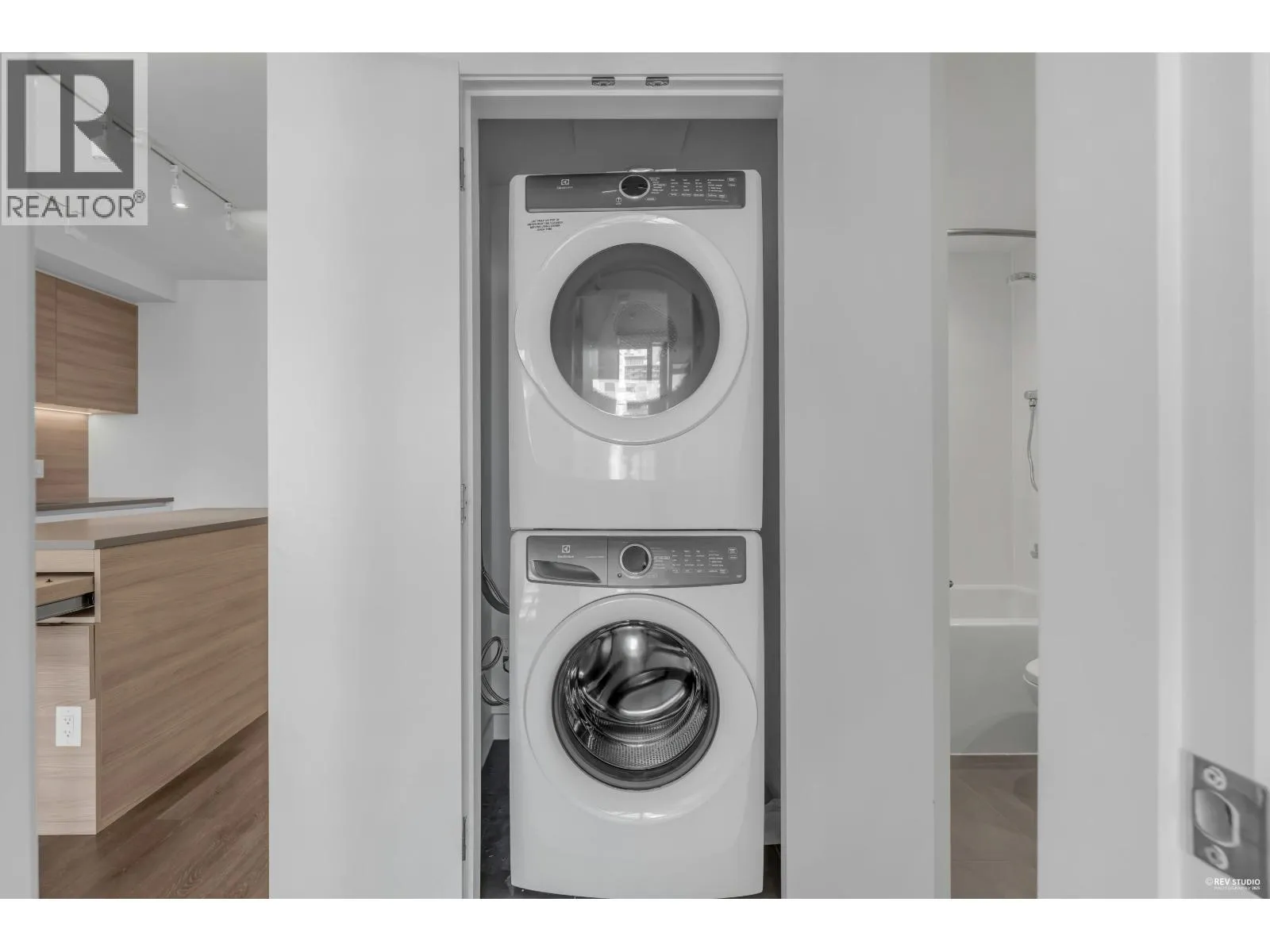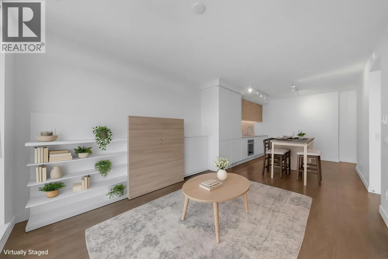 WELCOME TO LOUGHEED HEIGHTS II Built by Bosa. This unique floor plan has no wasted space: a beautifully contemporary kitchen w/extended dining table (sits up to 8), built-in fold bed in the living room for extra guest. Beautiful kitchen equipped w/Euro-inspired designer composite stone countertops, contemporary cabinets, premium SS appliances. Bathroom features luxurious soaker tub with integral shower. Wide plank flooring & stylish roller shades throughout. 144 SF of balcony space with great view of city, mountain and Burnaby lake. Over 17,000SF of private amenity space, including: Indoor basketball court, gym, yoga room, steam & sauna, outdoor pool, library, theatre, dog park & more.Mins walk to shopping and skytrain. 1 parking1locker.For marketing purposes, unit has been virtually staged. (id:27476)