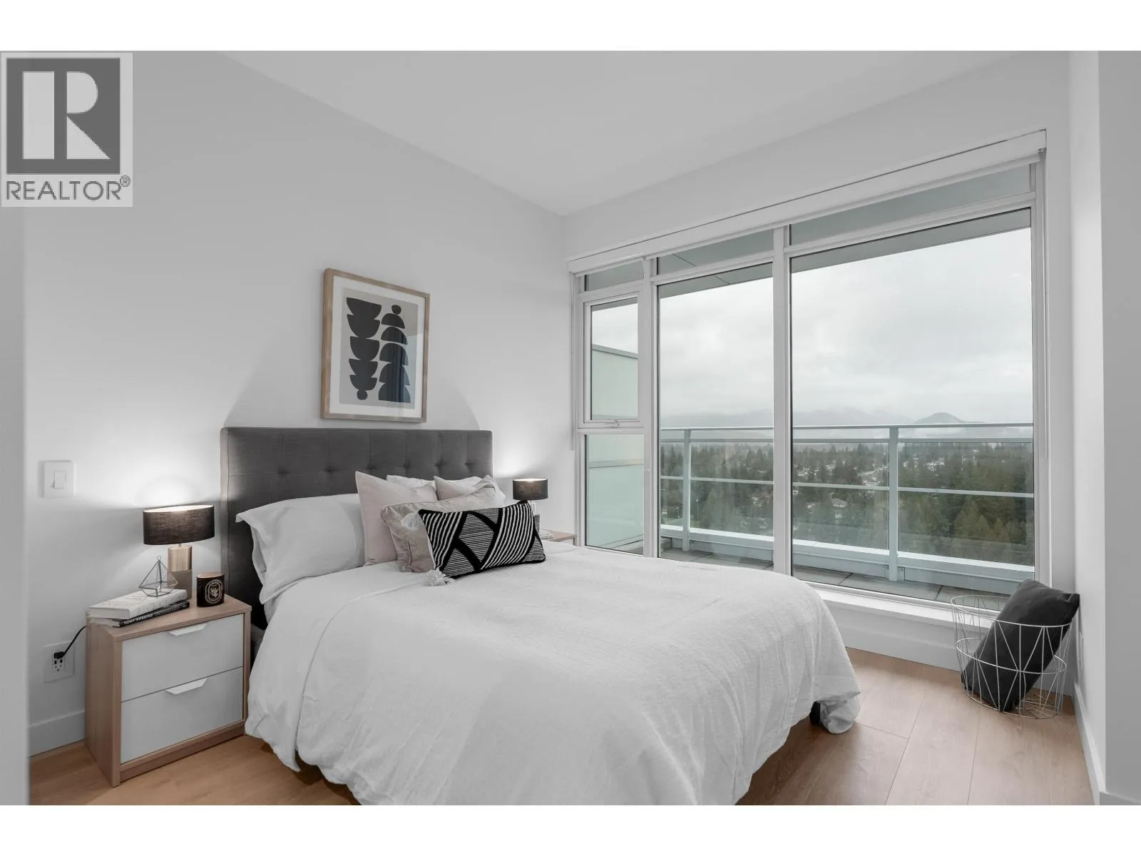Welcome to this newly completed 2-bed, 1-bath sub-penthouse on the 23rd floor-747 sq. ft. of smart, stylish living with spectacular NE mountain and city views. A rare 140 sq. ft. balcony with natural gas and power extends your lifestyle outdoors. Inside, enjoy a premium kitchen with quartz countertops and Fisher & Paykel integrated appliances, plus sleek laminate flooring throughout. West by Beedie puts you in the heart of Burquitlam, steps to shops, parks, The Vancouver Golf Club, and minutes to SFU. Resort-style amenities include a designer party room, state-of-the-art fitness centre, co-working lounge, luxury guest suite, outdoor BBQ area, and a one-of-a-kind indoor sports court you won´t find anywhere else! (id:27476)