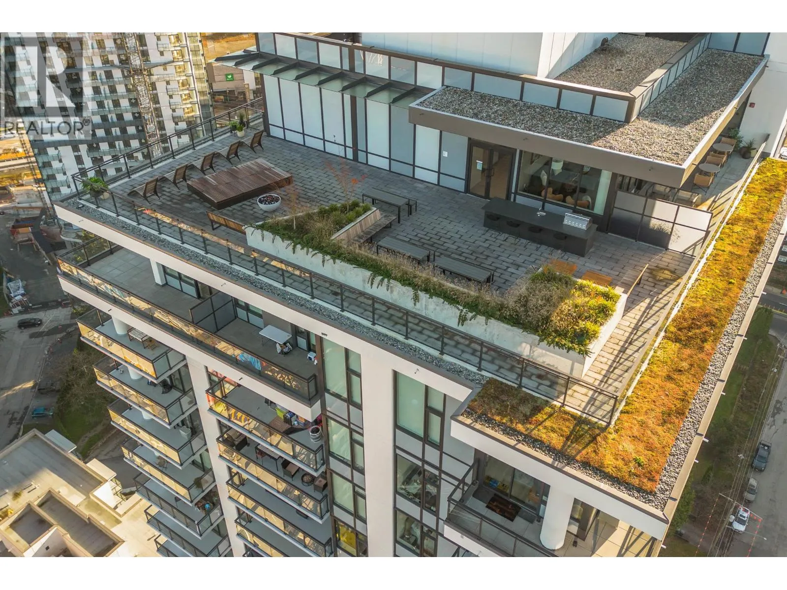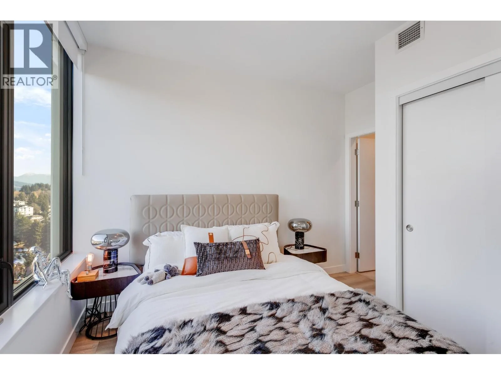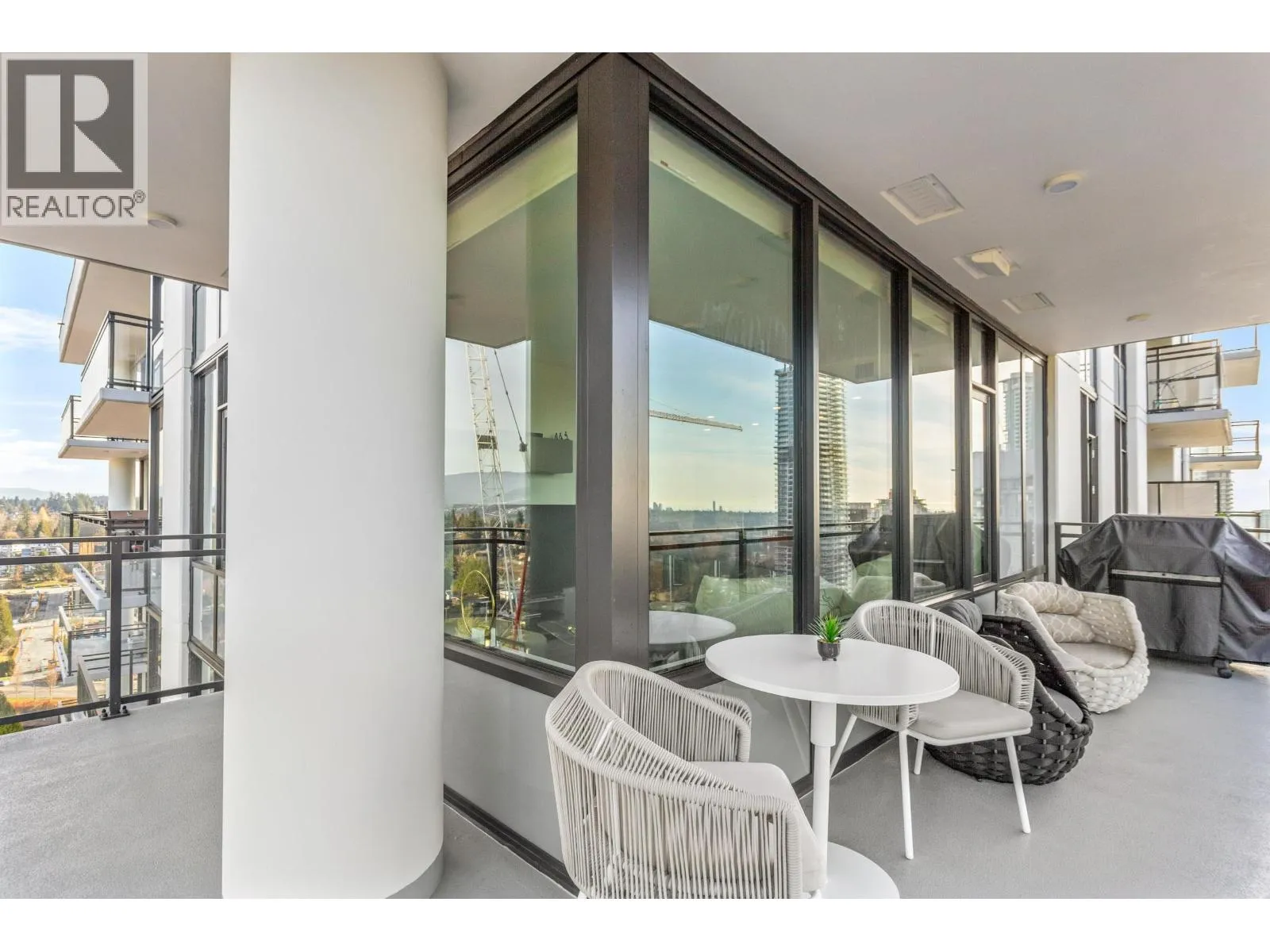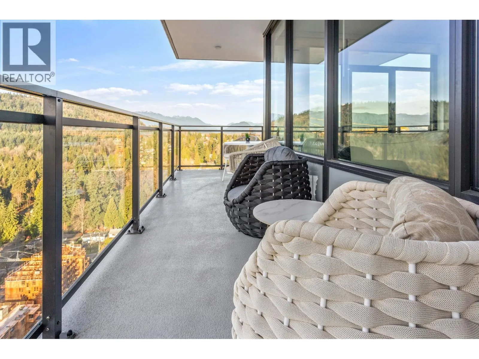 Gorgeous 2 BED & DEN! Professionally upgraded by A2H Design, it´s the ONLY suite with premium upgrades. Amazing VIEWS of the City & Mountains, floor-to-ceiling windows & a thoughtfully enhanced layout that maximizes sightlines & natural light ensuring VIEWS remain open & uninterrupted. Enjoy quick access to rooftop deck that offers resort style amenities: Sauna, cold plunge, pool, Hot tub, garden & more!The kitchen features mid-century inspired cabinetry, SS appliances incl. gas range. Enjoy a LARGE covered 220 SF wrap-around deck, split BED layout for privacy, & a DEN that can serve as a 3rd BED or office. Includes 2 Parking, storage, EV charging. Steps to SkyTrain, shops, dining, parks and trails. BONUS: Furniture can be included with sale. Shown by appointment. (id:27476)