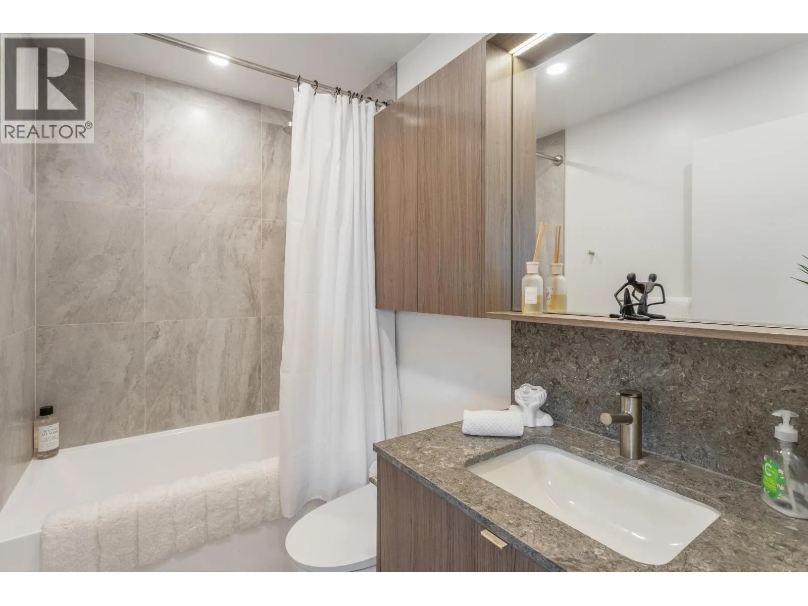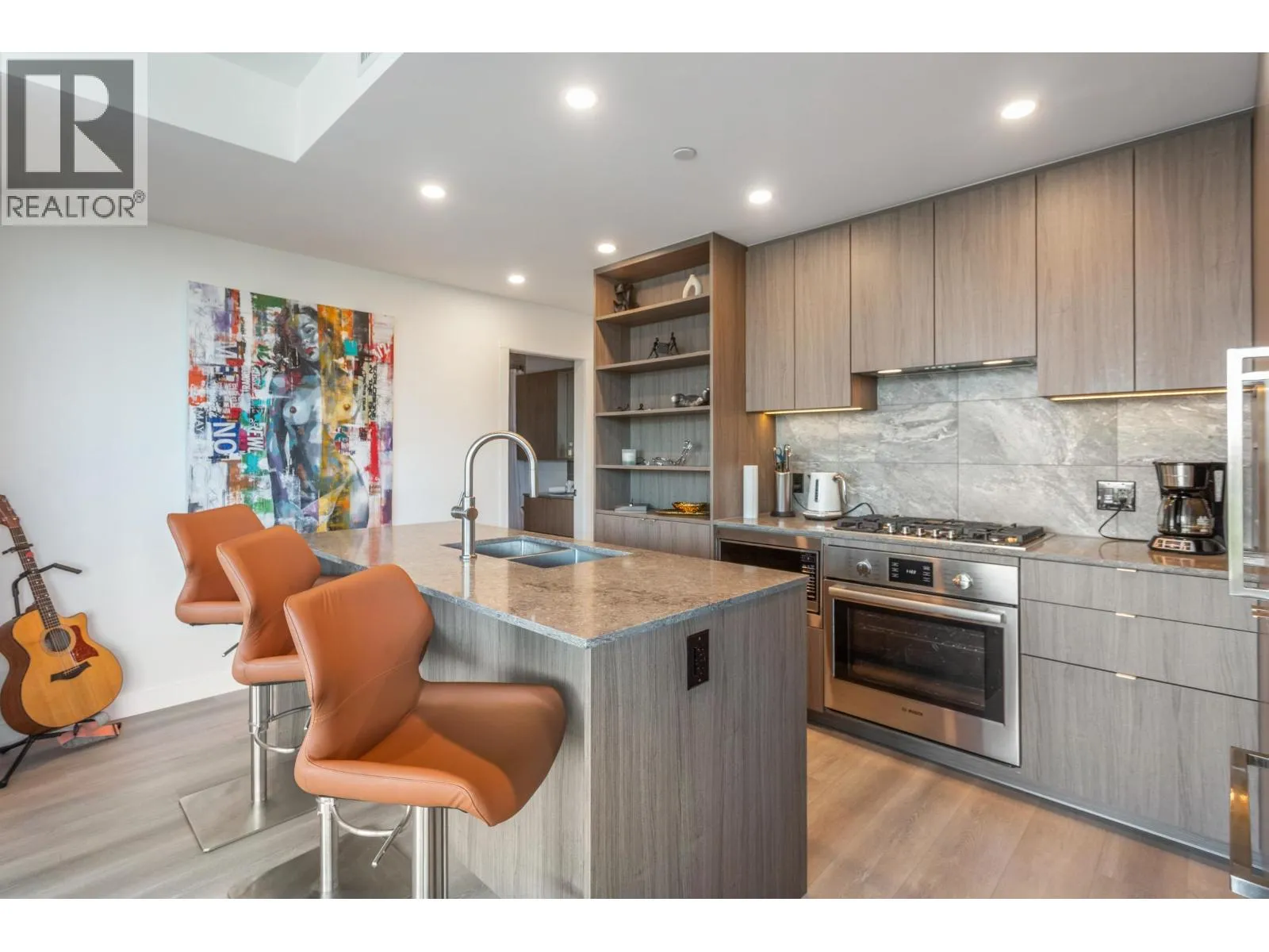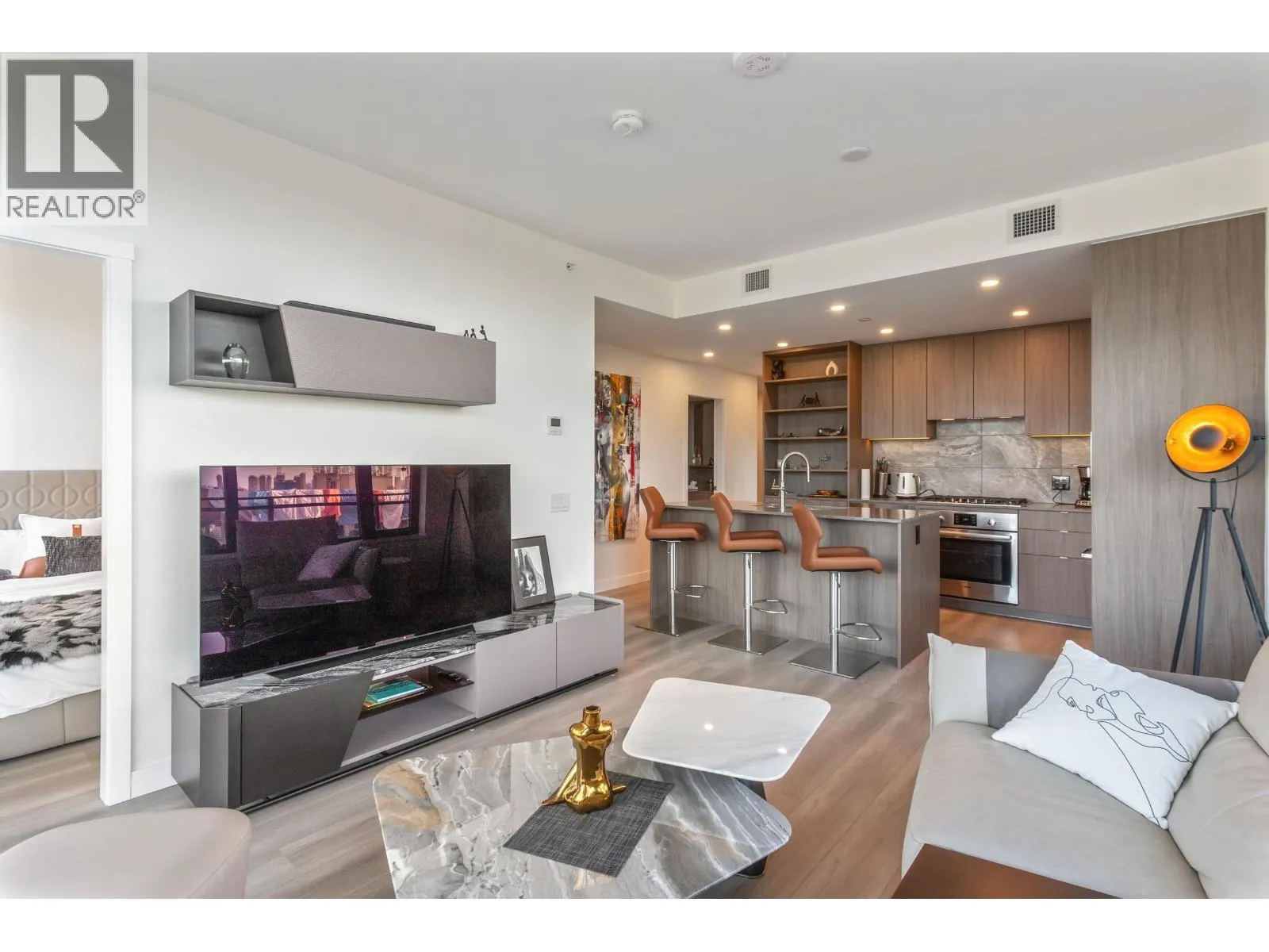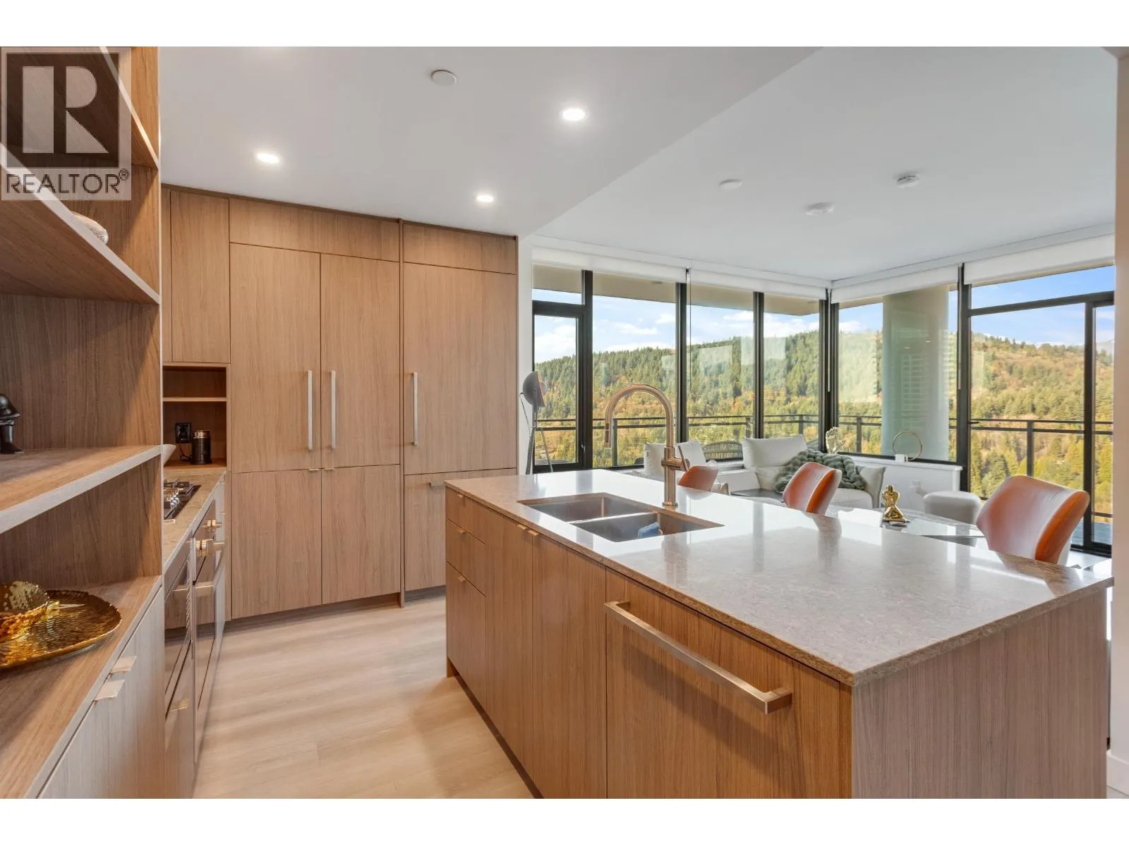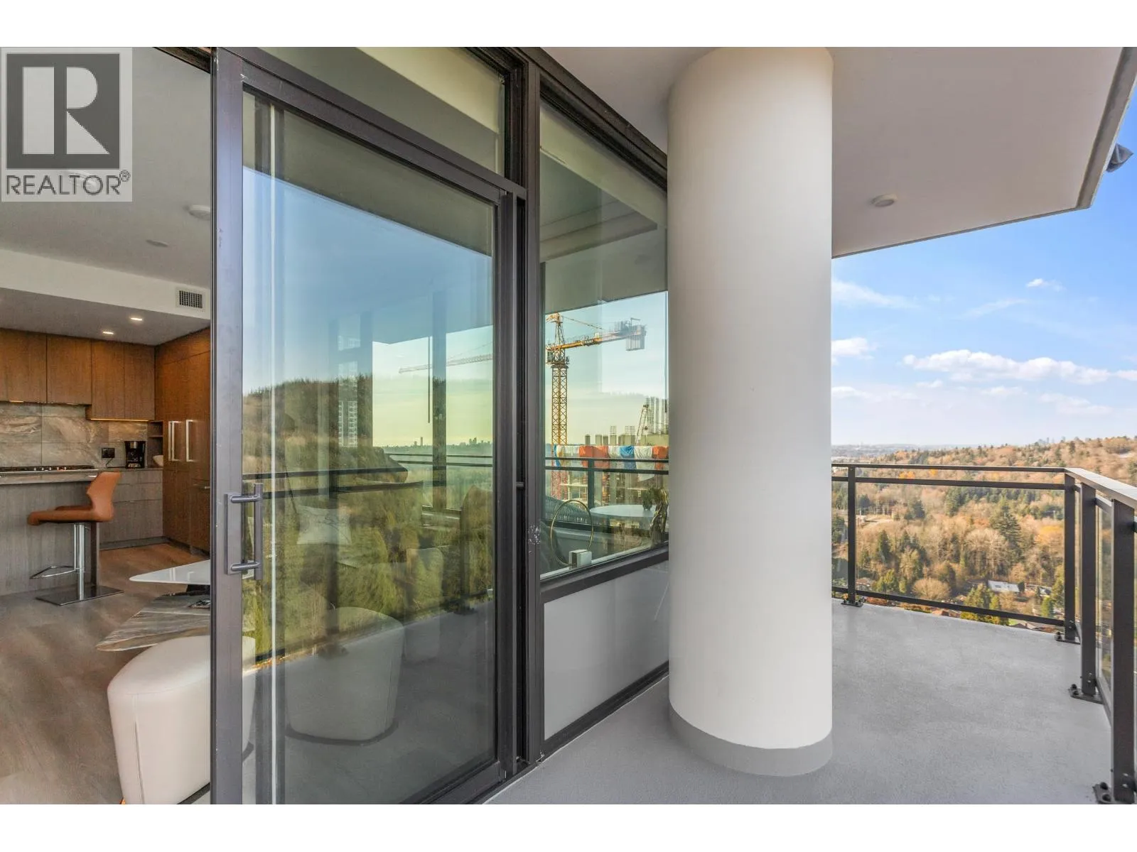 Gorgeous 2 BED & DEN! Professionally upgraded by A2H Design, it´s the ONLY suite with premium upgrades. Amazing VIEWS of the City & Mountains, floor-to-ceiling windows & a thoughtfully enhanced layout that maximizes sightlines & natural light ensuring VIEWS remain open & uninterrupted. Enjoy quick access to rooftop deck that offers resort style amenities: Sauna, cold plunge, pool, Hot tub, garden & more!The kitchen features mid-century inspired cabinetry, SS appliances incl. gas range. Enjoy a LARGE covered 220 SF wrap-around deck, split BED layout for privacy, & a DEN that can serve as a 3rd BED or office. Includes 2 Parking, storage, EV charging. Steps to SkyTrain, shops, dining, parks and trails. BONUS: Furniture can be included with sale. Shown by appointment. (id:27476)