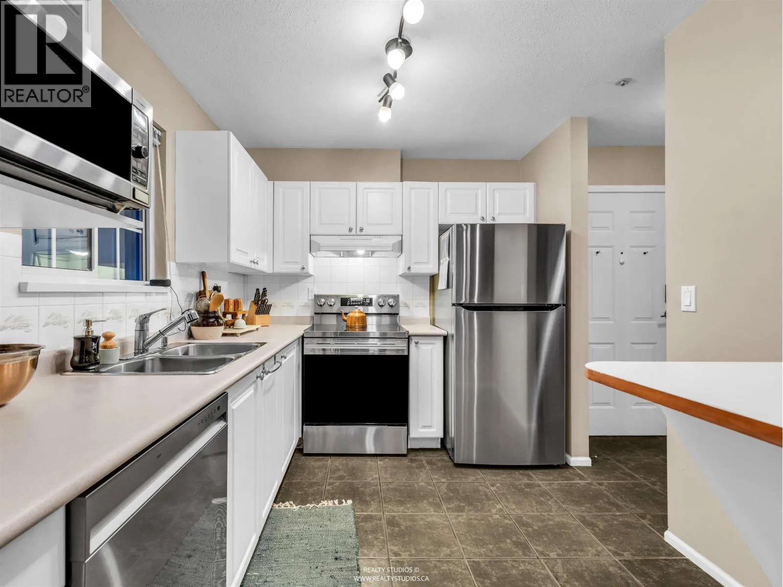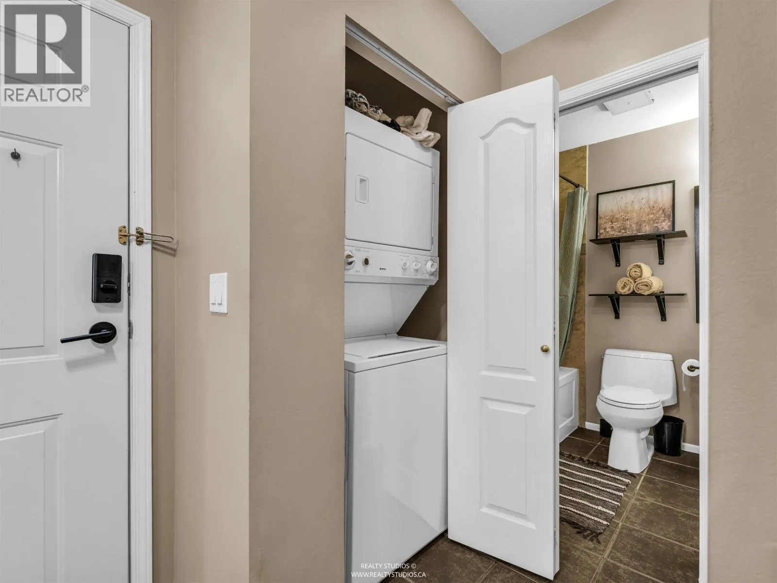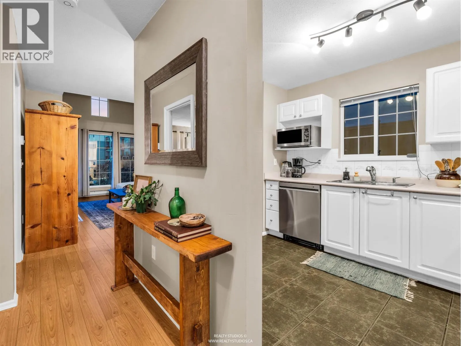 Penthouse condo with vaulted ceiling and high window for a sense of space and light. Covered balcony plus a bonus rooftop deck 30' x 12' @ 350 sq.ft. of outdoor living. Gas F/P. Open kitchen with new S/S appliances. In suite laundry and luxurious ensuite bathroom. Good location near schools and transportation. Parking #22 and locker #27. (id:27476)