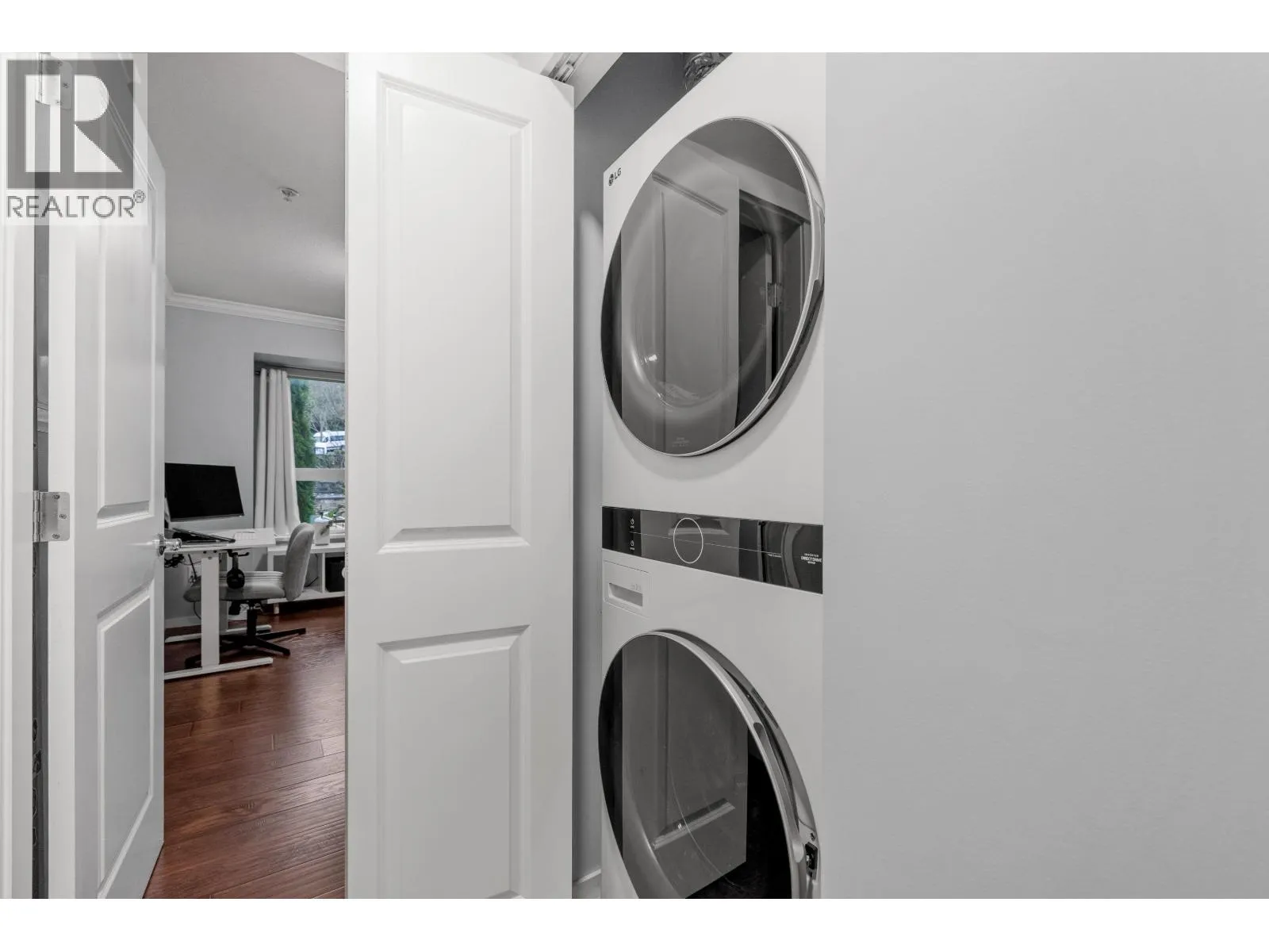Welcome to this private corner home at The Lanterns by Polygon in sought after Dayanee Springs. This 2-bed, 2-bath, 1,024 sf home sits on the quiet side of the building with a peaceful view of the pool and courtyard. This bright, open layout features fresh paint and laminate flooring throughout, separated bedrooms and a spacious living/dining area that leads to a large covered balcony for year-round BBQs. The kitchen offers granite counters, stainless appliances and a gas range, with marble finishes in the baths. This home comes with two parking stalls, a storage locker and access to the Timbers Club, which boasts a pool, hot tub, gym, theatre and lounge. Steps to parks, schools, SkyTrain and Coquitlam Centre-an ideal turnkey home in a prime Coquitlam location! (id:27476)
