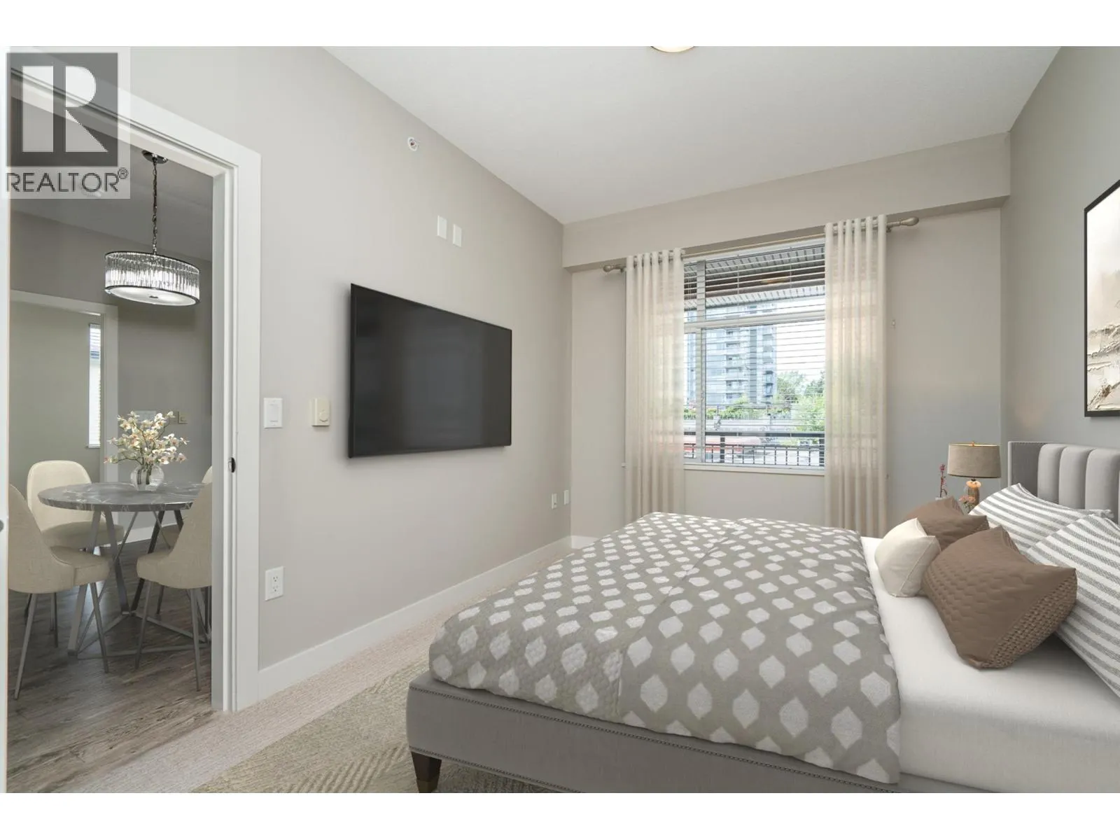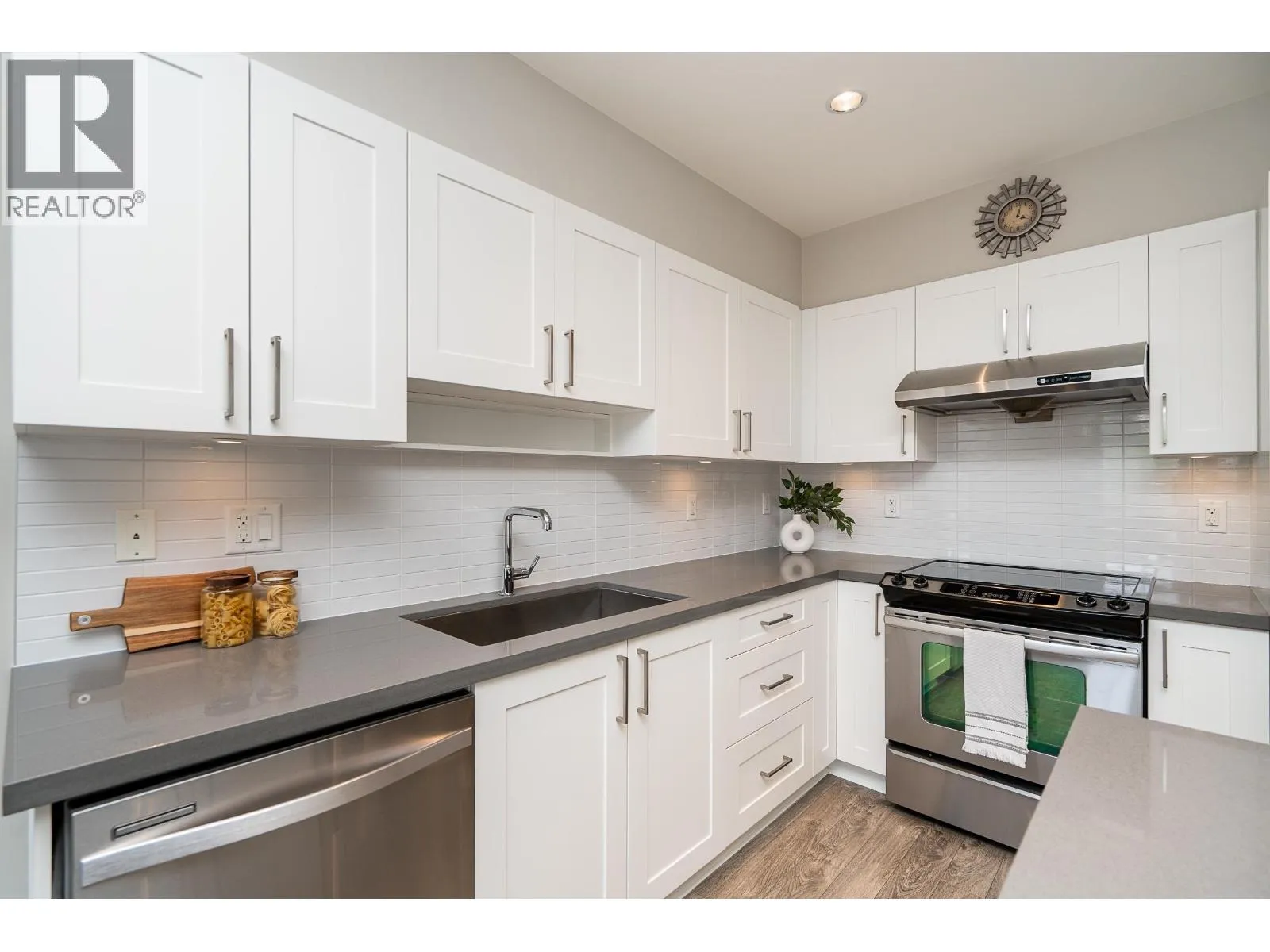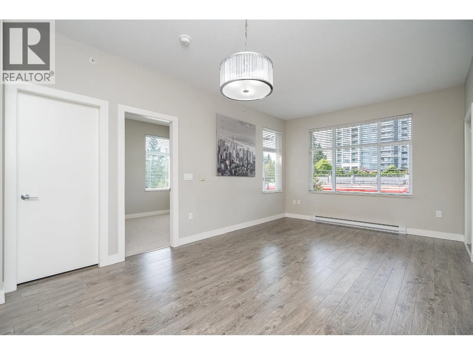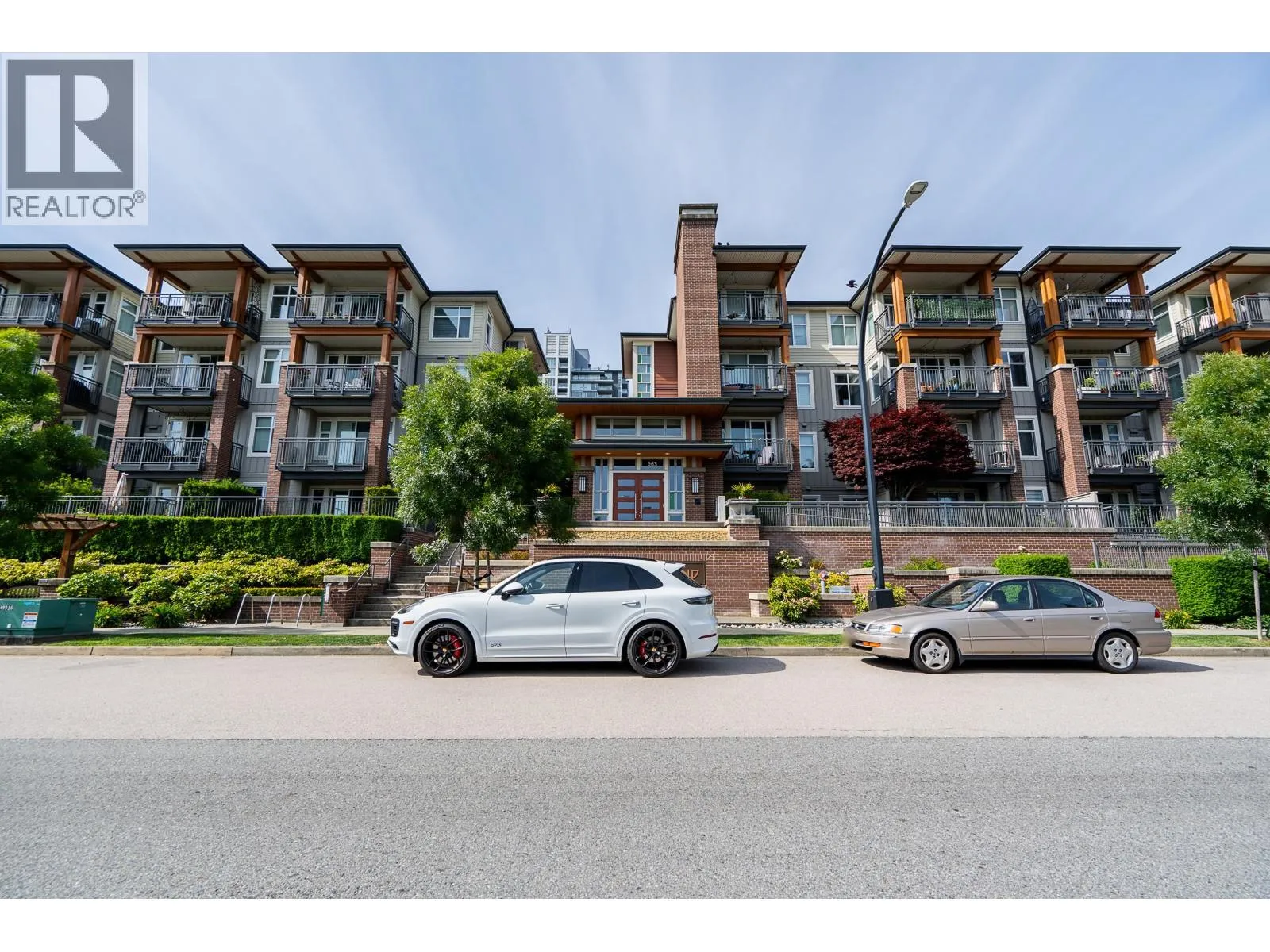 Welcome to Charland by Ledingham McAllister-a modern, well-built home in a prime location! This end unit offers 2 beds, a den, and 2 baths with 878 square ft of functional living space. The open layout has a spacious kitchen w/pot lights, an island, quartz counters, shaker style cabinets, and S/S appliances. The living and dining flow seamlessly to a covered balcony. The primary is generous with a walk thru closet and ensuite. The 2nd bed has a cheater ensuite for added convenience. Den off the entry is ideal for a home office. Highlights include 9 ft ceilings, laminate flooring, brand new carpet, 2 parking, and storage locker. EV charging in visitor parking. Centrally located with access to highways and skytrain, walking distance to Blue Mountain Park, Austin Heights shops and restaurants. (id:27476)