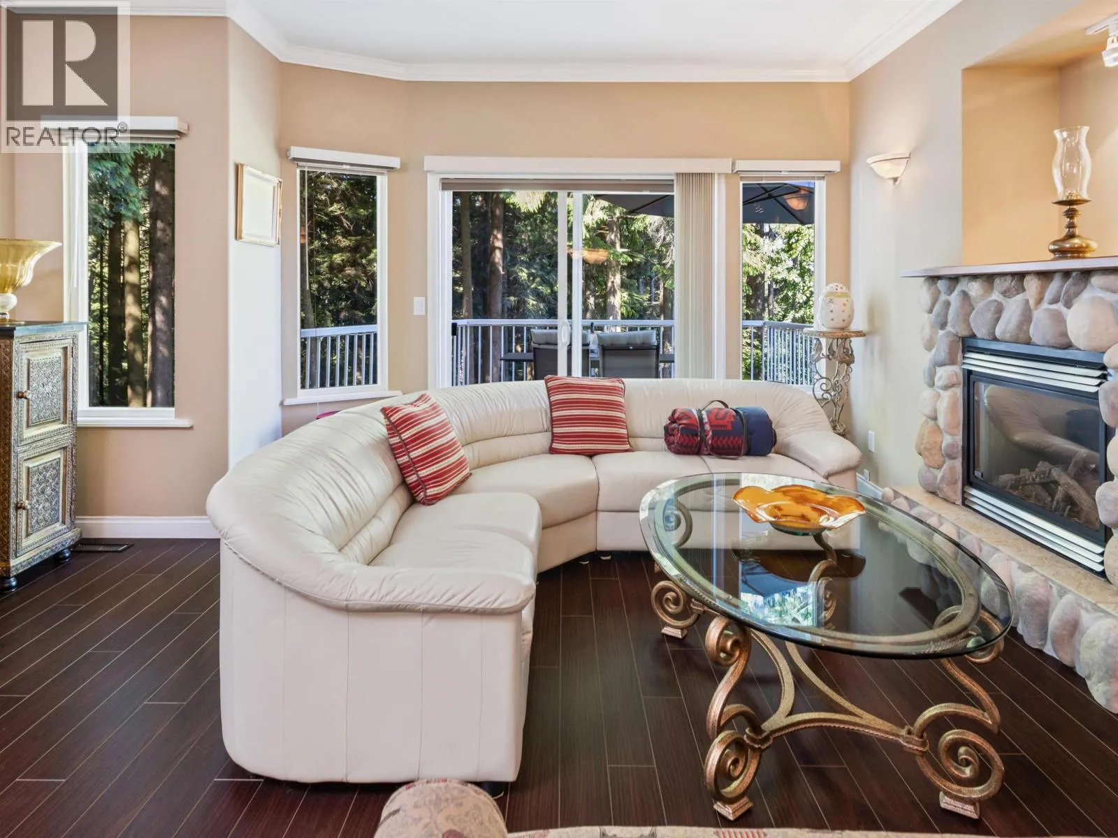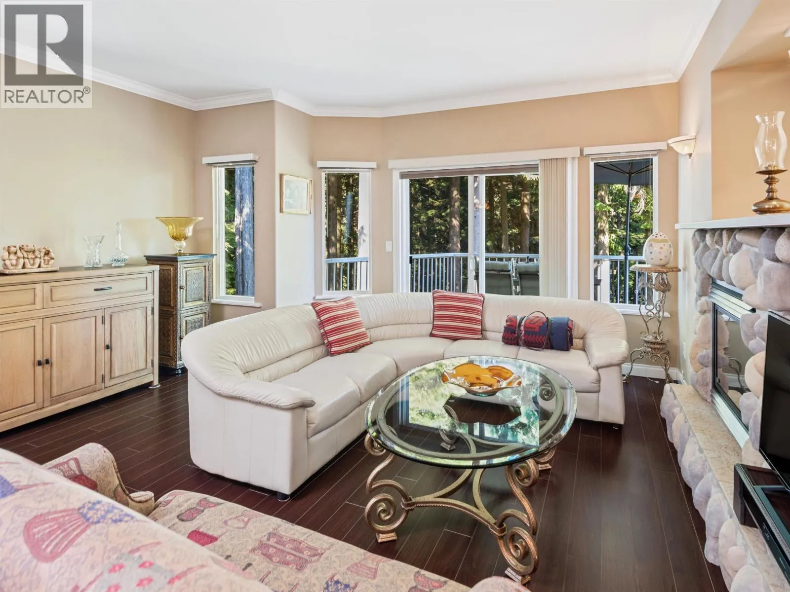 A Hidden Plateau Gem! IMMACULATE half-duplex residence with NO MAINT FEES. This elegant 4 bdrm home, features a media rm or optional 5th bdrm, invites relaxation by the River Rock fireplace amidst a serene greenbelt backdrop. Entertain on the sundeck with a gas BBQ, boasting breathtaking MOUNTAIN & CITY VIEWS. The maple kit with black granite cntrtops is a culinary haven. Slate flooring & laminate HW flrs thruout. Elevated ceilings, lavish ensuite, & crown moldings enhance the ambiance. Upstairs, 3 bdrm & custom media rm offer a perfect retreat. Lower level presents a charming SUITE with FULL kit & private entrance to the backyard overlooking tranquil greenbelt. Enjoy quiet living, minimal upkeep & ample pkg, incl. a double-closed garage, adjacent to North Hoy Creek Nature Park. Exceptional ONE OWNER property offered for sale by its original owner- a sanctuary embodying peace. Don't miss the opportunity to own an amazing home next to Westwood Plateau Golf & Country Club! ***1ST OPEN SAT JAN 17 -- 1:30-4:30PM (id:27476)
