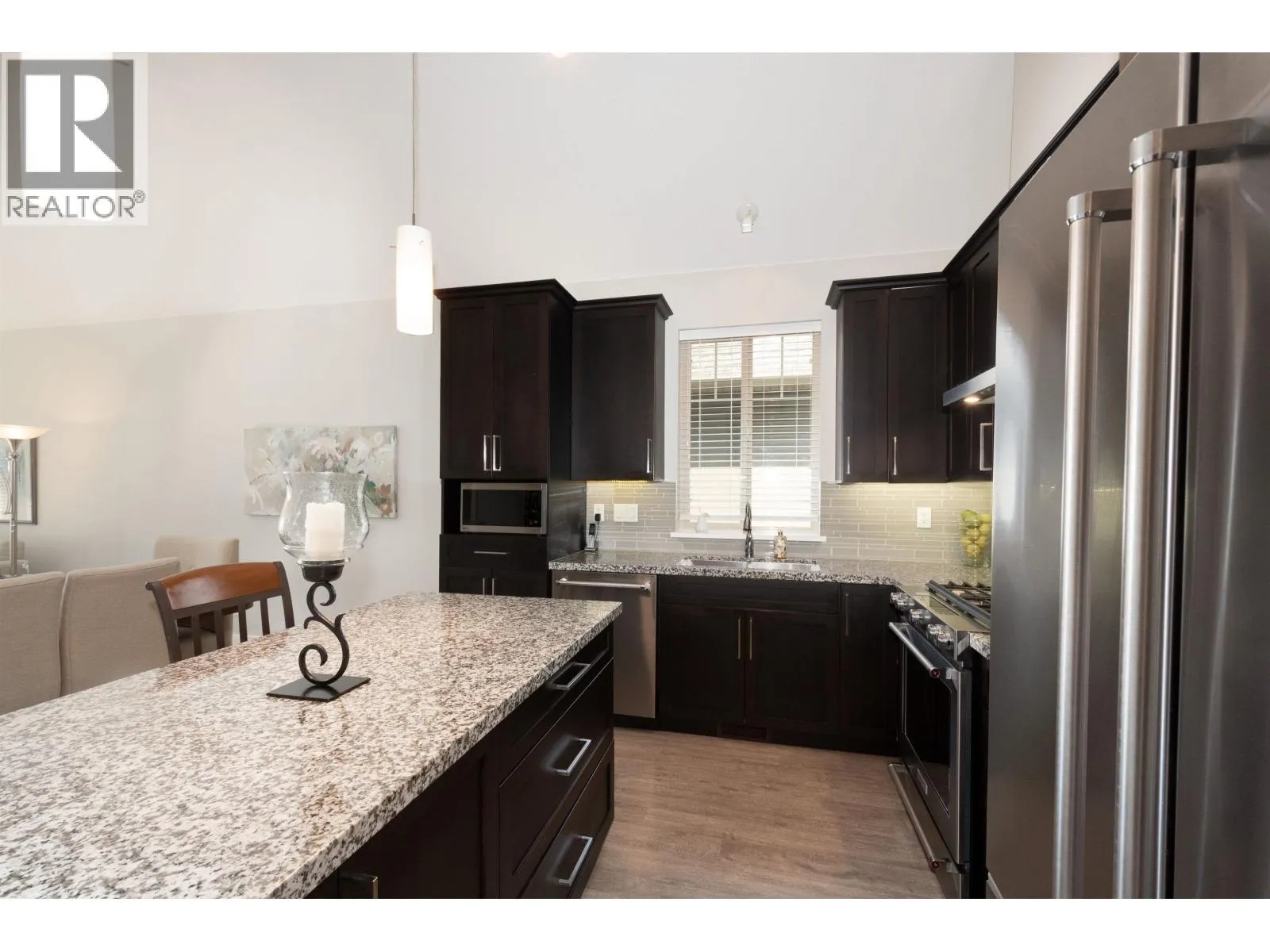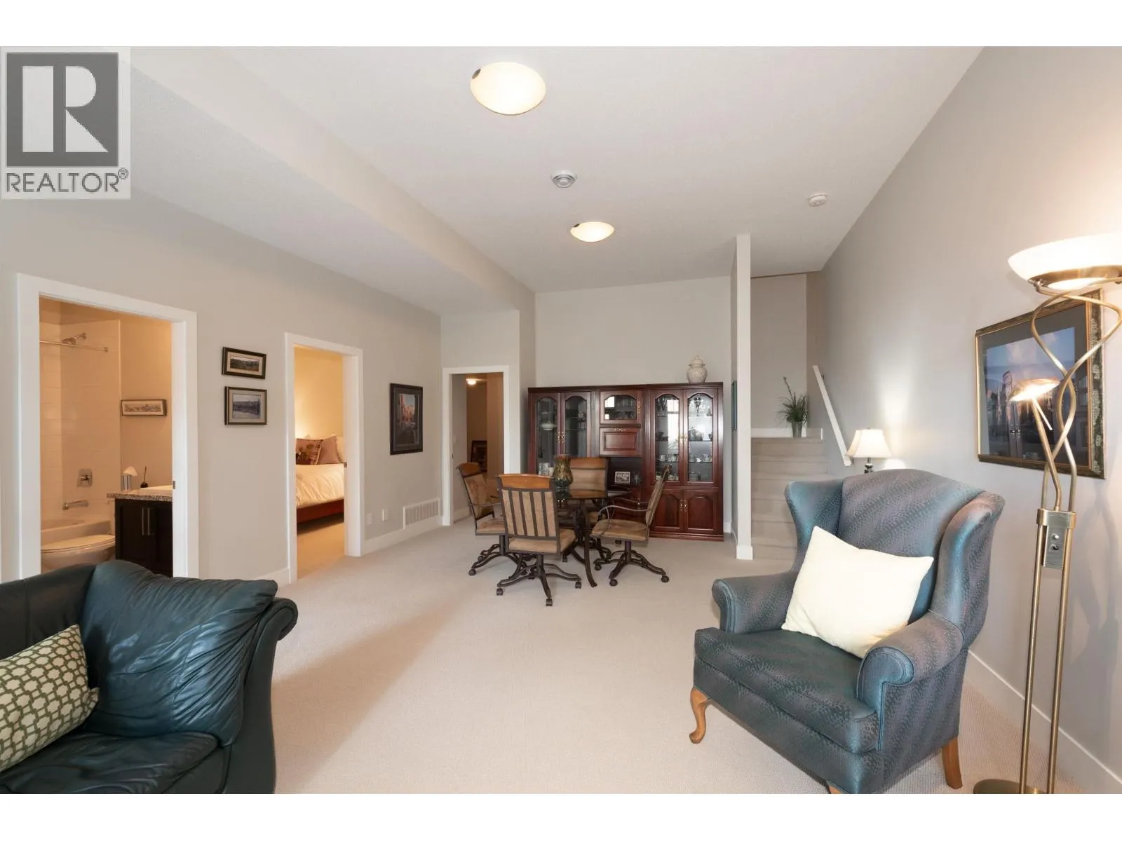 Level-entry duplex-style home with breathtaking, unobstructed views and surrounding greenbelt. Enjoy true main-level living with the primary bedroom, laundry, kitchen, and living areas all on one floor. Vaulted ceilings and large windows fill the open-concept layout with natural light and highlight the stunning south-facing outlook. The Primary Bedroom includes deck access and a spacious ensuite. Downstairs offers two additional bedrooms, a large rec room, family room, storage, and a walk-out fenced yard. Two-car garage, with parking for two more cars, A/C, and a serene setting complete this exceptional home. (id:27476)