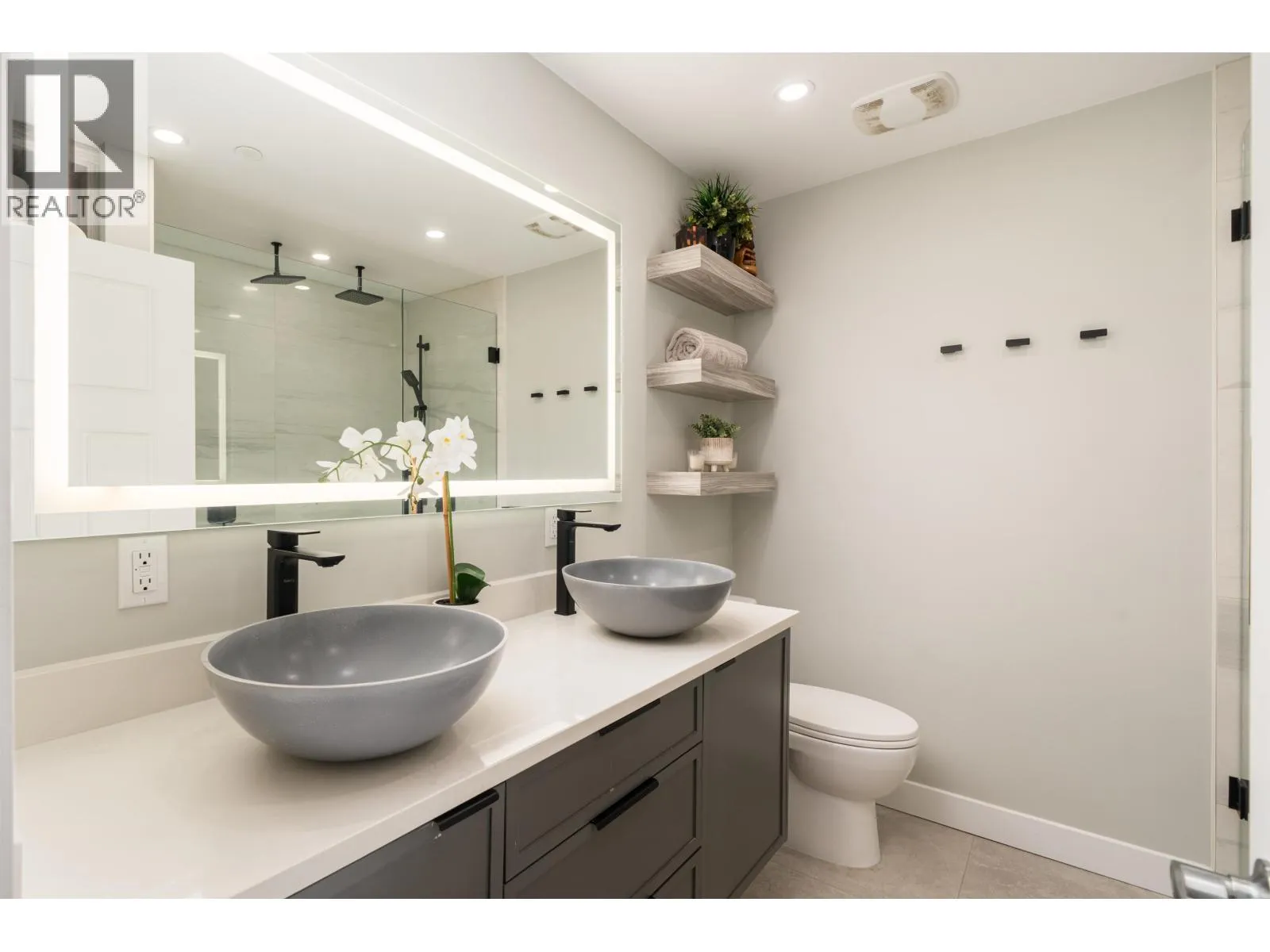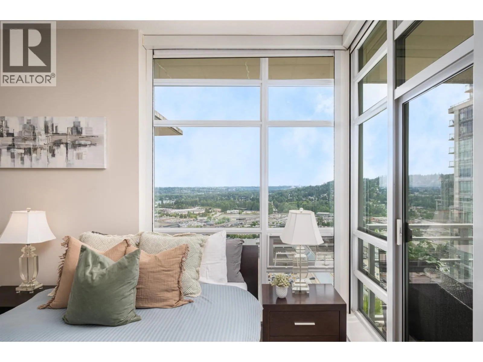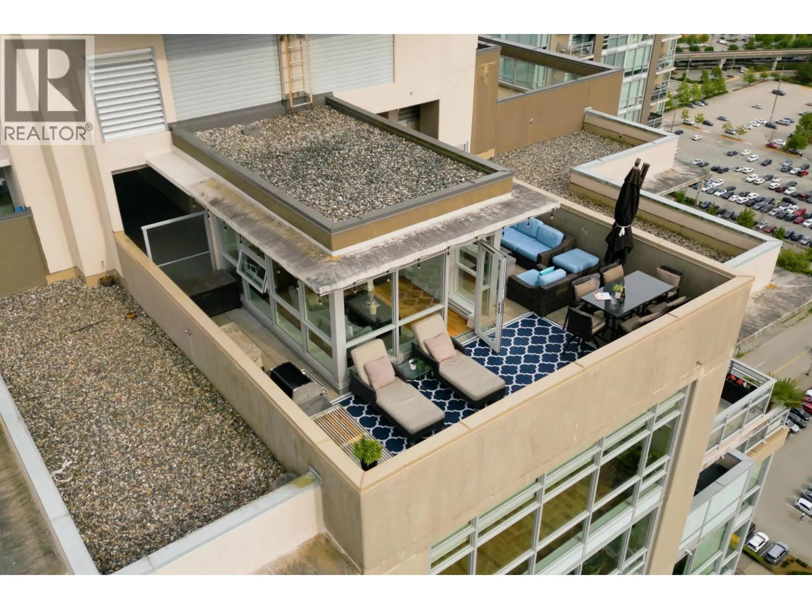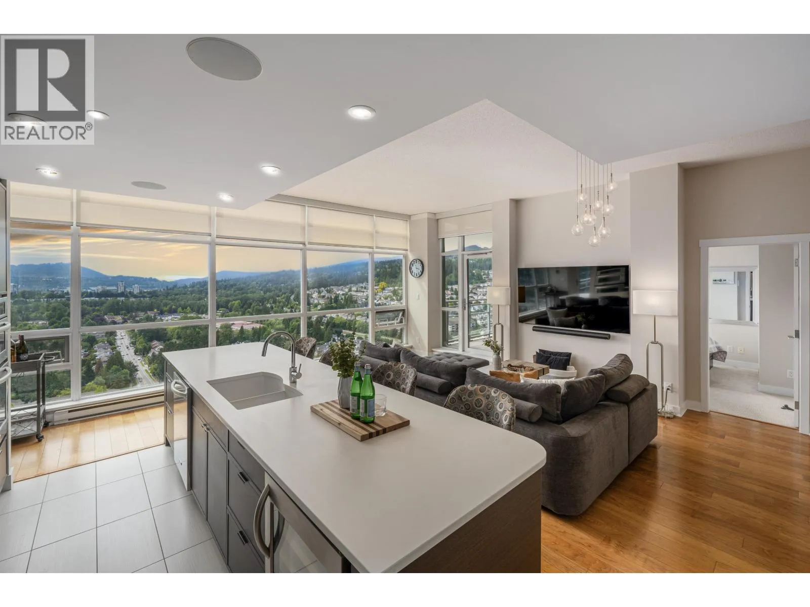 Elevate your lifestyle in this signature two-storey penthouse soaring above the heart of Coquitlam. Walls of glass showcase cinematic views of Westwood Plateau, Burrard Inlet, and the city skyline, while rich hardwood and refined designer finishes create a striking, modern ambiance. Entertain at the dramatic 12-ft kitchen island with wine fridge, unwind in the renovated spa-inspired ensuite, and enjoy smart luxury with Sonos, powered blinds, and integrated lighting. Bedrooms are privately separated with their own patios, plus a spectacular 484 sq.ft. rooftop terrace in the sky. Steps to SkyTrain, Lafarge Lake, Coquitlam Centre, shops and dining. In-suite laundry, storage locker, two parking; pets and rentals allowed. Showings by Appointment only. (id:27476)