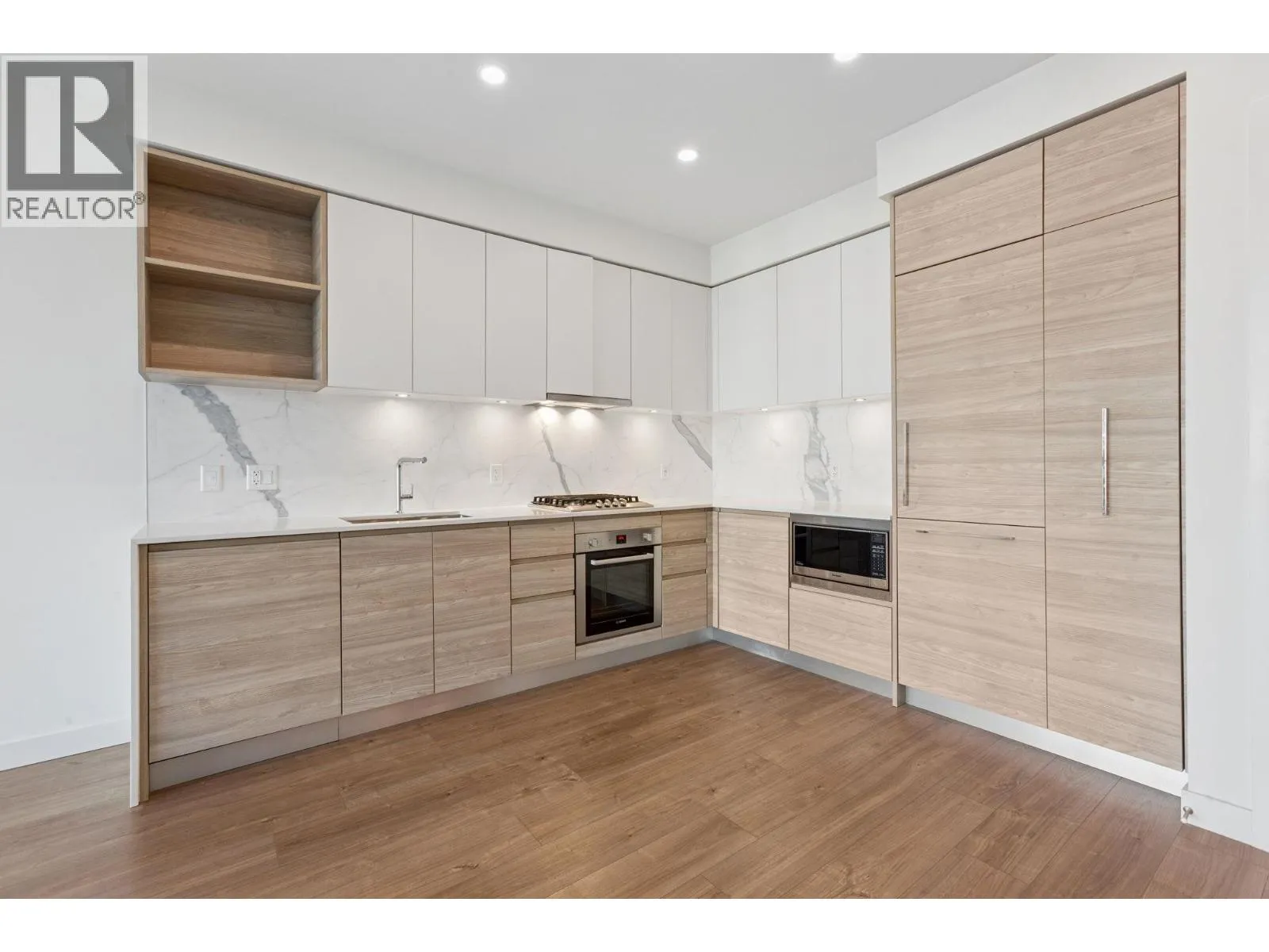 Welcome to Wynwood Green by Anthem, perfectly situated beside the Vancouver Golf Course. Bright & spacious 1 BED offers lovely views of Brookmere Park, mountains & city sunsets from your floor to ceiling windows & LARGE covered balcony. Open-concept layout feats wide-plank laminate, quartz countertops, almost 9 ft ceilings & AC. Sleek gourmet kitchen w/integrated Bosch appls, gas cooking, pull out pantry & smart storage will delight the inner chef. Spa inspired bath provides great storage & a shower niche in your soaker tub. Enjoy 4500 SF of amenities w/landscaped courtyard, play areas, club house, bbq & fireside lounge, gym, sauna, dog wash, workshop, guest suite & 24/7 concierge. 1 parking & 1 locker. Quiet location walking distance to City of Lougheed, PriceSmart, Skytrain & more. Some photos virtually staged (id:27476)