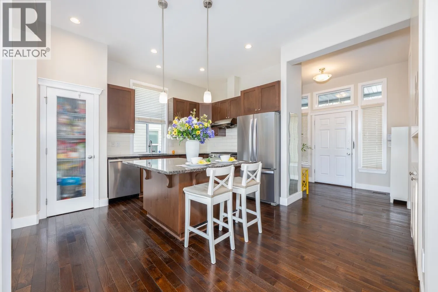 Beautiful 3 level Foxridge Home in Burke Mountain. This Bright and open floor plan offers 3BR +2BA upstairs . Large foyer off the entrance and 1 spacious den ( used as a BR) in the main. The gourmet kitchen features built in pantry, large island, granite countertops, under mount sink and S/S appliances. Upstair ,the master BR is filled with natural light from windows and doors showcasing a spectacular Mt view .luxury ensuite and walk in closet, 2 more large BR, full BA and laundry rm with S/S washer & dryer. the fully finished basement offers 2 BR+1BA rental suite walking out to the south facing backyard. Walking distance to the upcoming secondary school and community center. updates : AC (2021) upstairs hardwood floors (2024) basement washer and dryer (2025) .basement kitchen :2018 (id:27476)
