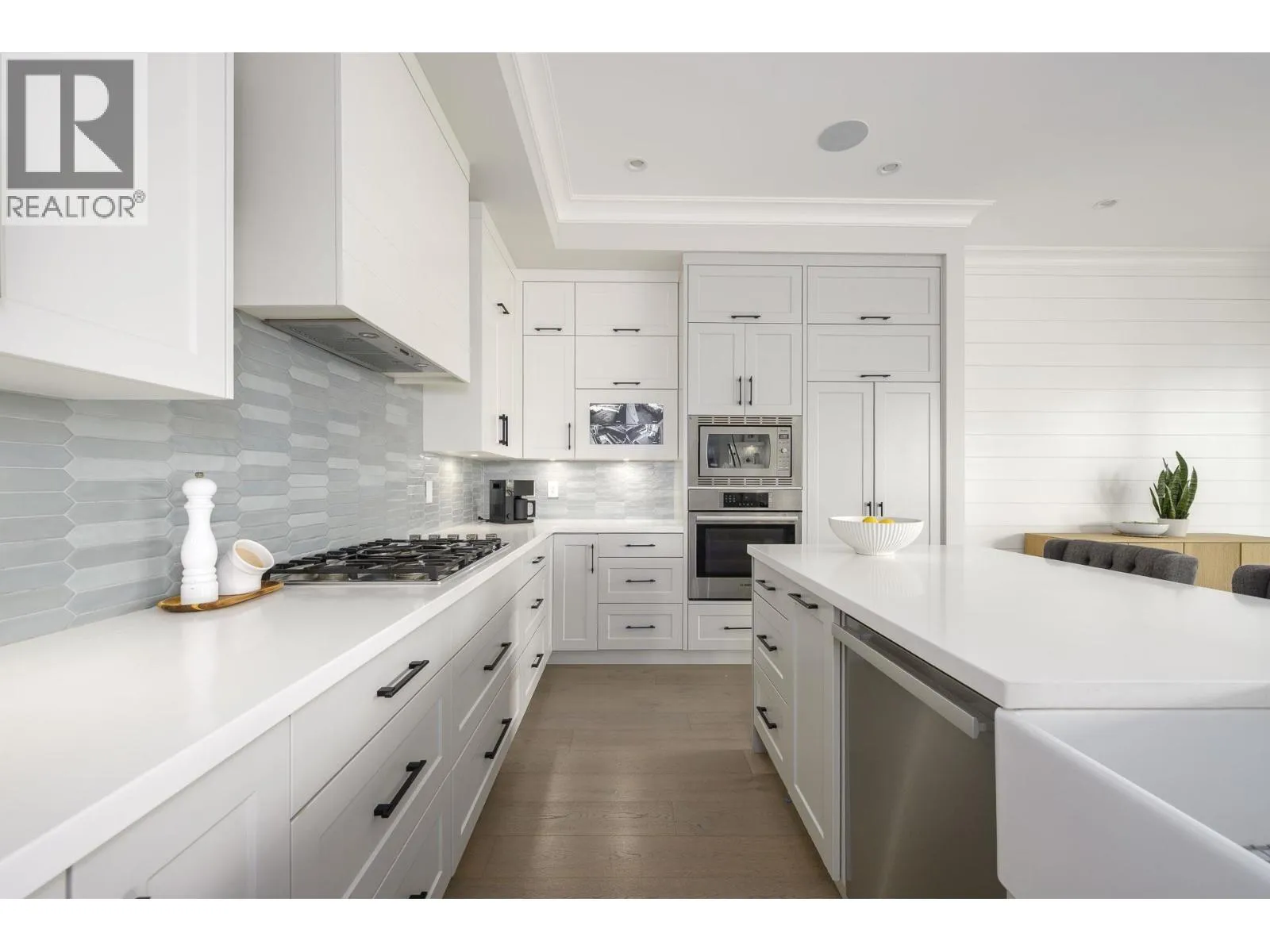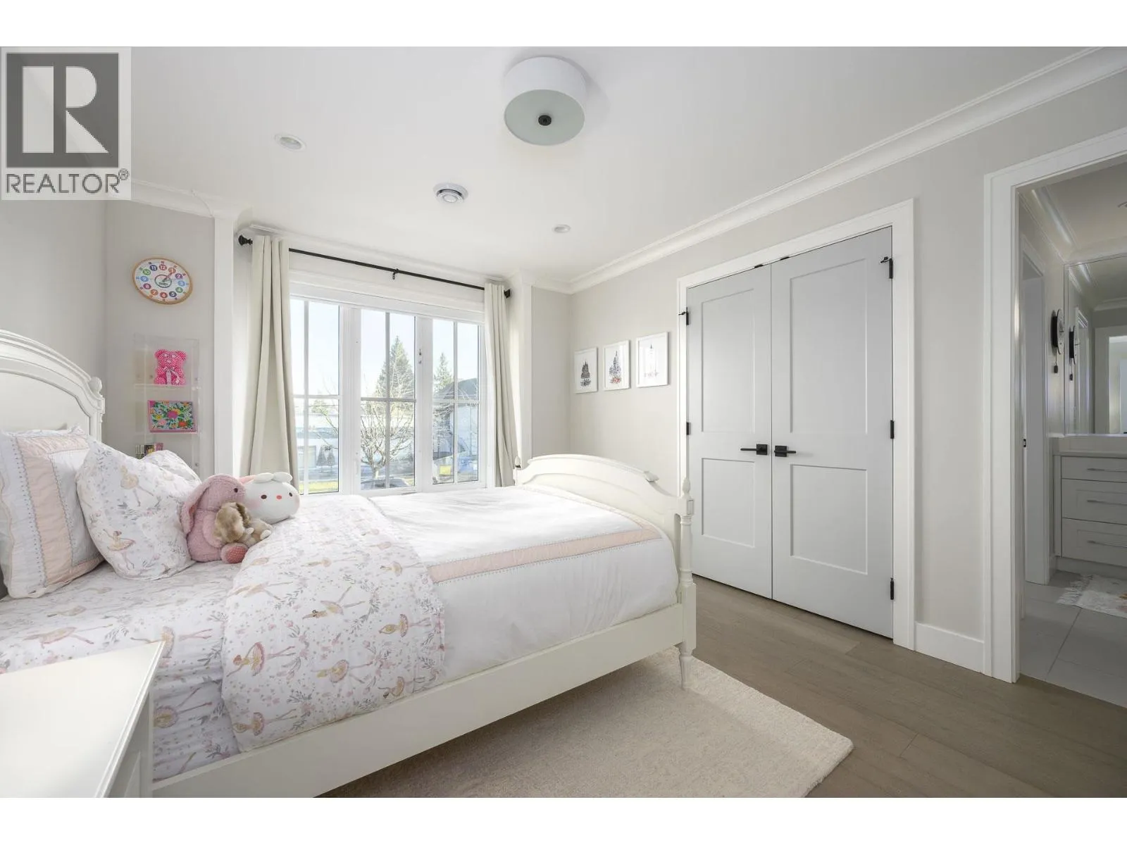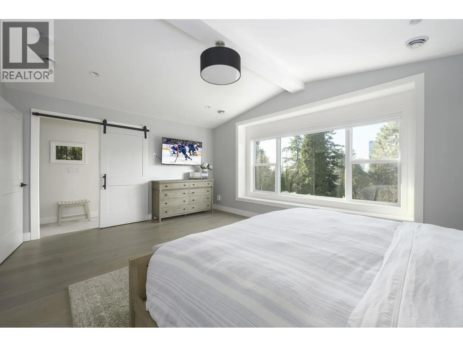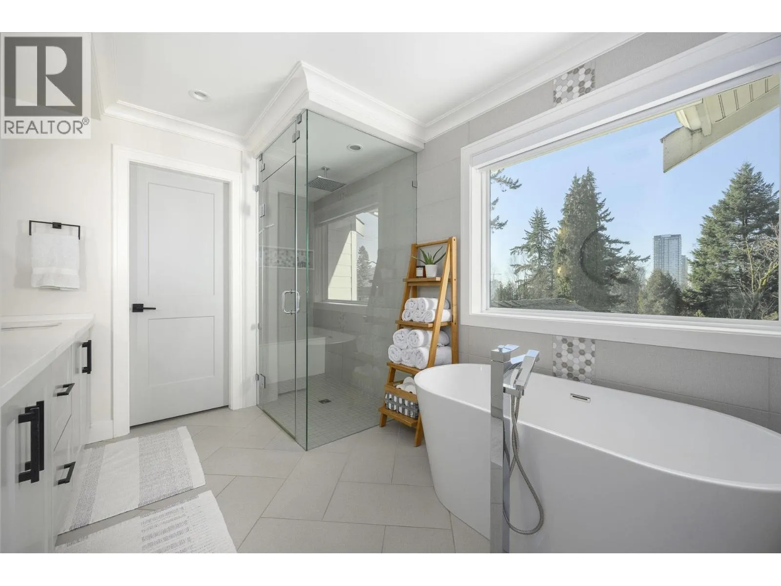 Welcome home to this exceptional 6 bed/6 bath modern farmhouse on a flat 40' lot in West Coquitlam. Thoughtfully designed w/bespoke craftsmanship & premium finishes throughout, this home features a bright, open main floor with over-height ceilings, gas fireplace, chef's kitchen with Bosch + Miele + Fisher & Paykel appliances and covered outdoor living with AZEK deck. Upstairs offers 4 bedrooms, incl. a stunning primary suite with walk-in closet and spa-inspired luxurious ensuite, plus 3 more bedrooms each with ensuite access. Benefit from a 2 bed legal suite w/option for additional nanny or studio suite. Upgrades: A/C, full hardwood flooring, and premium polyaspartic-coated garage with built-ins. Across from school and parks & walk to Burquitlam SkyTrain, shops, and YMCA pool. (id:27476)