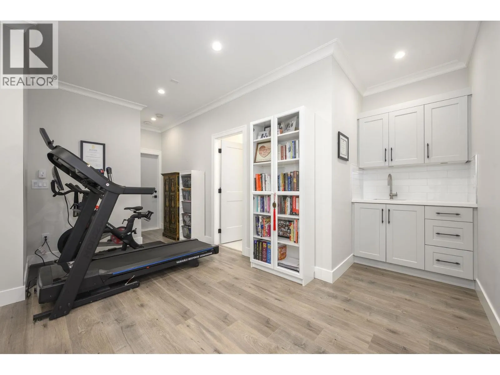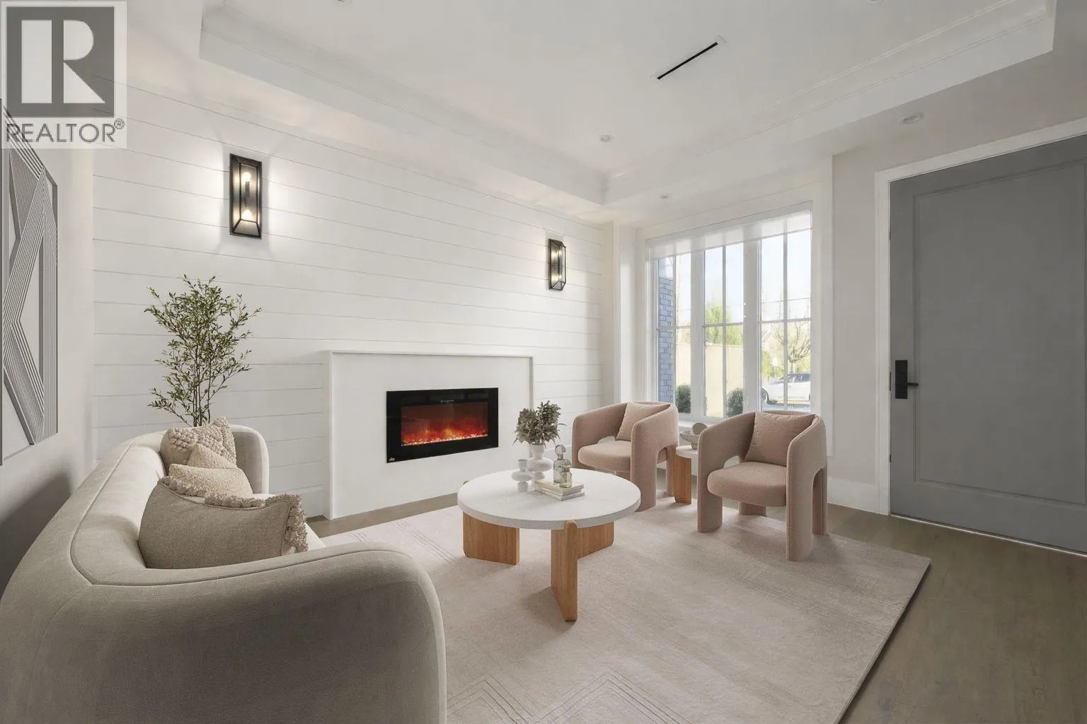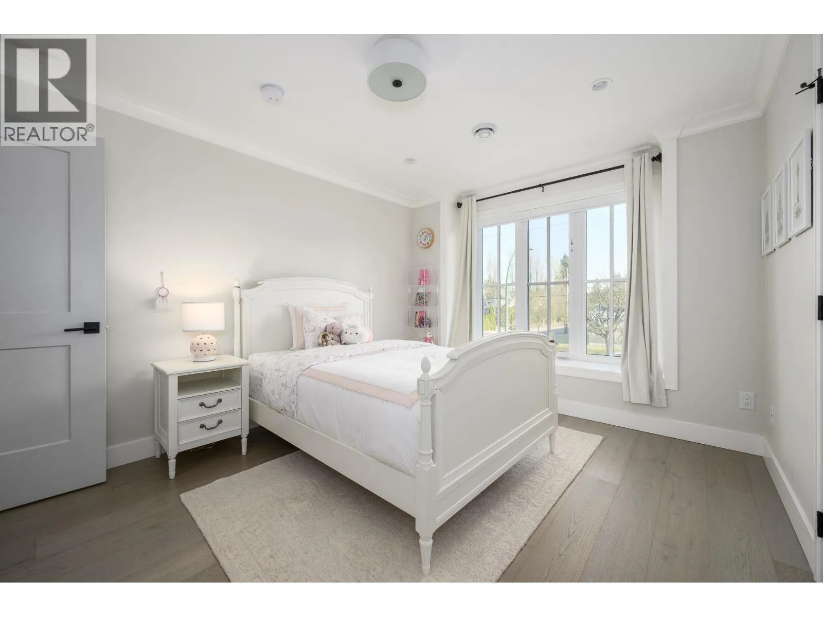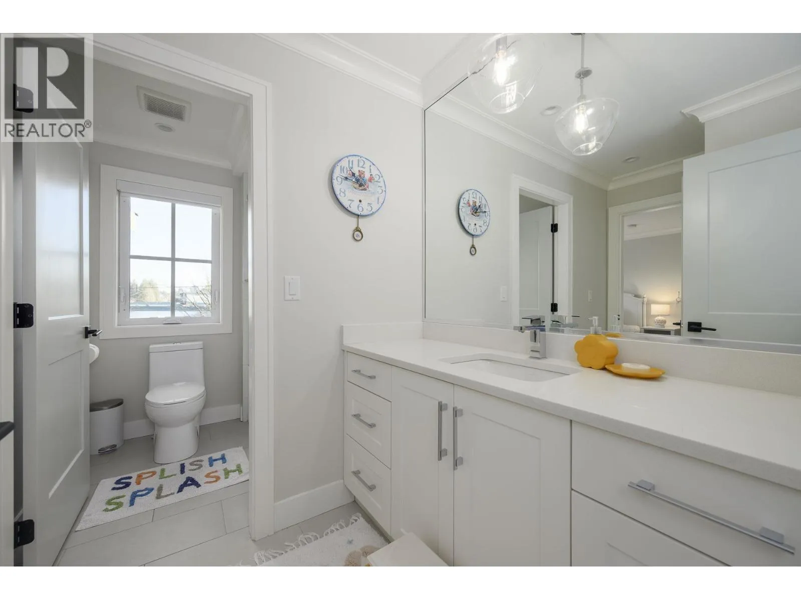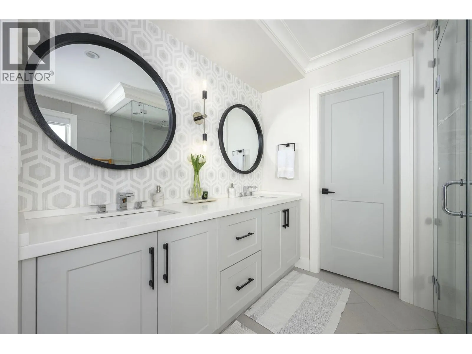 Welcome home to this exceptional 6 bed/6 bath modern farmhouse on a flat 40' lot in West Coquitlam. Thoughtfully designed w/bespoke craftsmanship & premium finishes throughout, this home features a bright, open main floor with over-height ceilings, gas fireplace, chef's kitchen with Bosch + Miele + Fisher & Paykel appliances and covered outdoor living with AZEK deck. Upstairs offers 4 bedrooms, incl. a stunning primary suite with walk-in closet and spa-inspired luxurious ensuite, plus 3 more bedrooms each with ensuite access. Benefit from a 2 bed legal suite w/option for additional nanny or studio suite. Upgrades: A/C, full hardwood flooring, and premium polyaspartic-coated garage with built-ins. Across from school and parks & walk to Burquitlam SkyTrain, shops, and YMCA pool. (id:27476)