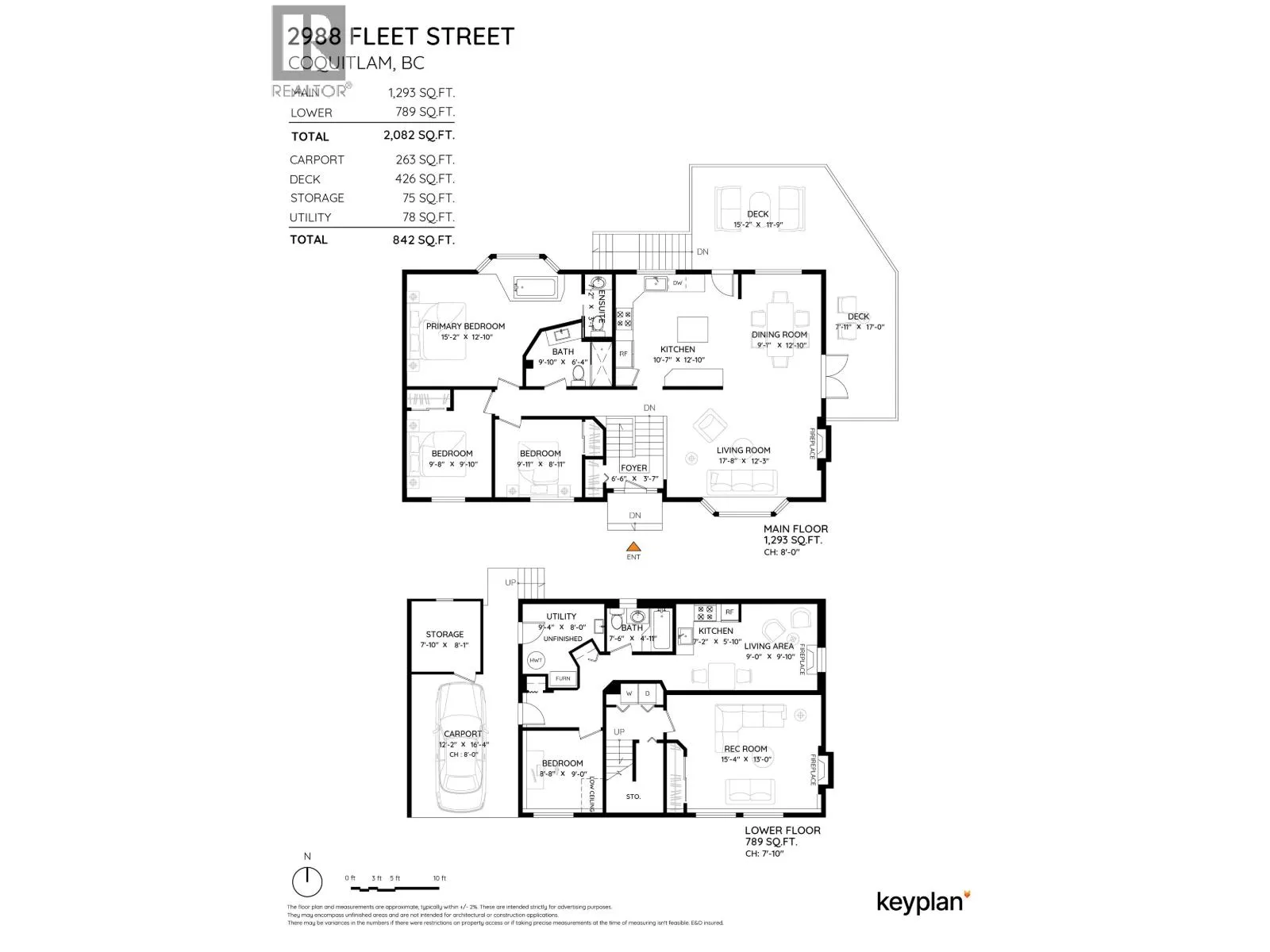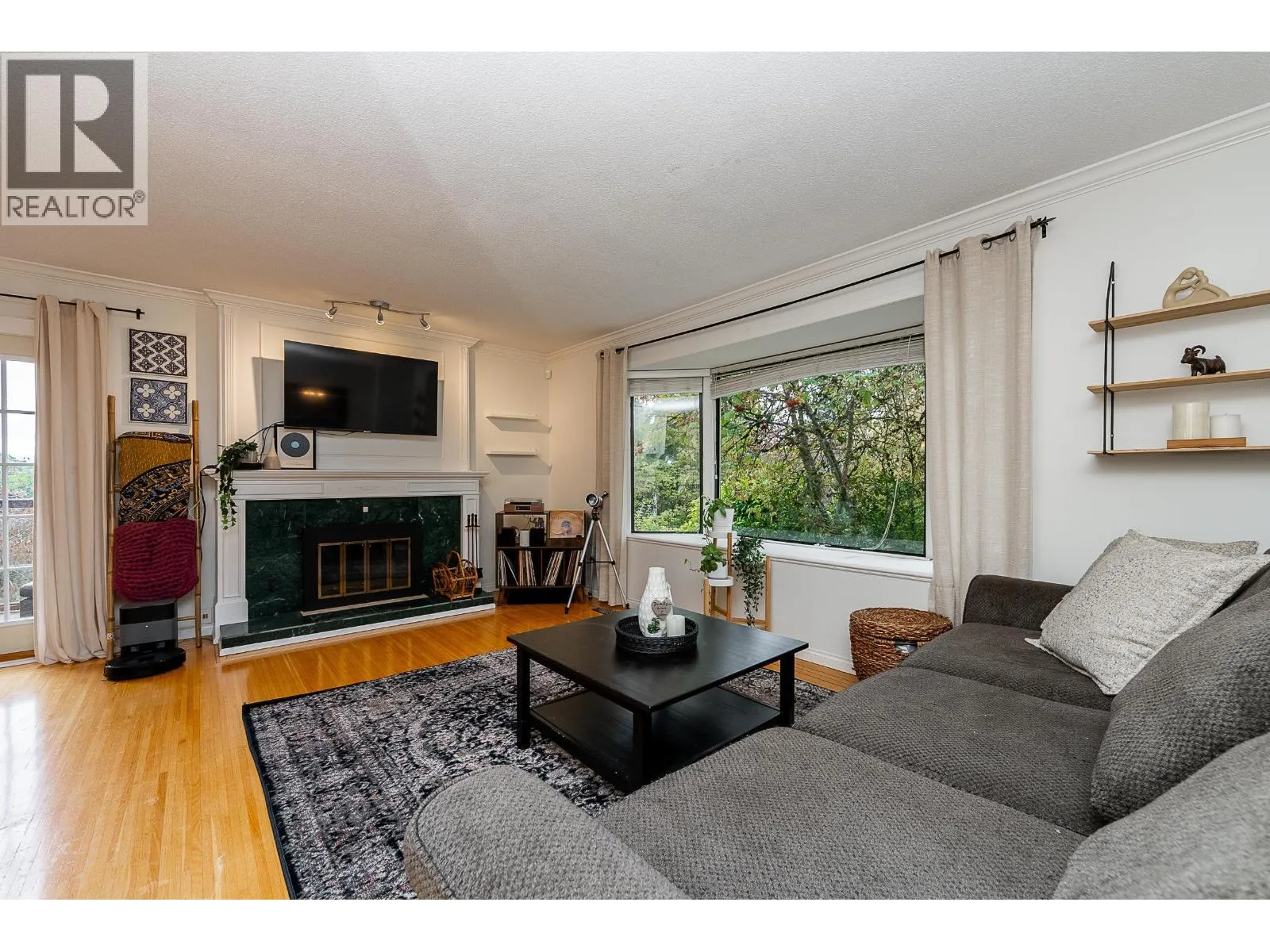 Family-friendly Ranch Park home on a 9,900 square ft corner lot on a quiet cul-de-sac! This 4 bed, 3 bath residence offers 2,082 square ft of updated living space. The main level features a spacious living room w/hardwood floors, a cozy fireplace, and a dining area w/French doors leading to a wrap-around balcony with views! The kitchen has granite countertops, updated stainless steel appliances including a gas cooktop, island, and abundant storage. The primary bed overlooks lush greenery and includes a 4-piece ensuite. The main bath is beautifully updated w/a frameless glass shower and heated floors. Downstairs is self-contained with a separate entrance, kitchen, rec room, and 4th bed. Updates include roof, A/C, furnace, and hot water tank. In a prime location with sought-after school catchment. (id:27476)