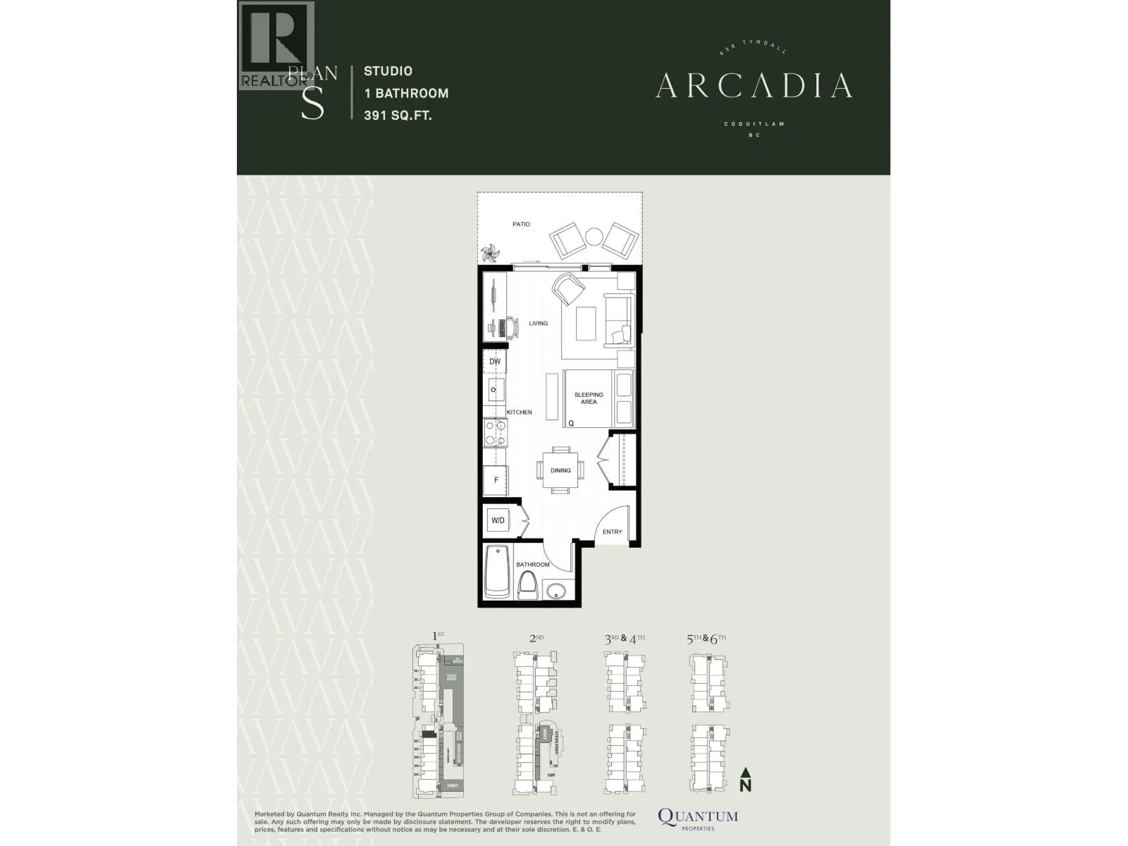 Welcome to Arcadia in the heart of Coquitlam West. This brand new studio offers a smart, efficient layout with 391 sq. ft. of contemporary living space & one secured parking stall included. Designed with 9´ ceilings, laminate flooring, plush bedroom carpeting, & central air conditioning. The modern kitchen features quartz countertops, two-tone cabinetry, stainless steel appliances, & soft-close drawers. Spa-inspired bathroom with porcelain tile, matte black fixtures, & an undermount sink. Enjoy amenities including a fitness centre, bike room, clubhouse, playground, & storage. Steps to parks, SkyTrain, shopping, & daily conveniences. Only 5% deposit required to secure a home. Presentation Centre: 4 - 555 Clarke Road, Coquitlam. Pets & rentals allowed-ideal for first-time buyers or investors. (id:27476)