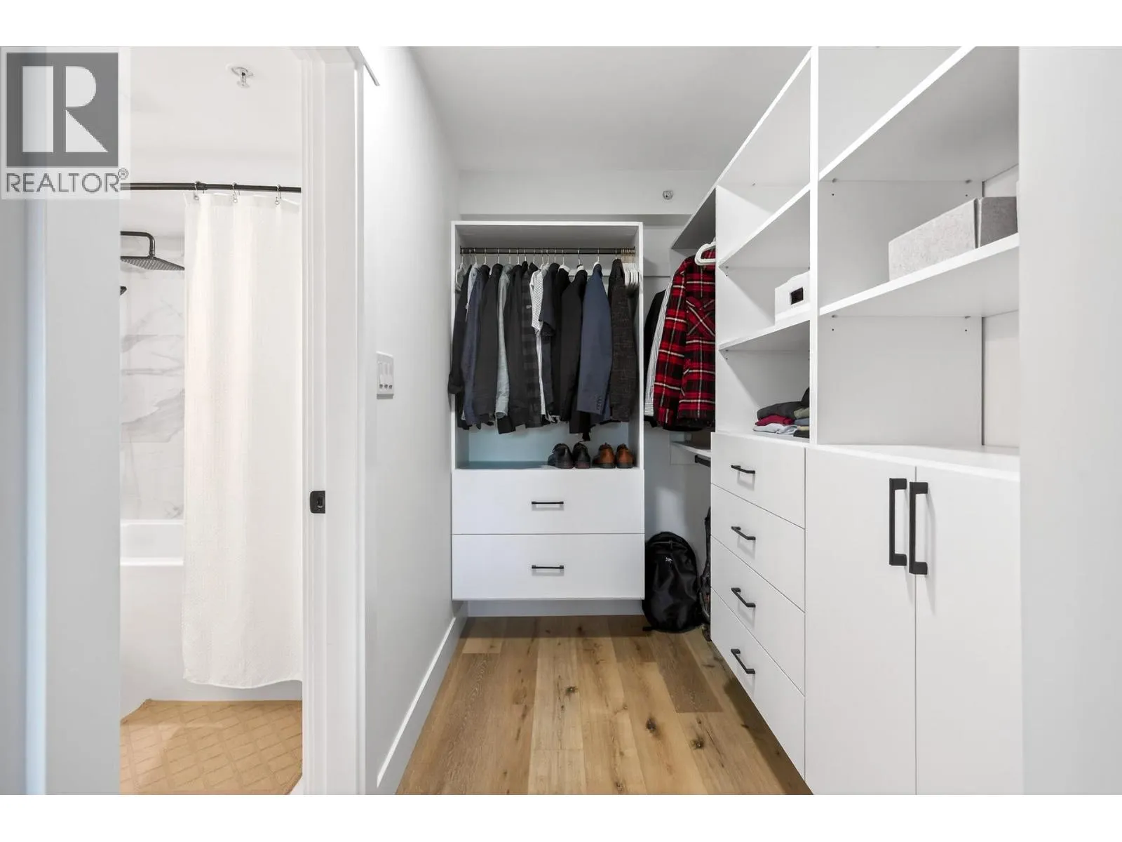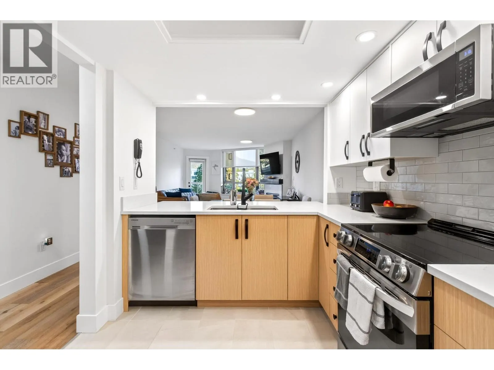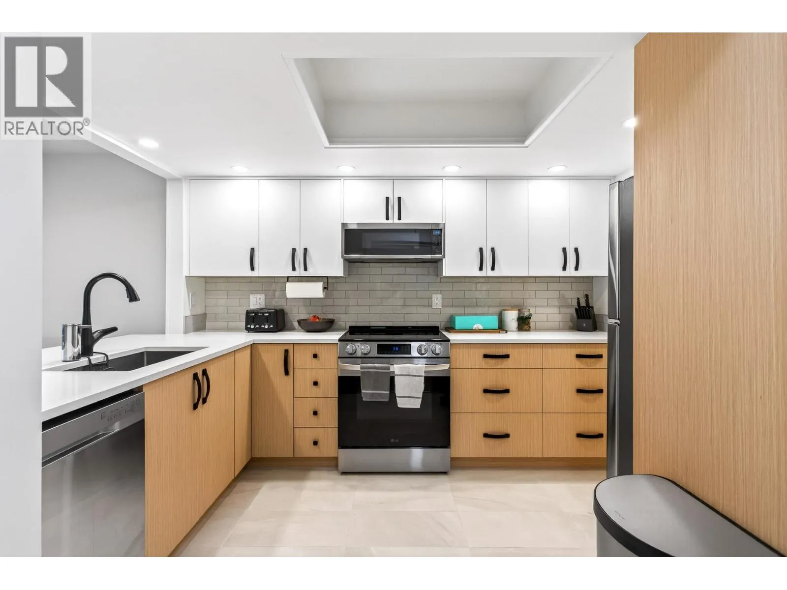 Welcome to Hudson by BOSA. Fully renovated 2 bed, 2 bath home featuring vinyl flooring, updated kitchen and bathrooms, custom built-in closets and roller blinds throughout with blackout blinds in both bedrooms. Thoughtful layout includes a separate laundry room with storage and patio access from both bedrooms. Well-maintained, fully re-piped building with indoor pool, sauna, gym and more. Includes 1 parking and 1 storage. Unbeatable location steps to Lafarge Lake, SkyTrain, Douglas College and Coquitlam Centre. A must see, call today! (id:27476)