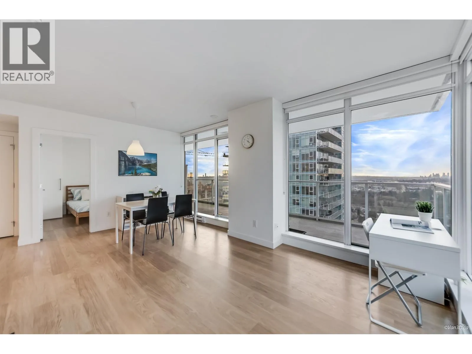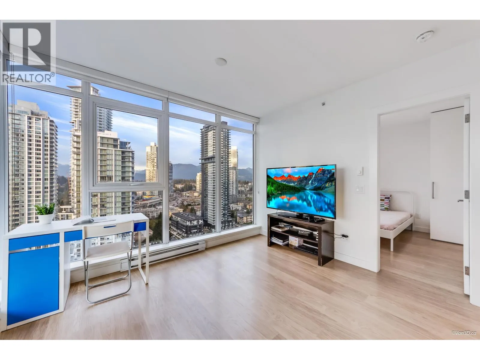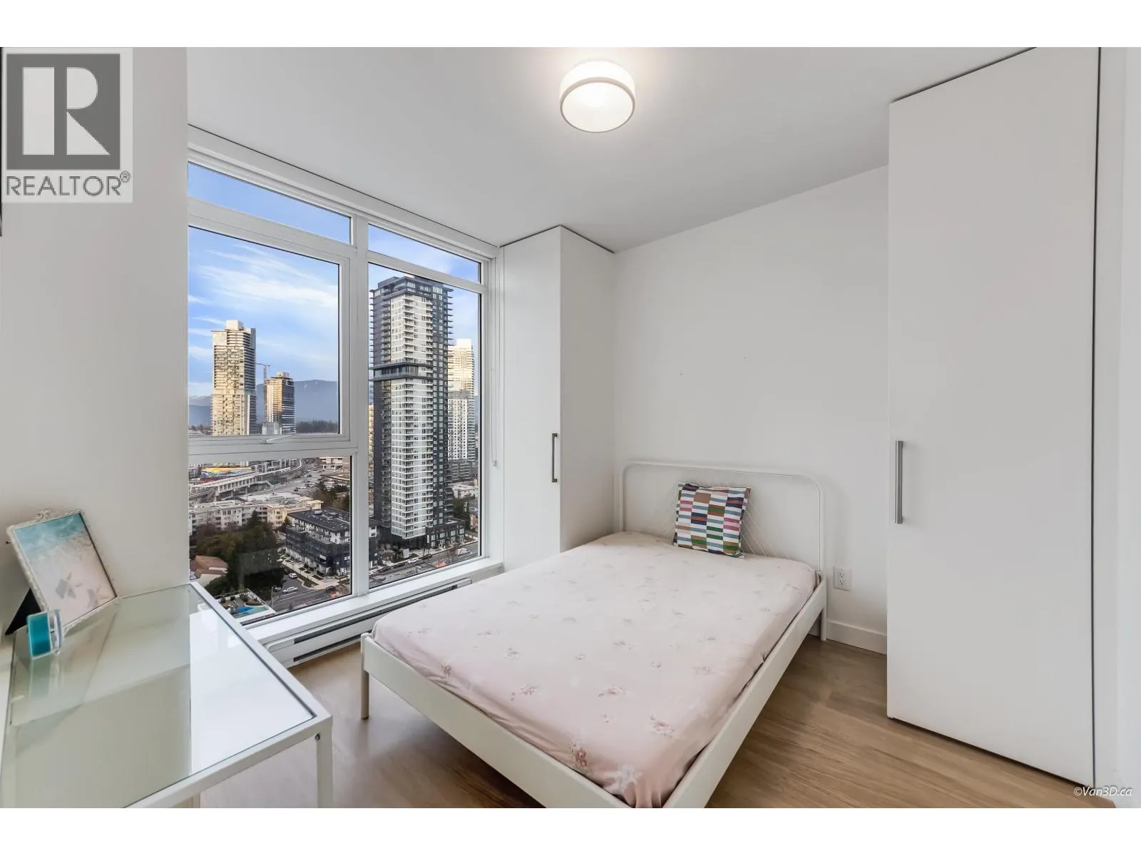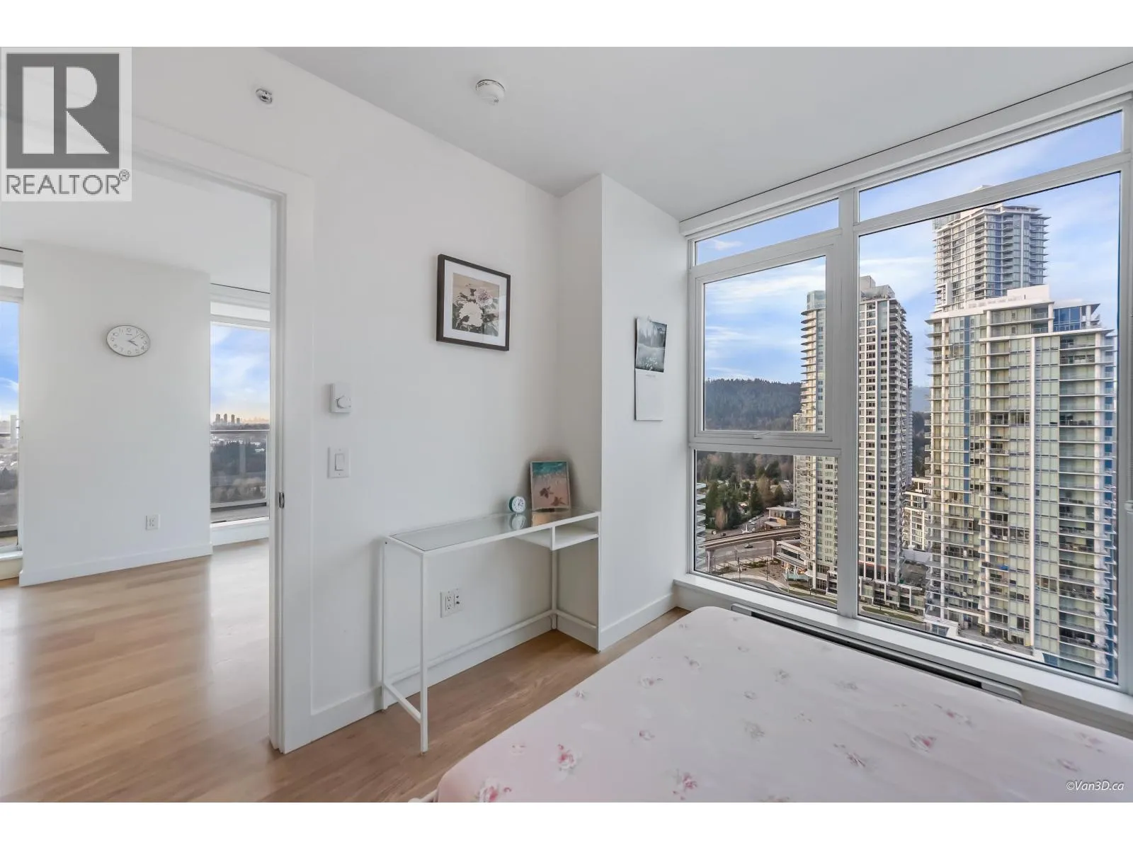 Excellent condition 2 bed 1 bath unit in sought-after Lougheed Heights by Bosa. This northwest corner unit features a contemporary design with an open-concept layout. Floor-to-ceiling windows fill the home with natural light. Located on the 23rd floor, the unit boasts a huge balcony with breathtaking city and mountain views. Modern kitchen is equipped with sleek cabinetry and KitchenAid appliances, complemented by laminate flooring throughout for easy maintenance. Residents can enjoy a resort style clubhouse with an outdoor pool, indoor sports court, exercise room, sauna, steam room and much more. Comes with 1 parking and 1 locker. Just a short walk to Burquitlam SkyTrain, with convenient access to shops, restaurants, Lougheed Mall, parks, and SFU. (id:27476)