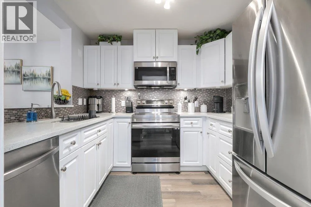 The JEFFERSON! This bright and inviting open-concept unit boasts plenty of great features. Top floor, beautifully renovated, 1 bedroom unit with high ceiling. Great neighborhood and great unit. Location close to city center and skytrain, walking trail located next to the complex. by appointment only. 1 parking 1 locker. Skylight at entrance of the unit. Strata has a GYM and enclosed bike room. (id:27476)