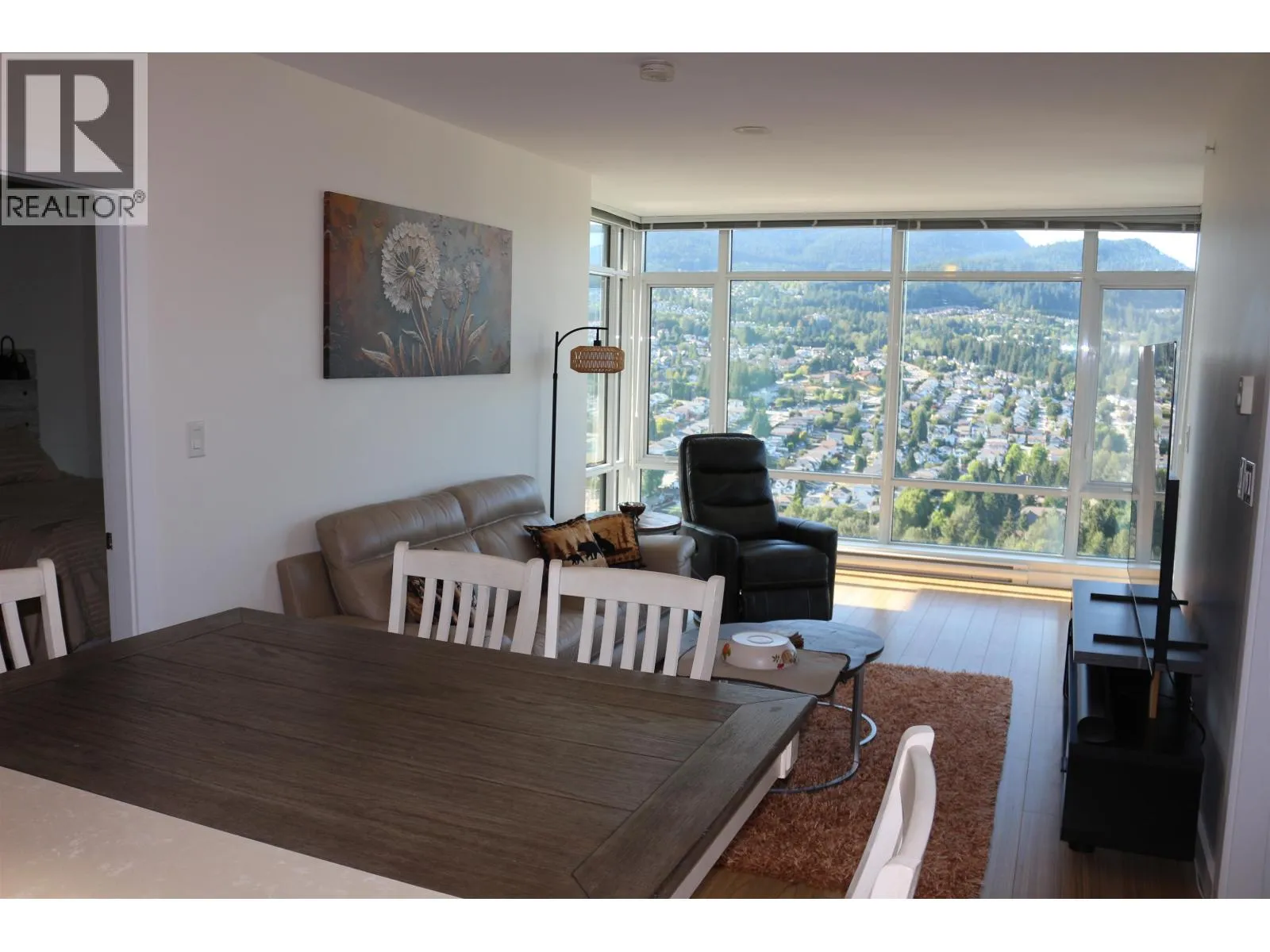 Amazing 41st floor views from this short=term rental. Experience resort-style living in this stunning furnished condo (Sub Penthouse), boasting unobstructed panoramic mountain views with glimpses of the ocean and Lafarge Lake. Two private 58 square ft balconies, perfect for relaxing or entertaining. o Luxury amenities: Concierge, Pool, Sauna/Jacuzzi, Fitness Center, Beautiful Outdoor Gardens, Sports Field, Playground, and more o Prime location: Directly across from Coquitlam Centre Mall, with Restaurants, Skytrain, Lafarge Lake and all essentials nearby in a very walkable neighborhood o Fully equipped with linens, dishes, kitchen appliances, in-suite Laundry, Wi-Fi, TV with wireless sound system, Natural Gas BBQ, portable A/C, + more o Master bedroom with ensuite (id:27476)