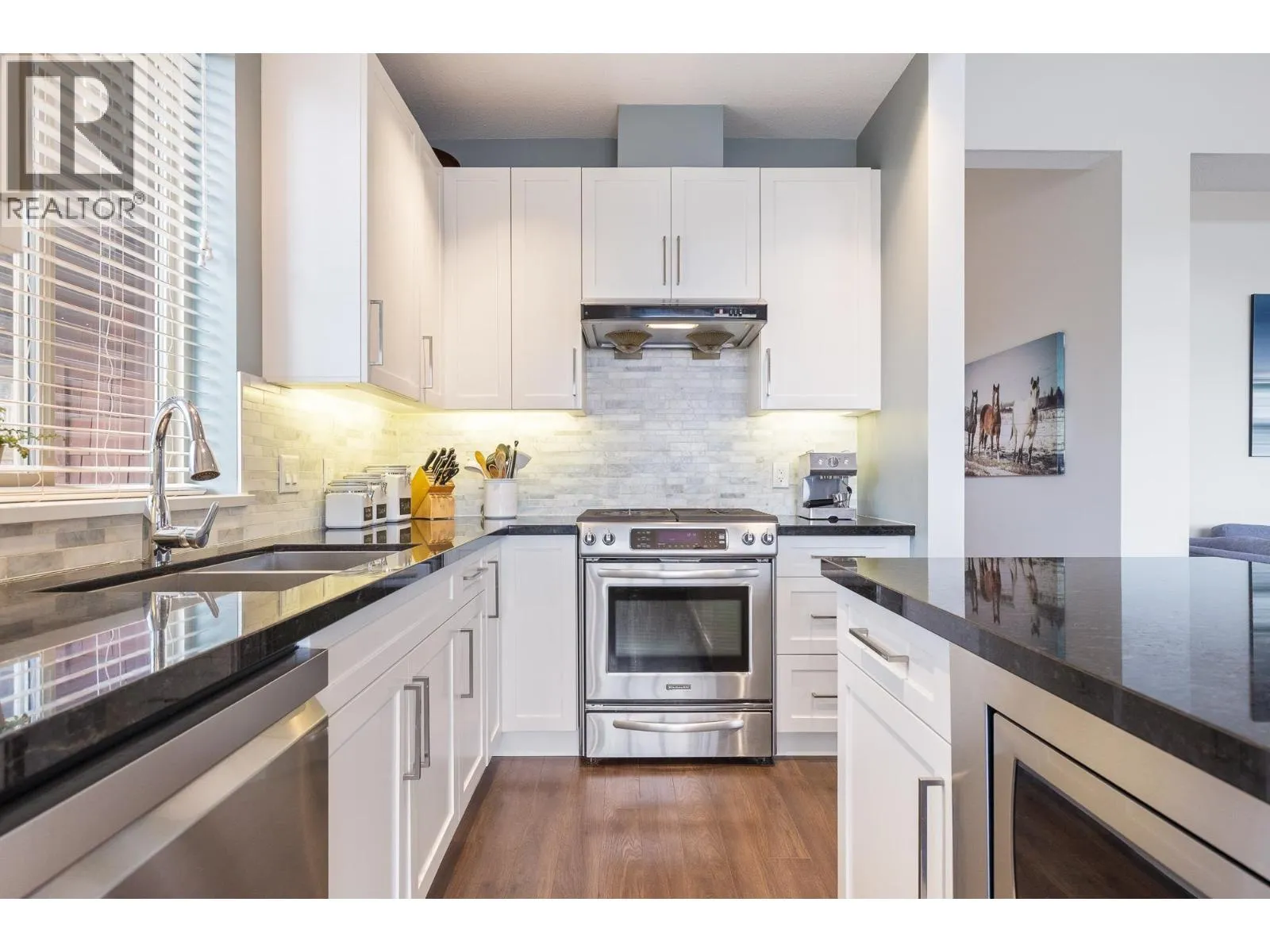 Welcome to Secret Ridge on beautiful Burke Mountain! This 4-bed, 3-bath, 2,299 square ft townhome offers rare rancher-style living with the primary bedroom and laundry on the main floor-perfect for downsizers. Enjoy air conditioning, parking for 4 cars, upgraded granite countertops throughout, a bright open-concept main floor, and a lovely south-facing outlook that fills the space with natural light. Upstairs you'll find three spacious bedrooms, while the fully renovated basement features over-height ceilings, a fantastic rec room, full bathroom, and an additional bedroom-ideal for guests or extended family. Located in a coveted community known for its tranquility and natural beauty, this home combines comfort, style, and function in one thoughtfully designed package. (id:27476)