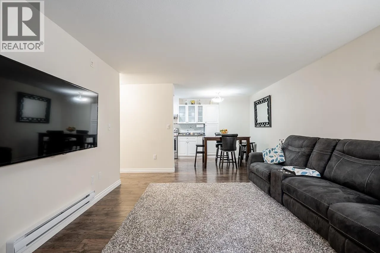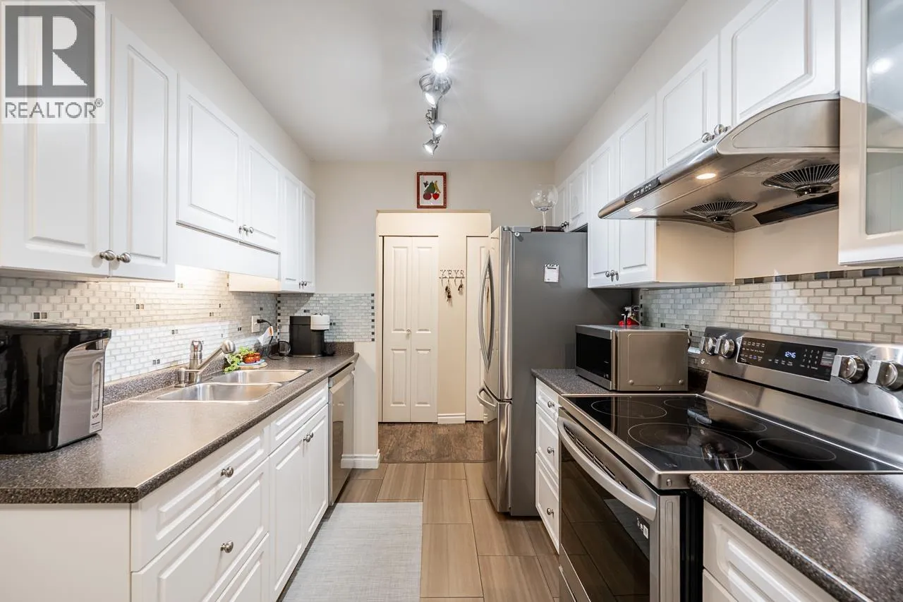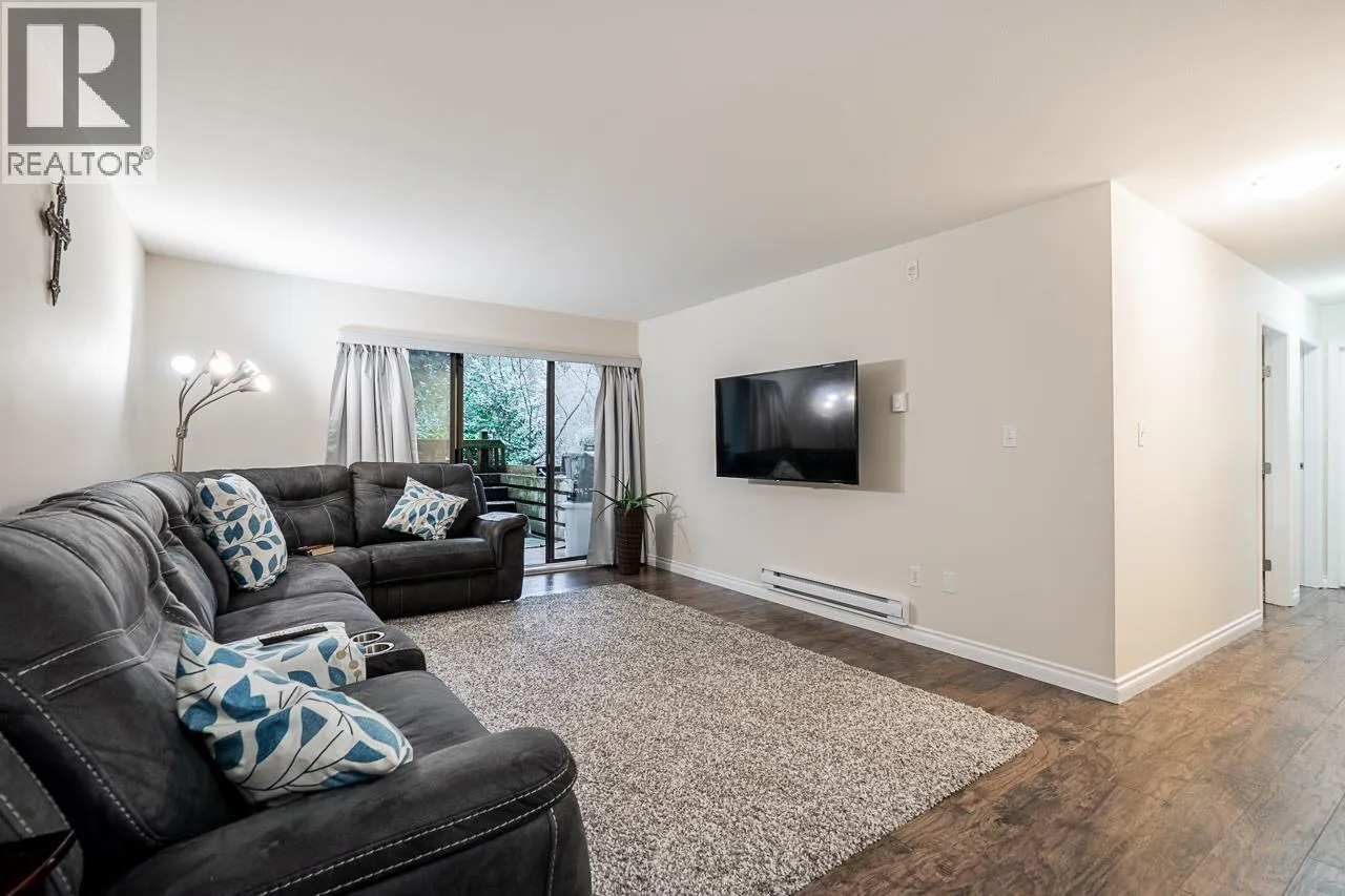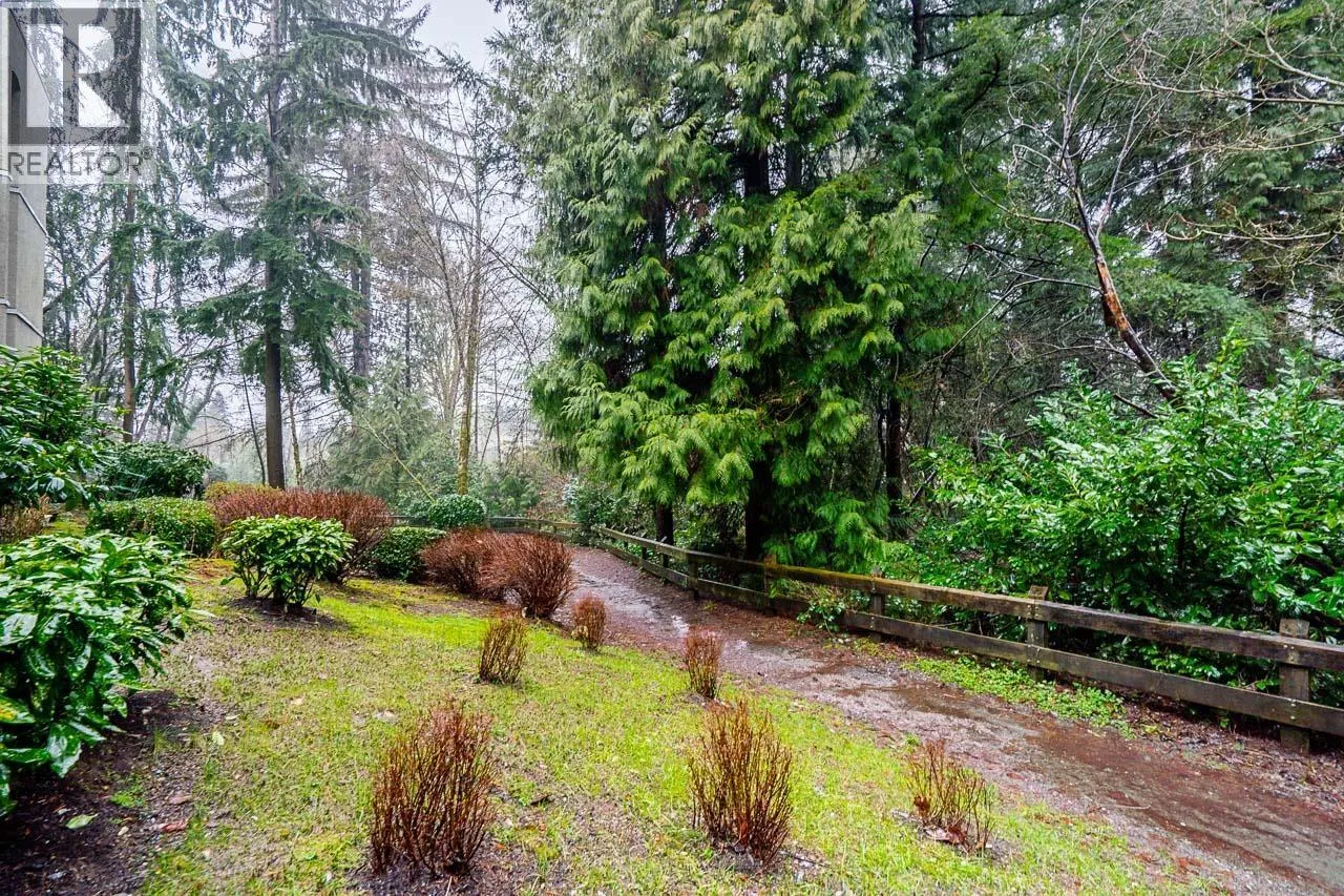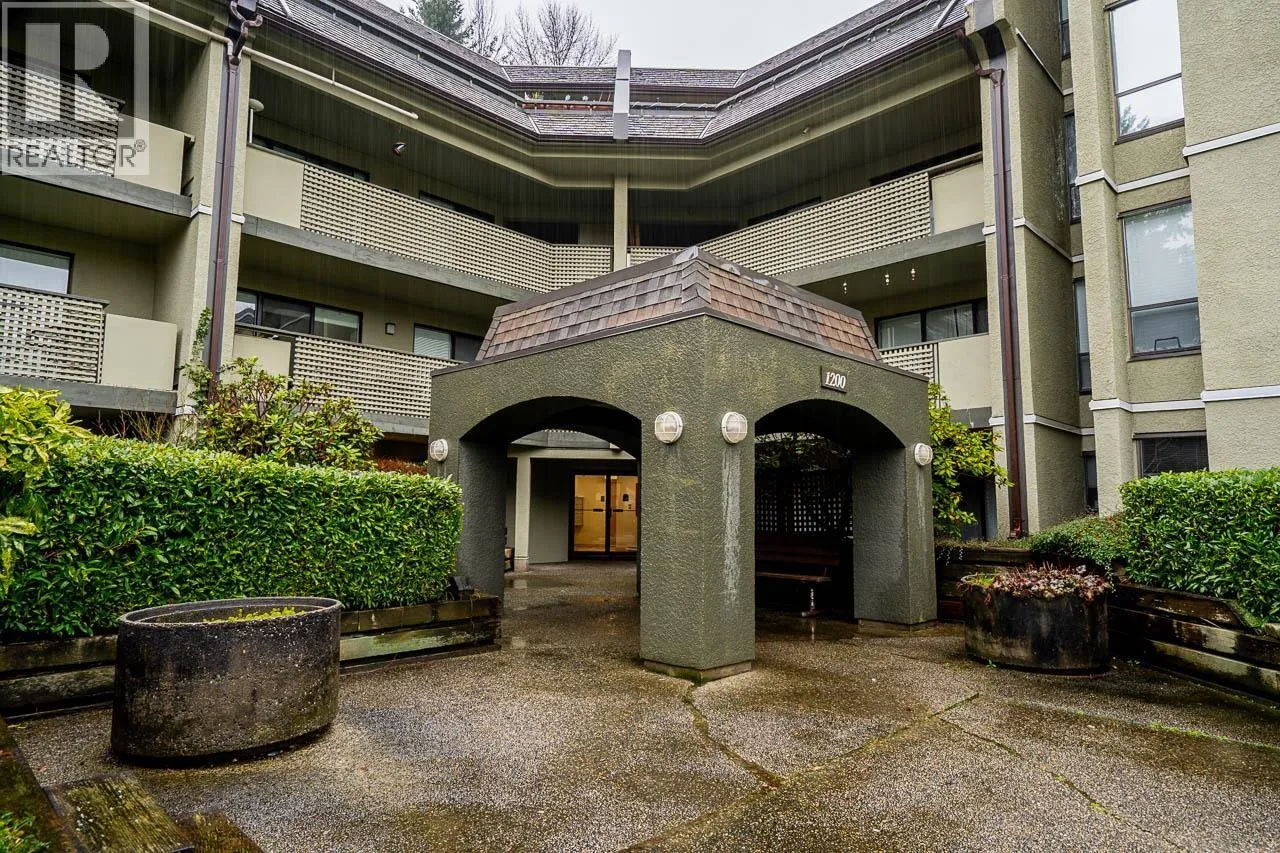 STUNNING GREENBELT OASIS & ADVENTURE HUB! Skip the elevator and embrace the ultimate North Coquitlam lifestyle. This meticulously maintained residence isn't just a home; it´s your trailhead. THE LIFESTYLE: Start your morning with a run or bike ride directly from your back door. Large sliders open to a massive 147 sq. ft. private covered patio,officially designated as Limited Common Property (LCP) for your exclusive use, offering seamless access to local greenbelt trails. It´s a runner and cyclist´s dream: bring your bike right to your suite! THE HOME: Professionally measured at 931 sq. ft. interior (Strata Plan shows 910), providing a spacious open-concept layout. The interior features 2023 appliances, a new hood fan, custom cabinetry, and rich laminate flooring. Includes a huge primary bedroom with "cheater" ensuite access, in-suite storage, and 2 secured parking stalls (#7 & #8), also designated as LCP. THE PEACE OF MIND: Located in a fully rainscreened building, you are steps from transit, shopping (id:27476)