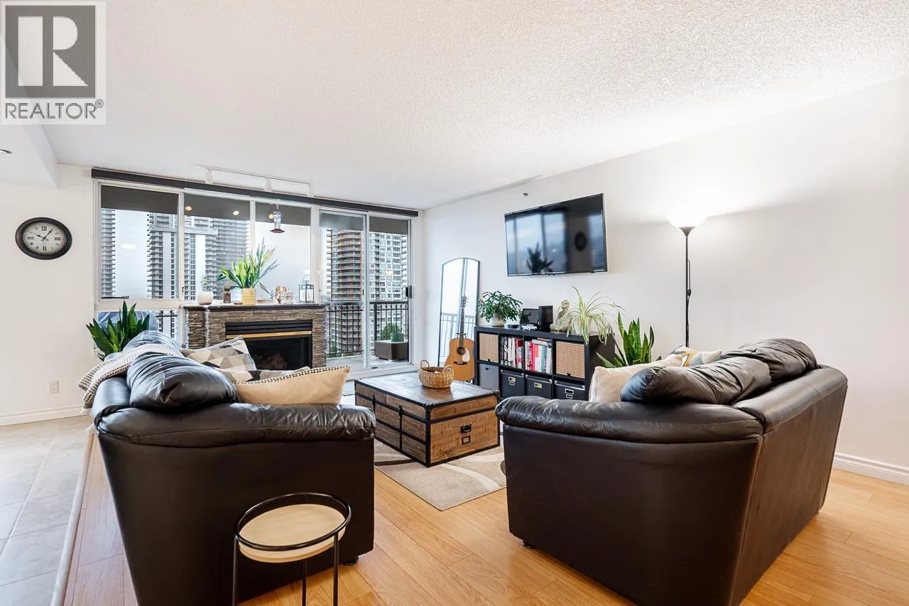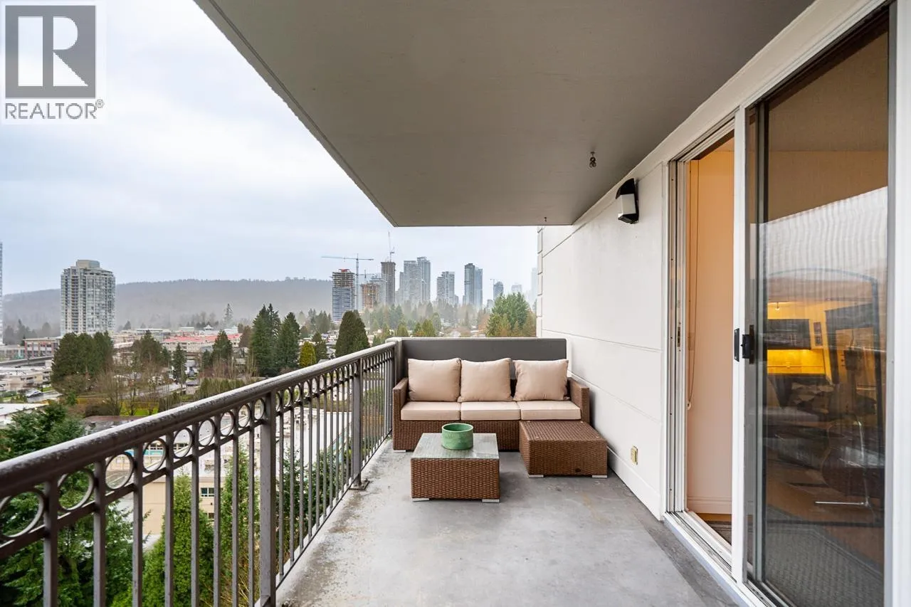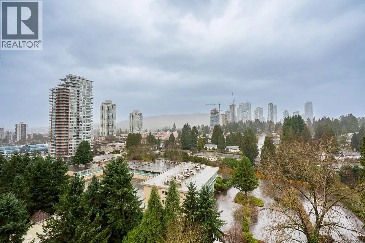 Welcome to Brookmere Towers. This bright northwest corner 2 bedroom, 2 bathroom home offers panoramic views, excellent natural light, and a spacious, well-laid-out floor plan. The kitchen has been opened to the living area, creating a more functional and inviting space with updated cabinetry, counters, flooring and appliances. The living room features a cozy gas fireplace, while both bedrooms are generously sized and thoughtfully separated for privacy. The primary ensuite has been completely renovated with custom finishes, in-floor heating and a spa-like feel. Enjoy sunsets from the large covered balcony. Well-managed concrete building with indoor pool, hot tub, sauna, gym and lounge. Steps to Lougheed Mall, SkyTrain, parks, shops and restaurants. One parking & one Storage locker included! (id:27476)
